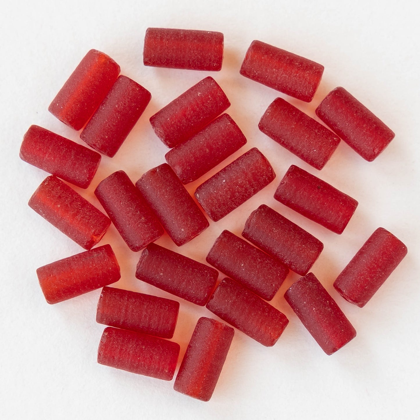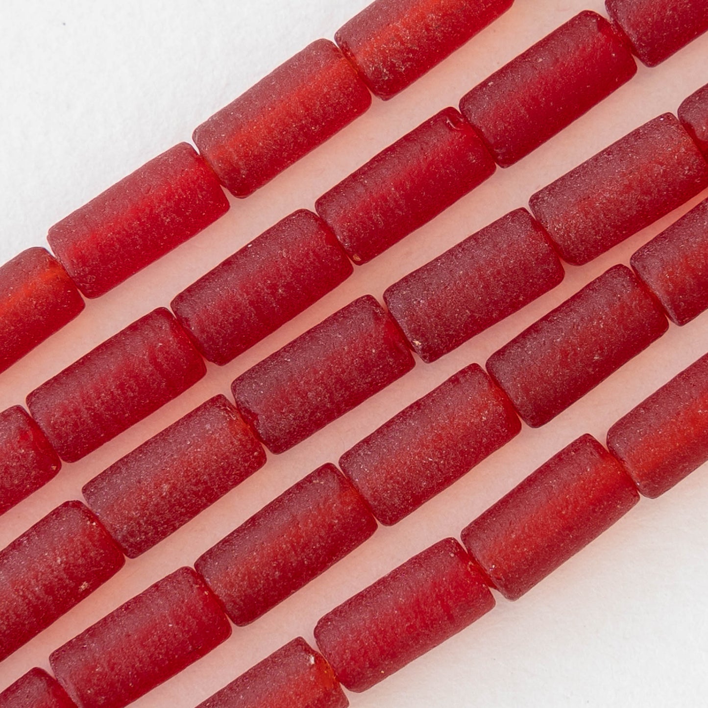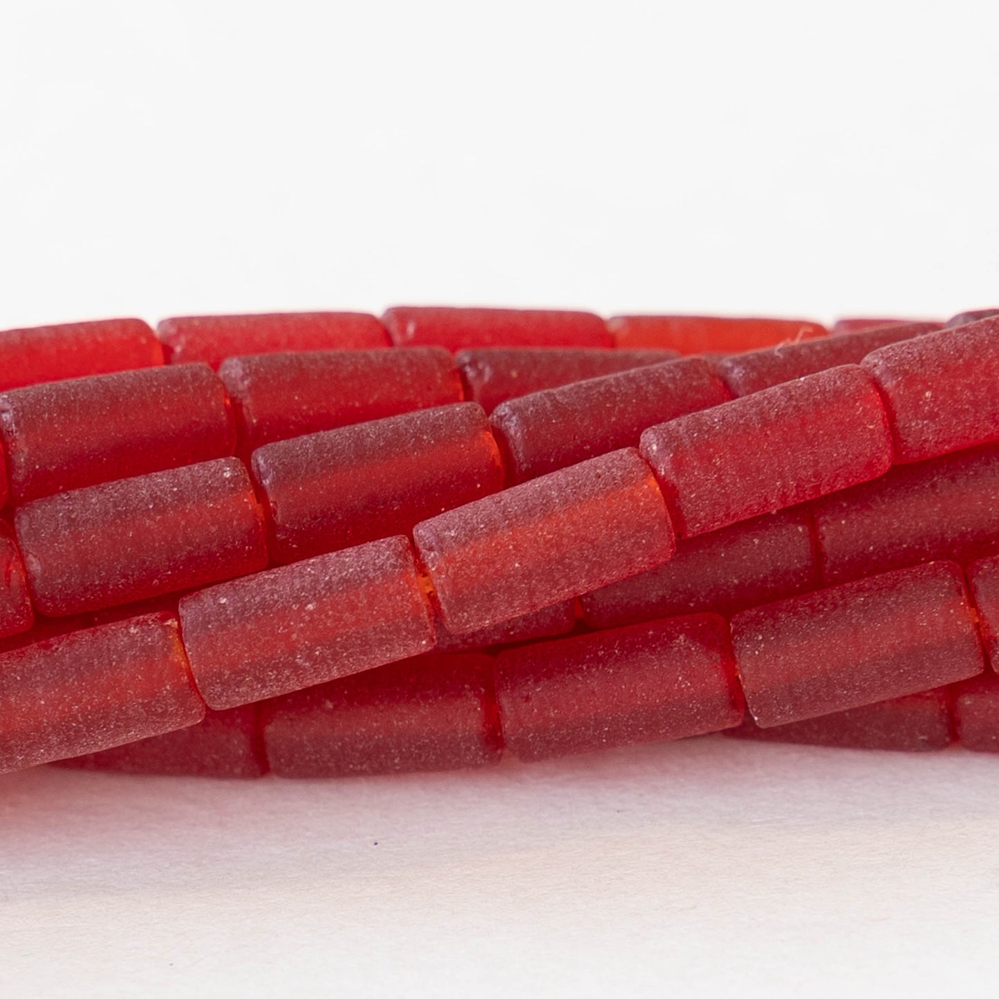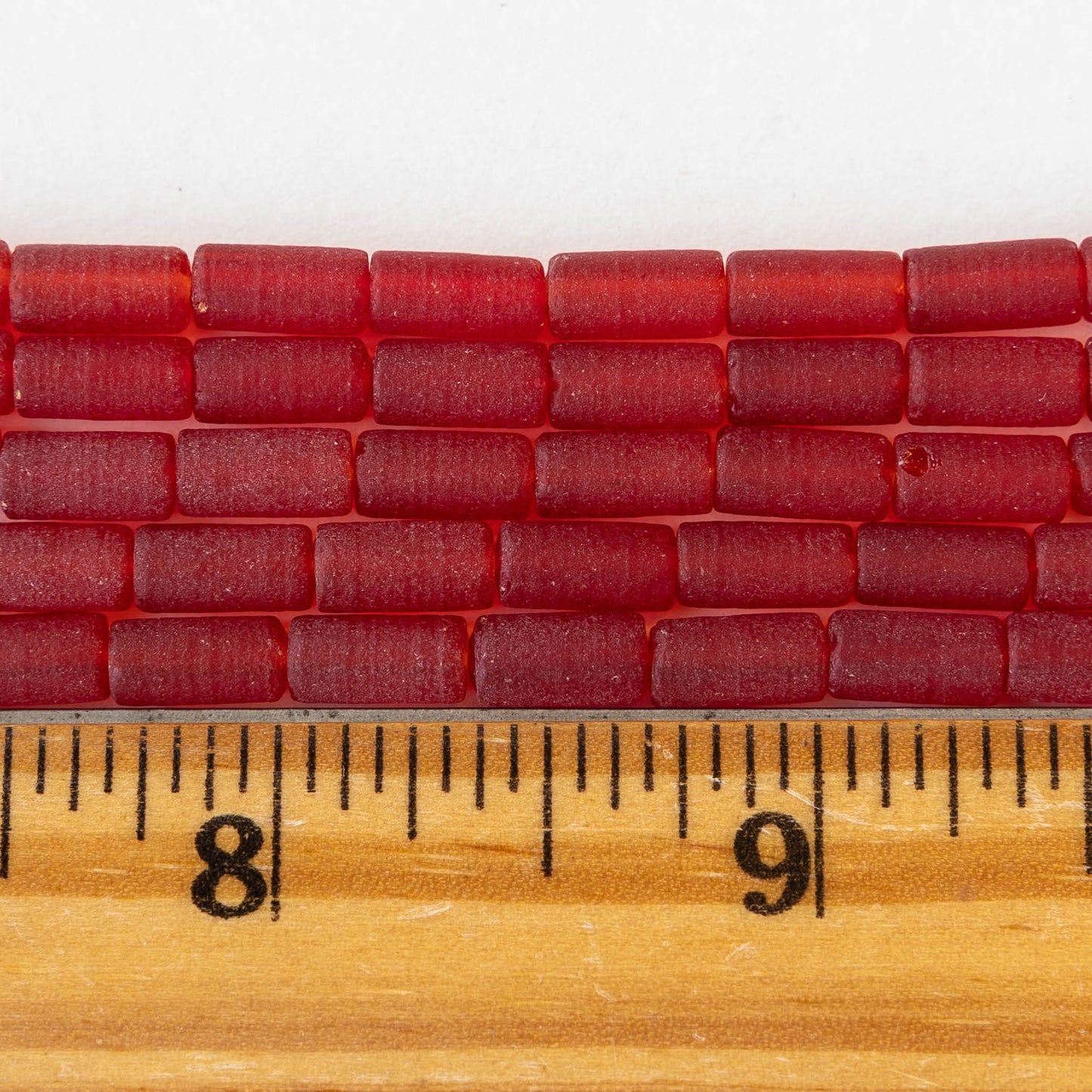 4x9mm Frosted Glass Tube Beads - Red - 48 Beads