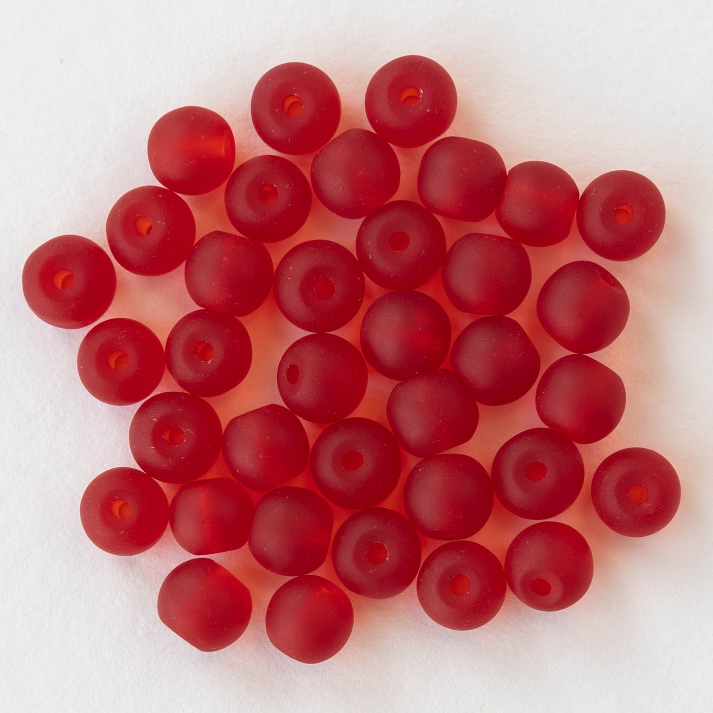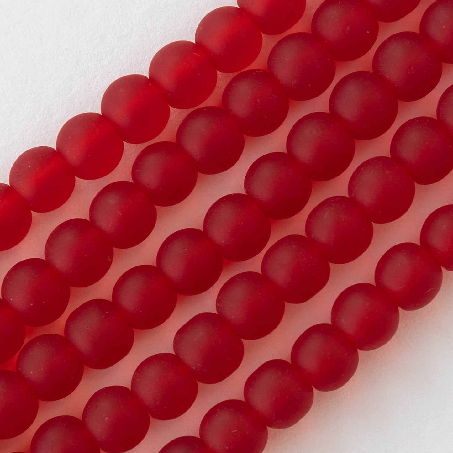 6mm Frosted Glass Round Beads - Red - 16 Inches