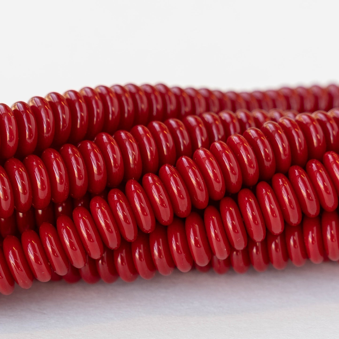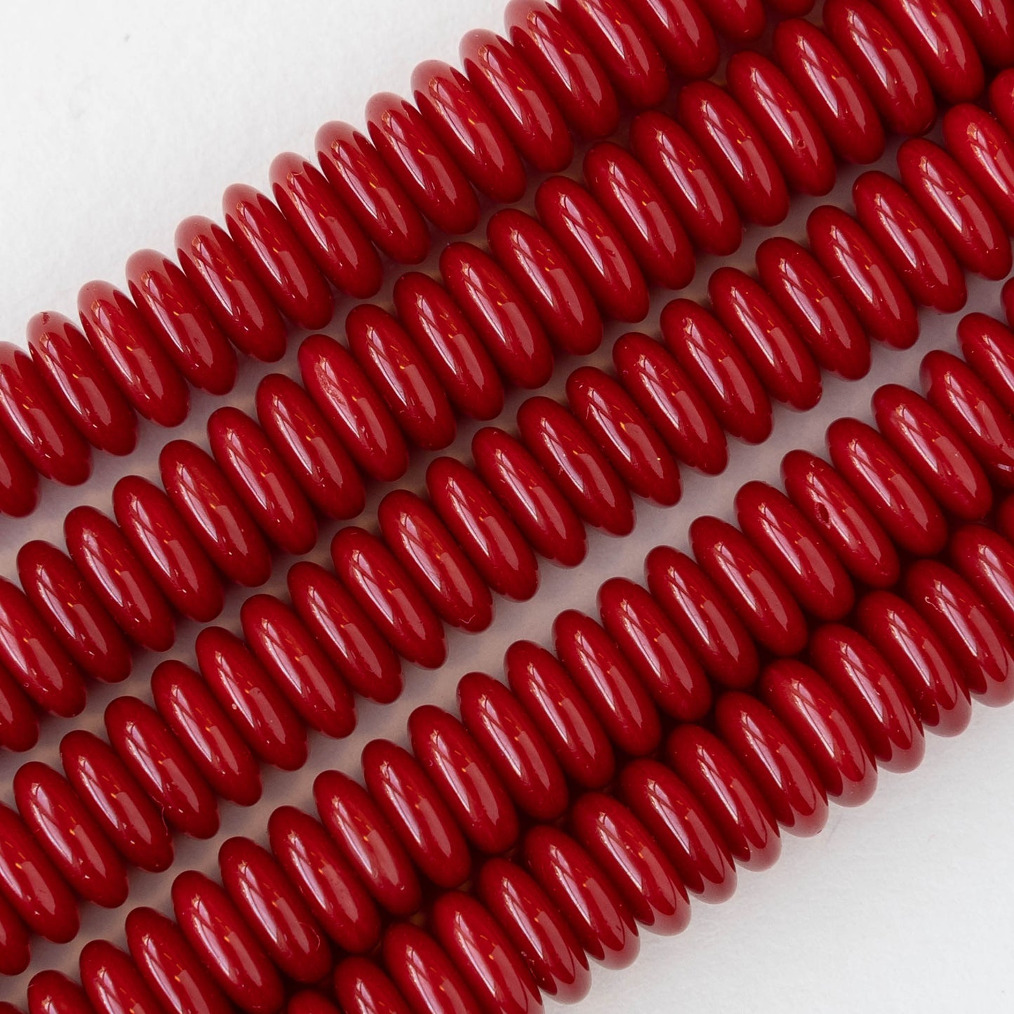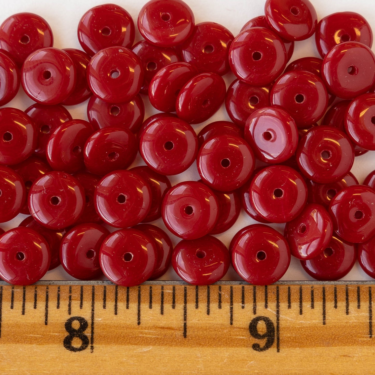 8mm Glass Rondelle Beads - Opaque Dark Red - 30 Beads