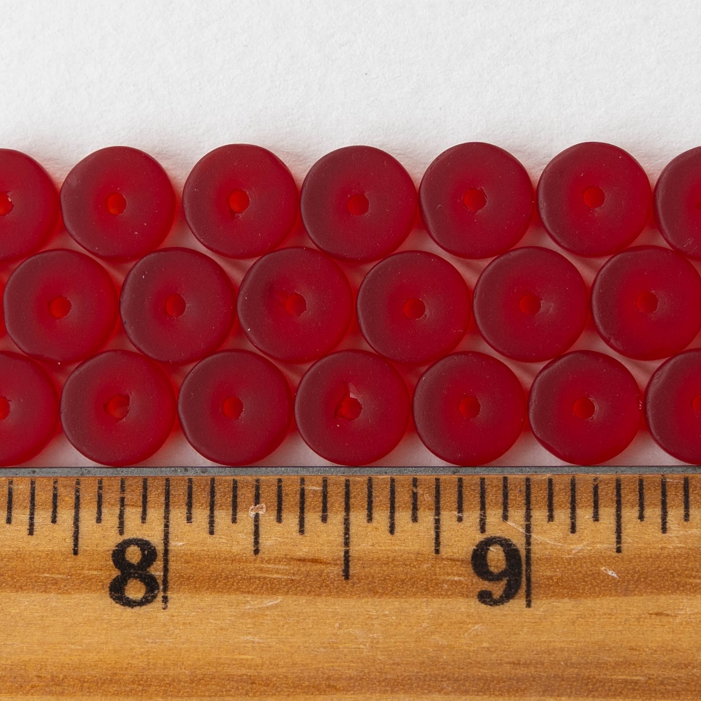 9mm Frosted Glass Heishi Beads - Red - Choose Amount