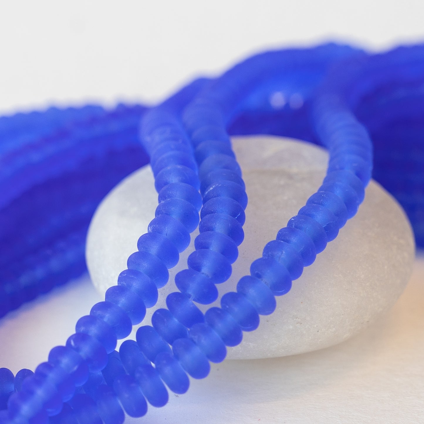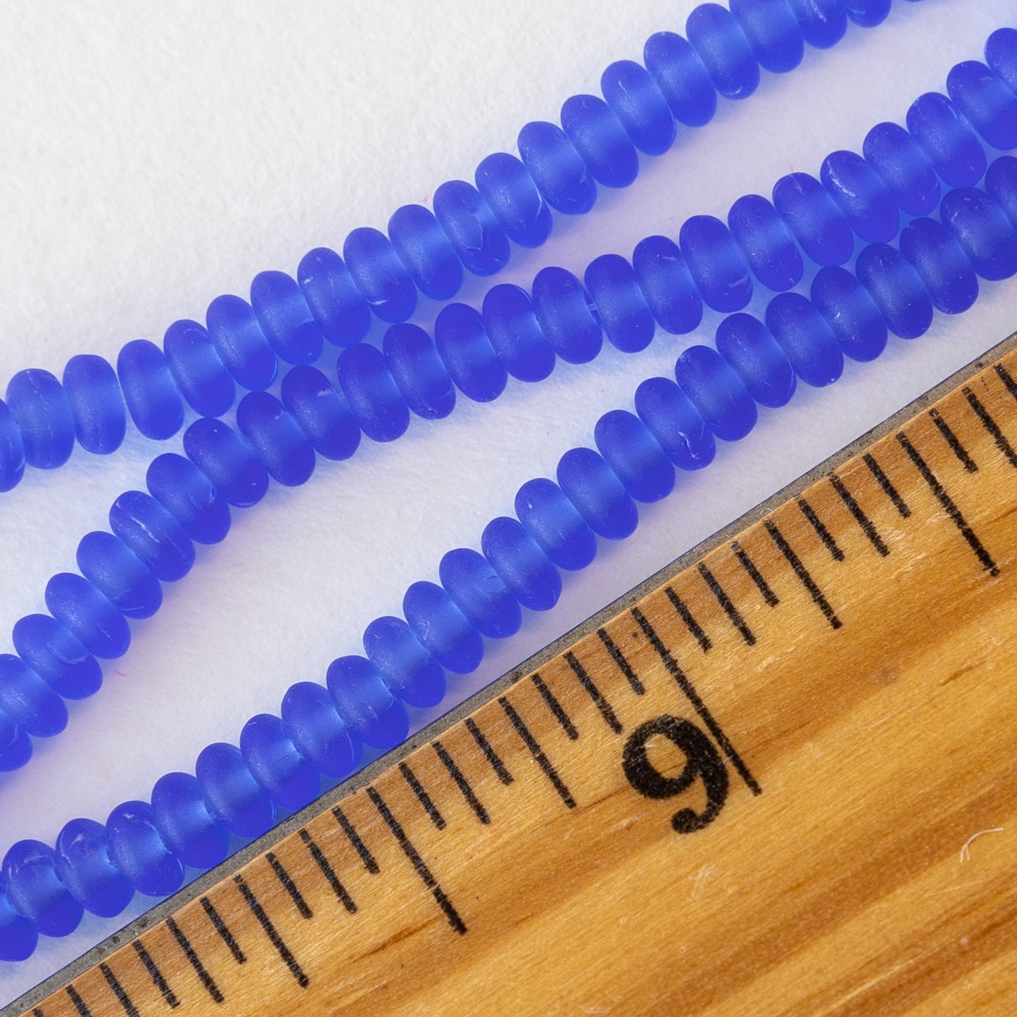 4mm Rondelle Beads - Sapphire Blue Matte - 100 Beads