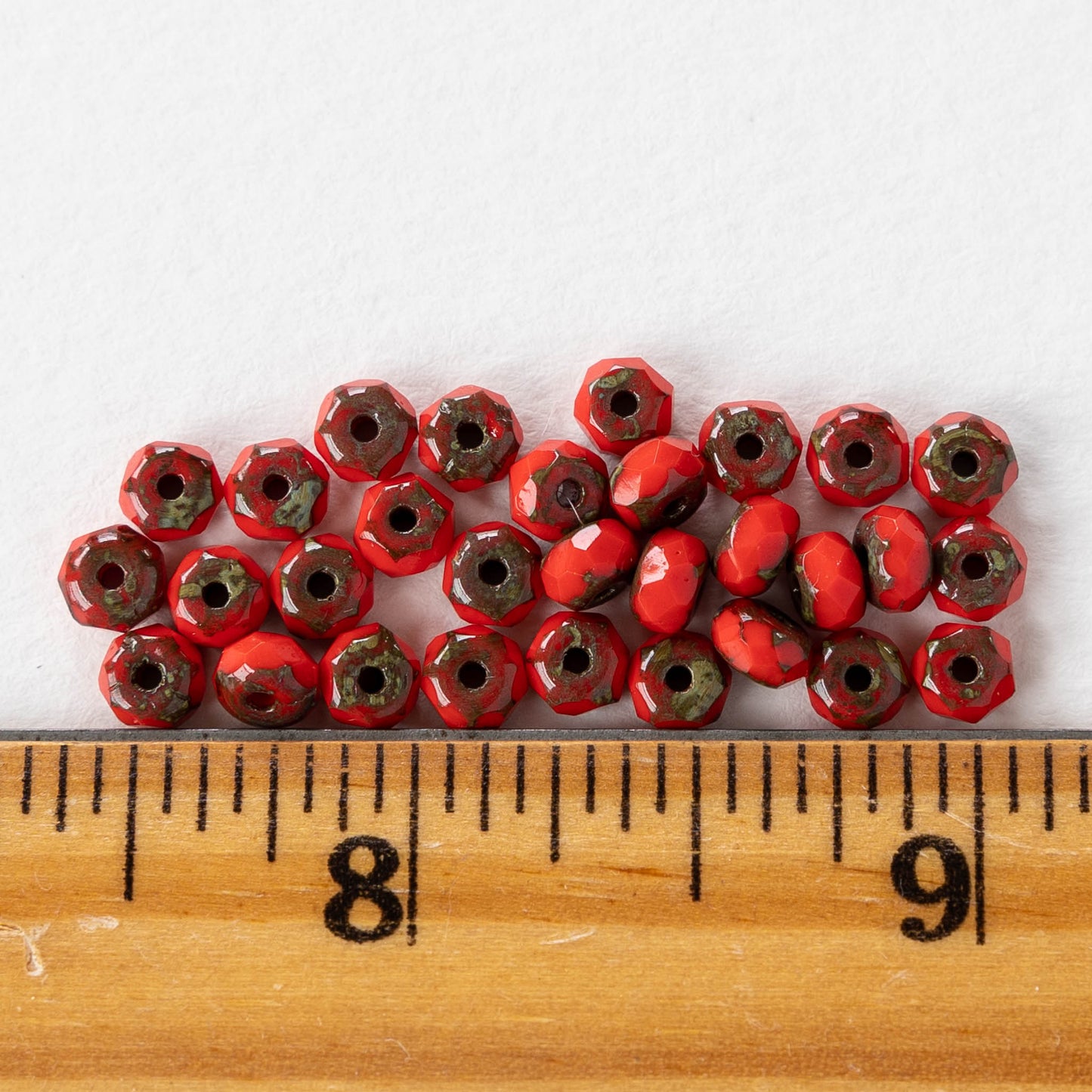 3x5mm Rondelles - Red with Picasso - 30 Beads