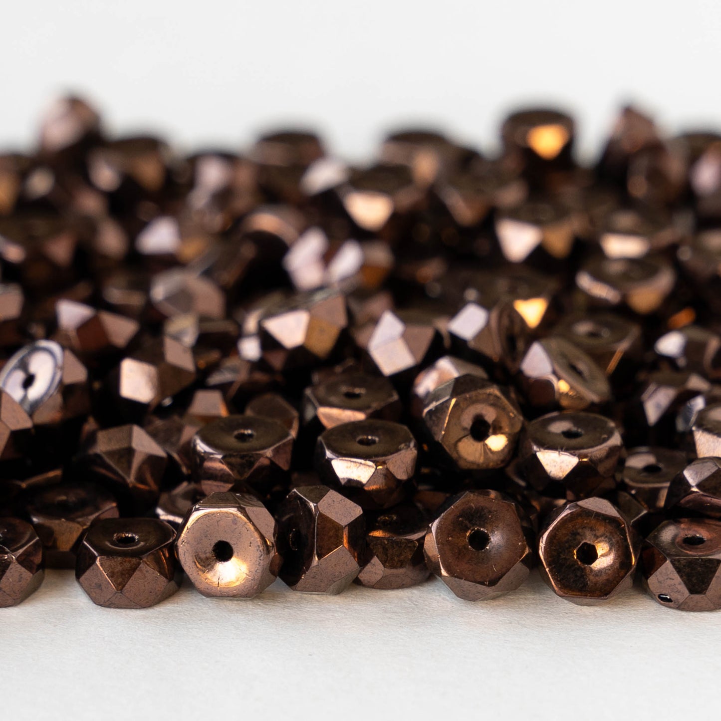 3x6mm Firepolished Glass Heishi Beads - Dark Bronze - 25 Beads