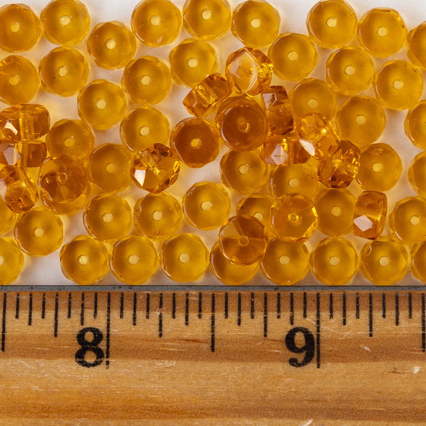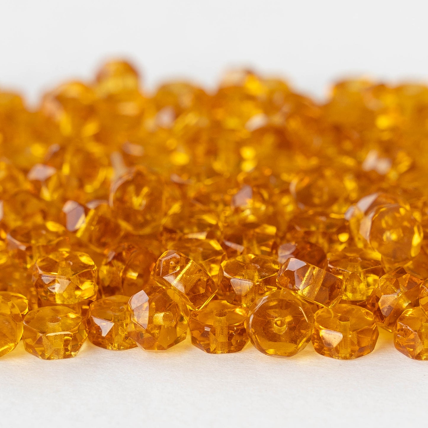 3x6mm Firepolished Glass Heishi Beads - Transparent Light Amber - 50 Beads