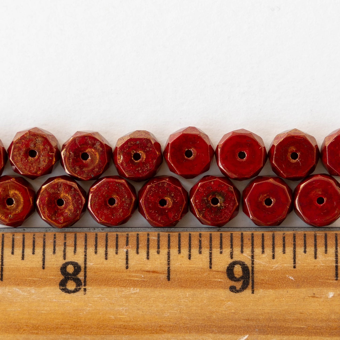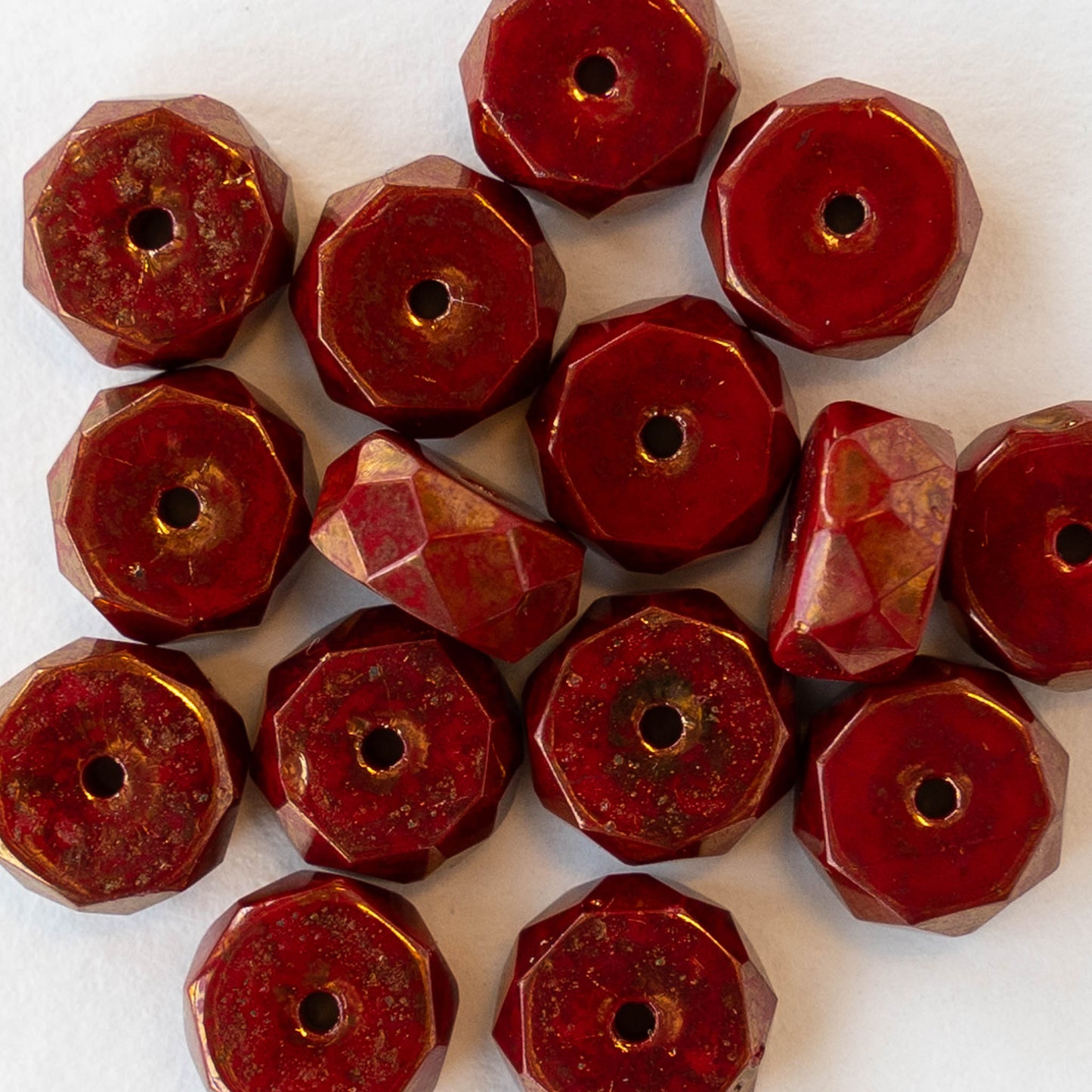 4x8mm Firepolished Glass Heishi Beads - Opaque Red with Gold Finish - 10 Beads