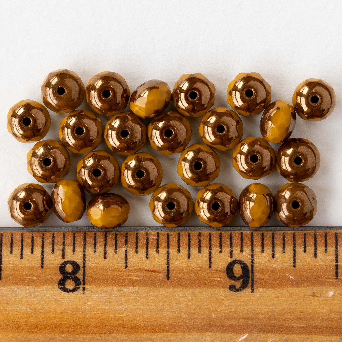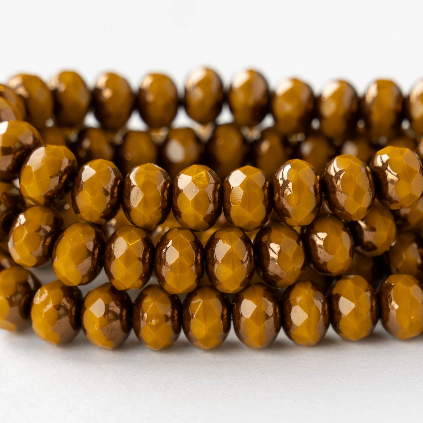 5x7mm Faceted Rondelle Beads - Opaque Ochre with Bronze - 25 beads