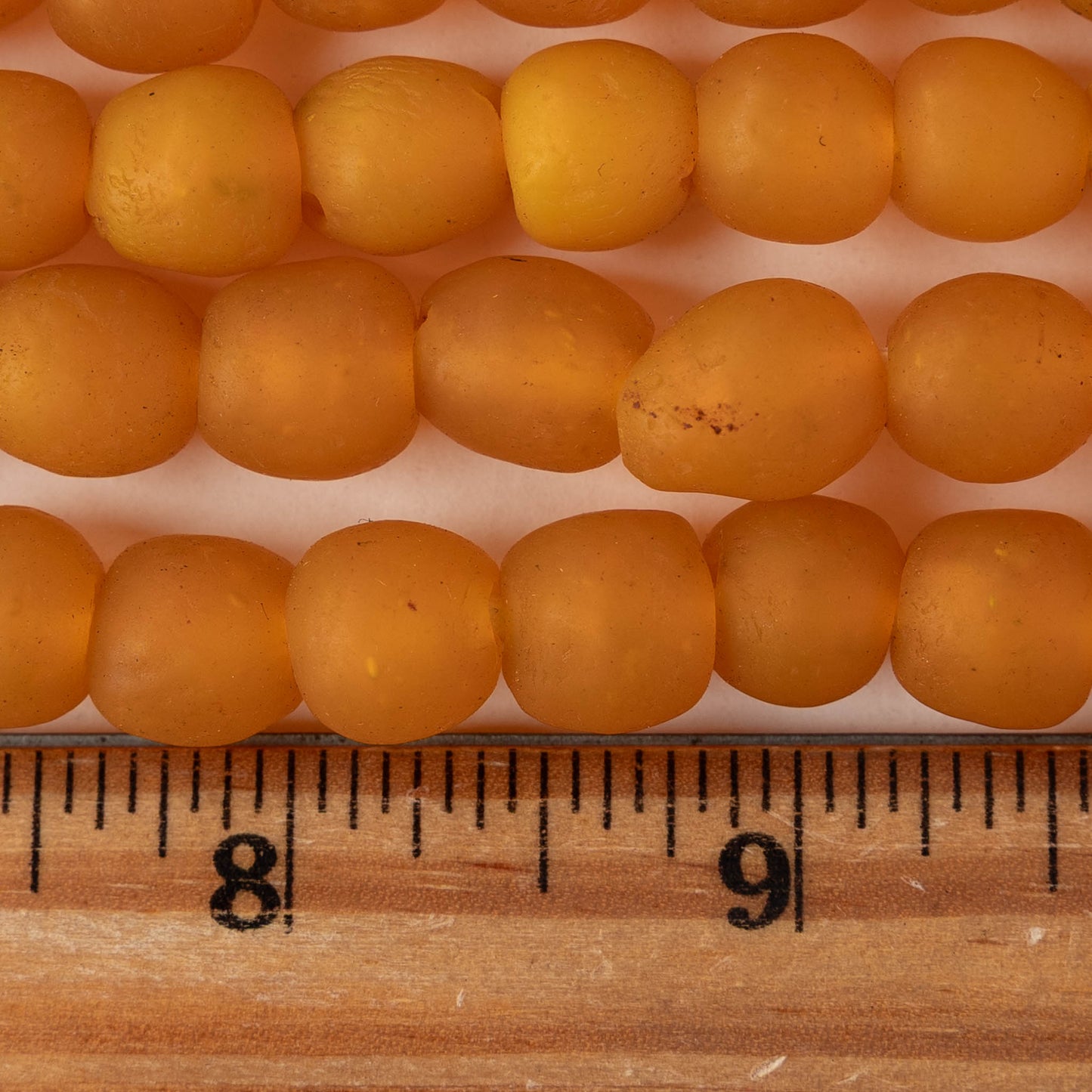 10mm Round Ghana Glass Beads - Matte Light Orange - Whole or Half Strand