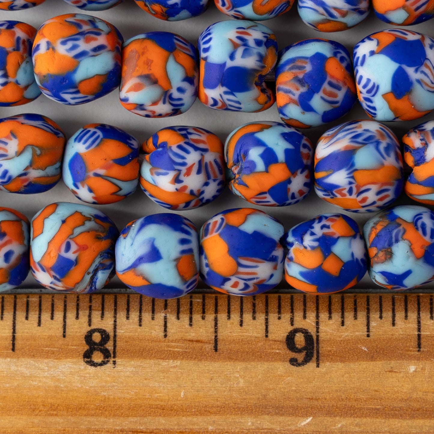 11mm Round Krobo Beads - Blue and Orange - Half Strand or Whole Strand