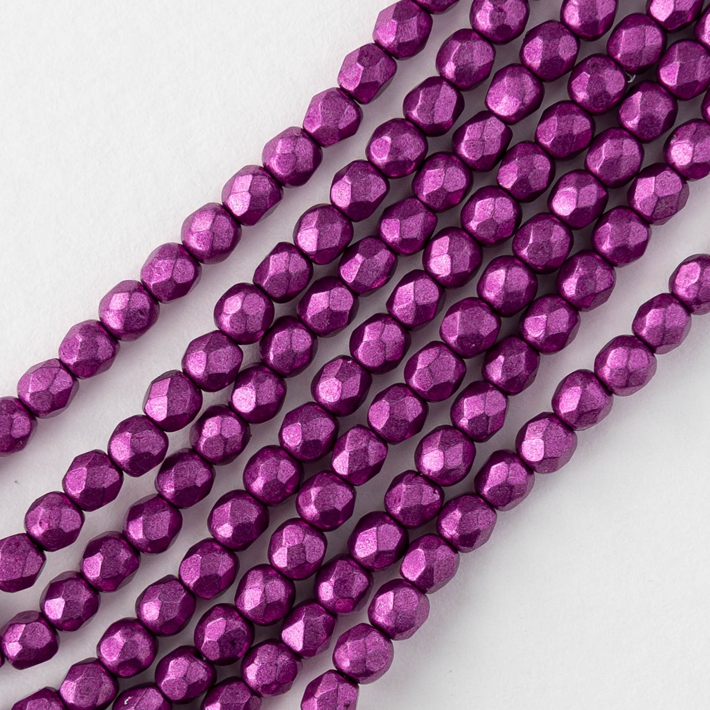 3mm Firepolished Round Beads - Suede Gold Fuchsia Red - 50 bead strand