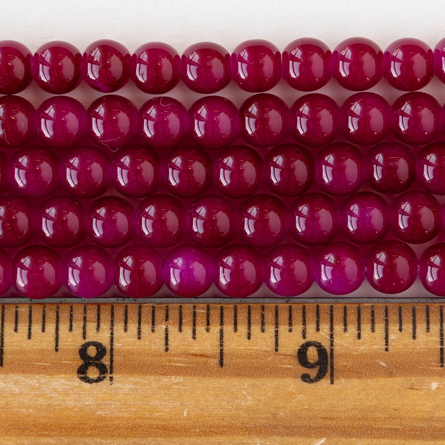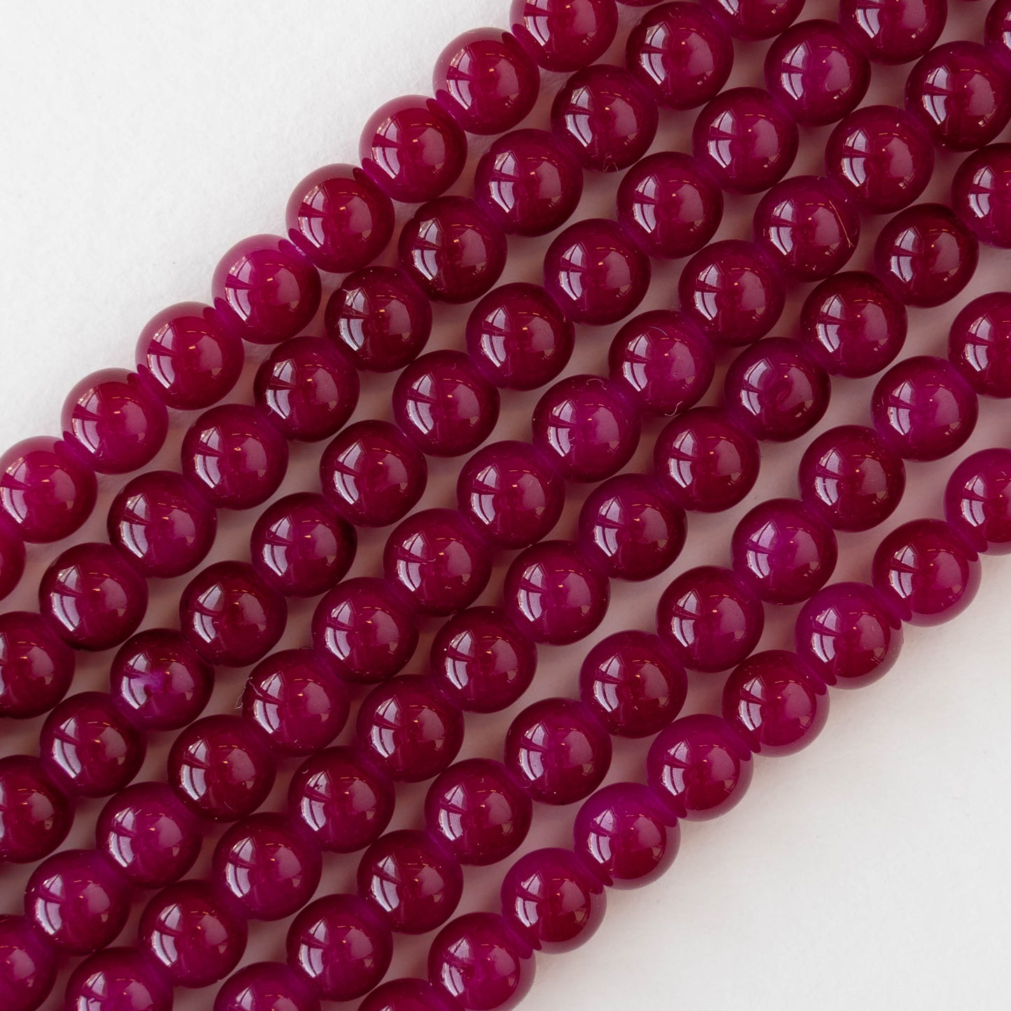 6mm Dyed Jade Round Beads - Fuchsia - 16 inch strand - 67 beads