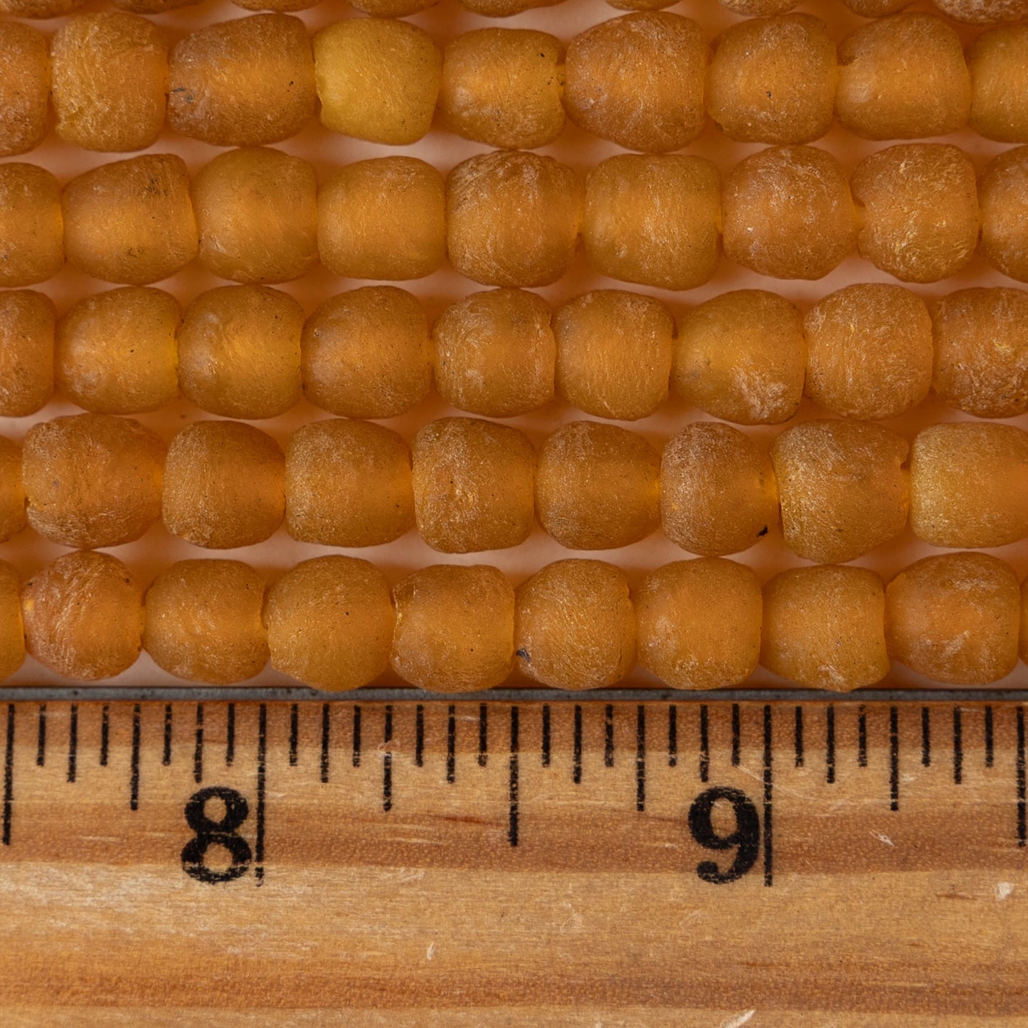 7mm Round Ghana Glass Beads - Matte Light Orange - Whole or Half Strand