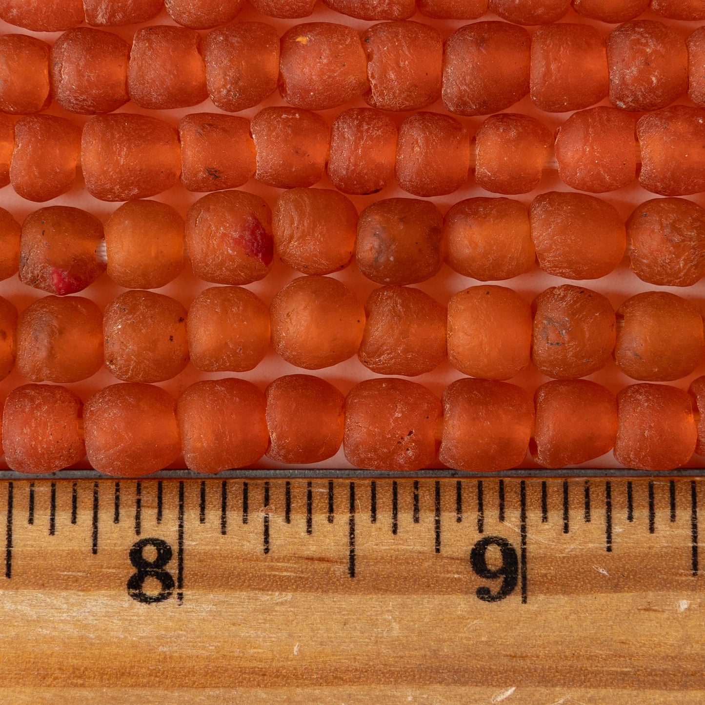 7mm Round Ghana Glass Beads - Matte Orange - Whole or Half Strand