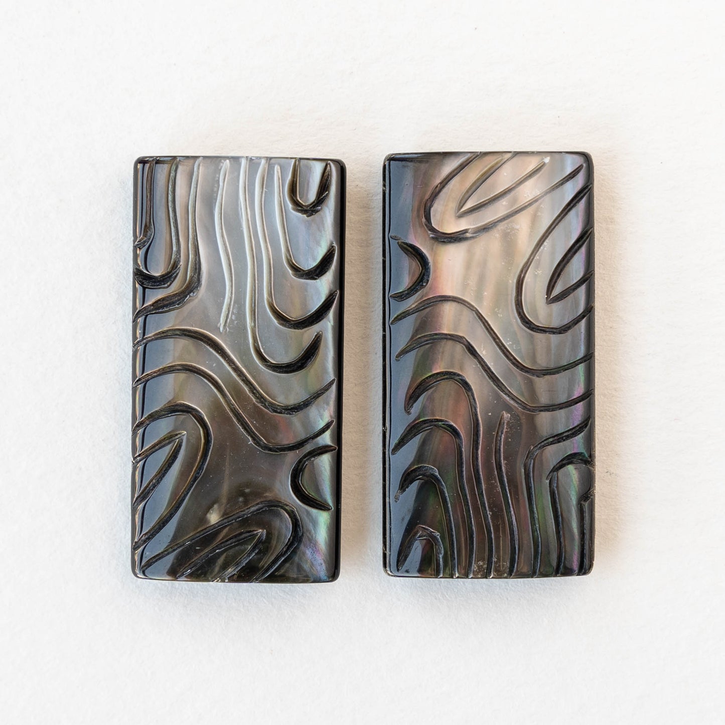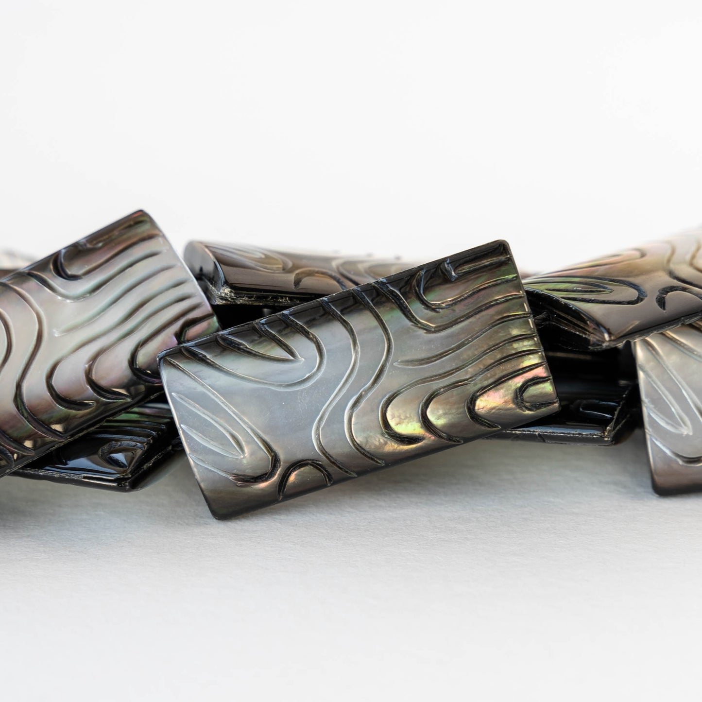 Exotic and Exquisite!!! Black Lip Carved Rectangle beads. Oh my. These are gorgeous. They have such depth. They change with the direction of light from black to white.