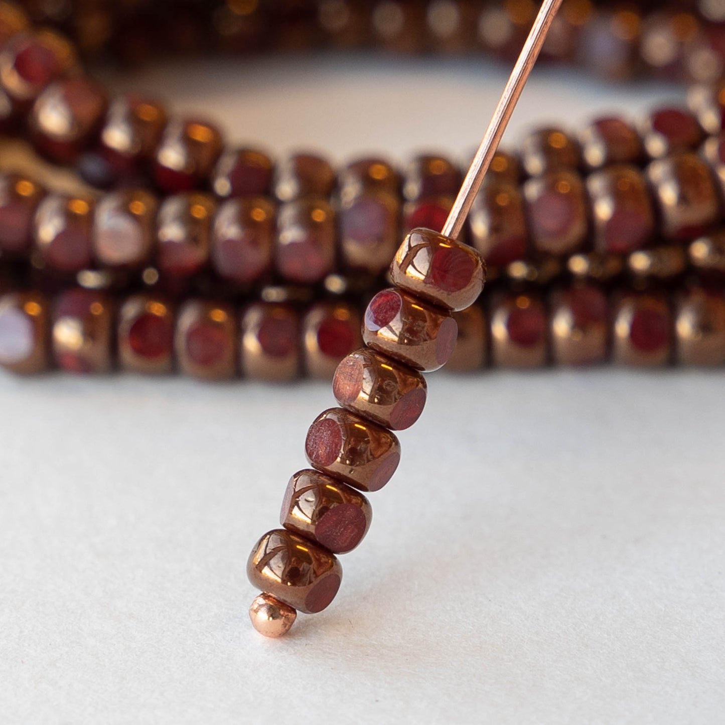 Here you will find a collection of glass seed beads from around the world in a stunning array of colors, sizes, and finishes, ensuring you'll find the perfect beads to bring your designs to life. These beads differ from traditional seed beads because of their unique shapes, finishes, and patterns. This collection includes Czech tri-cut seed beads, bugles (tube-shaped), African sand beads, and fun seed bead mixes. Visit our Miyuki Cube Collection for small cube beads that pair well with seeds. Check back often for new additions! Enjoy!
