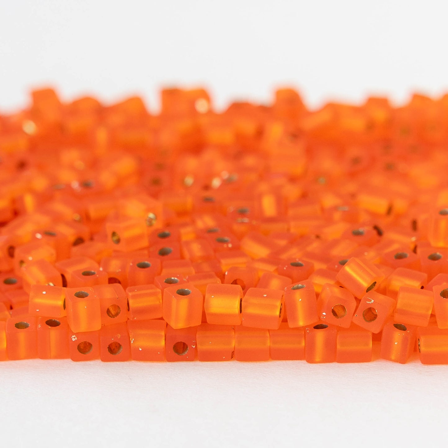 3mm Miyuki Cube Beads - Silver Lined Matte Orange - 20 grams