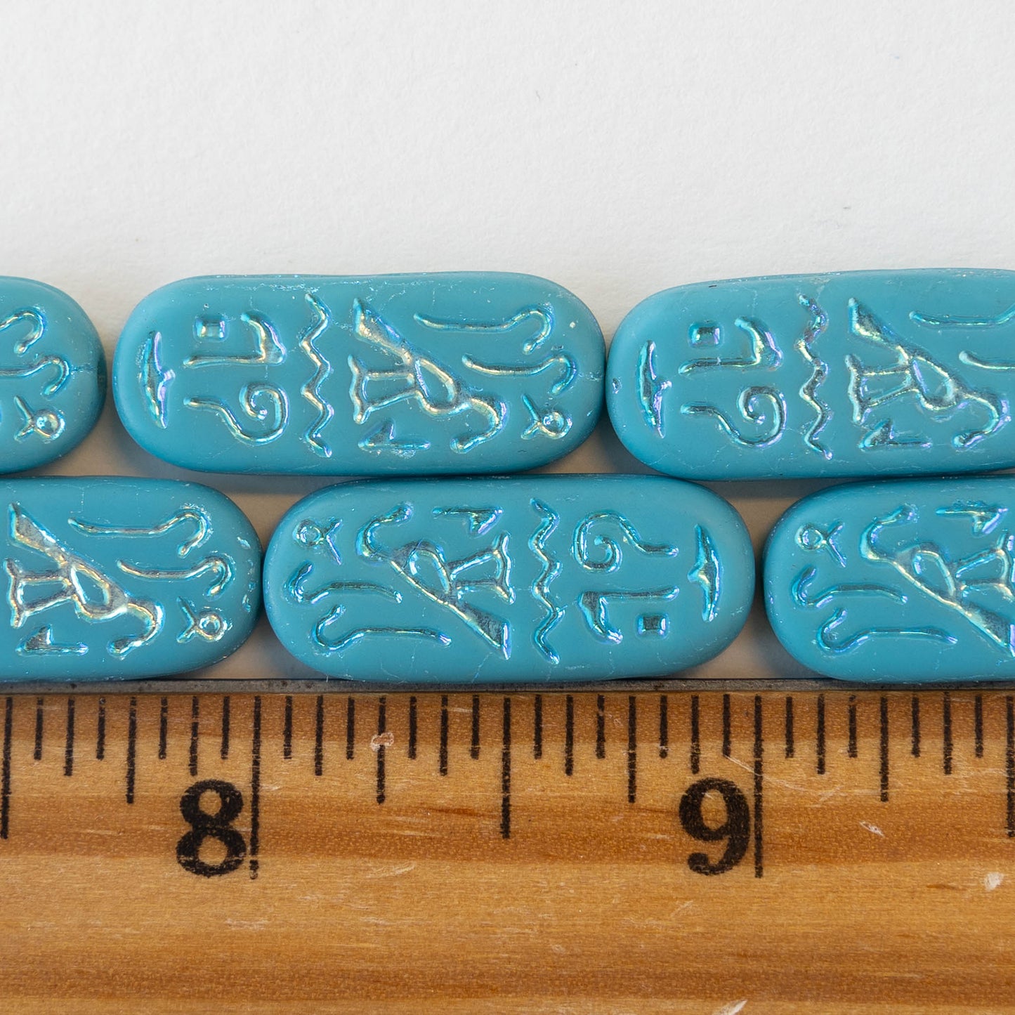 10x25mm Cartouche Beads - Blue Turquoise Opaque Matte with Iridescent Finish - 4