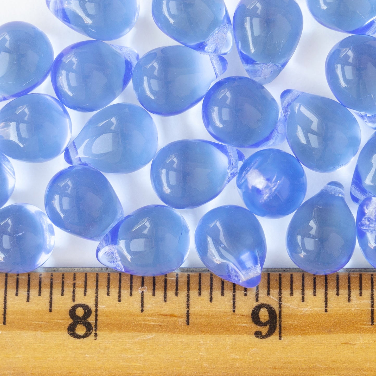 10x14mm Glass Teardrop Beads - Light Sapphire Blue - Choose Amount