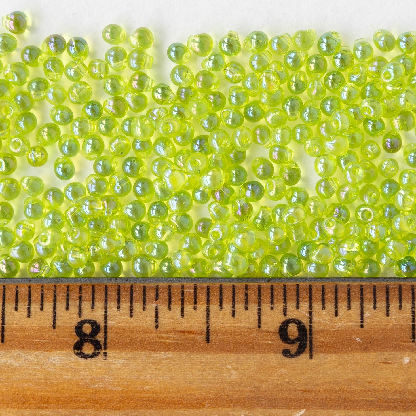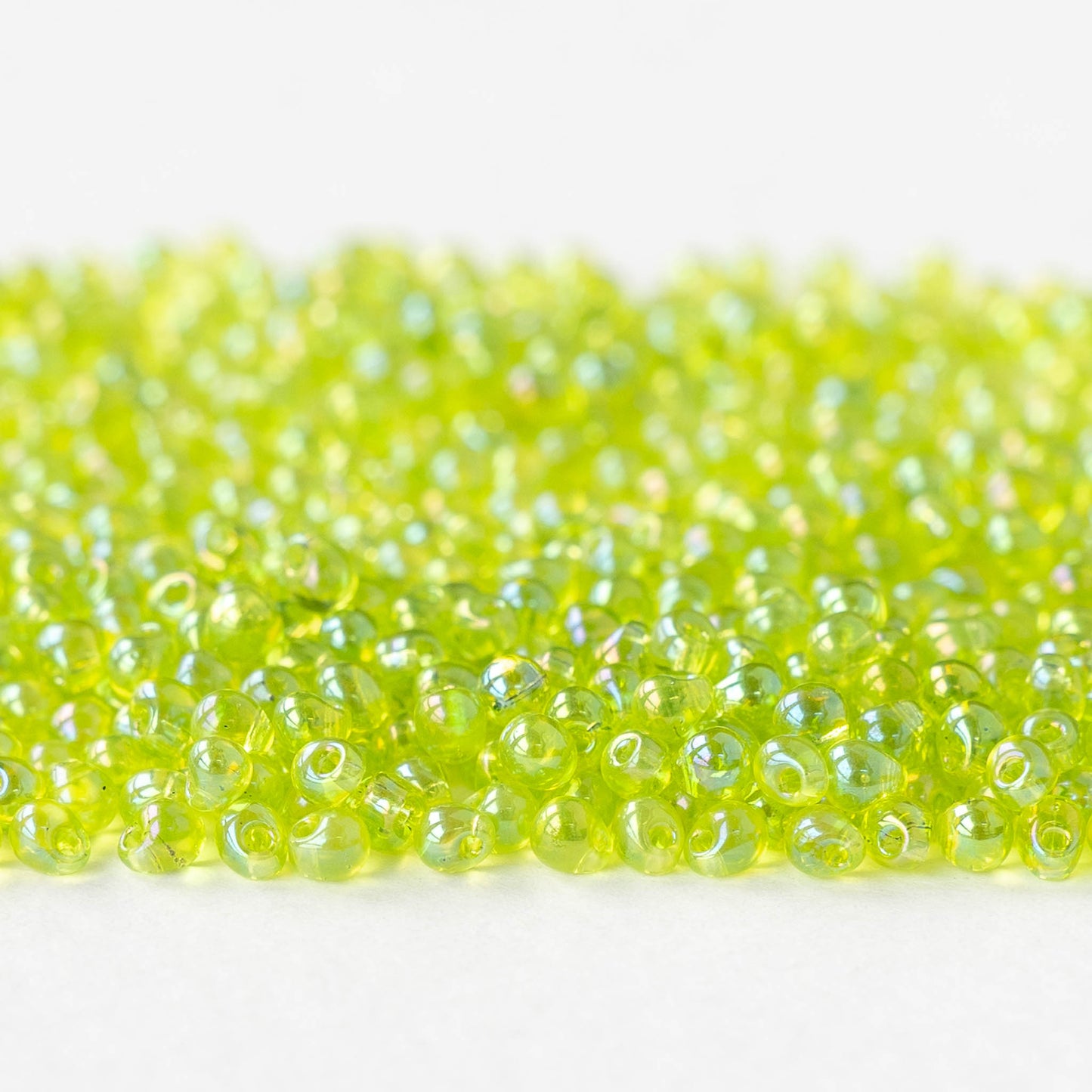2.8mm Glass Magatama Teardrop Beads - Lime AB - 10 or 20 grams