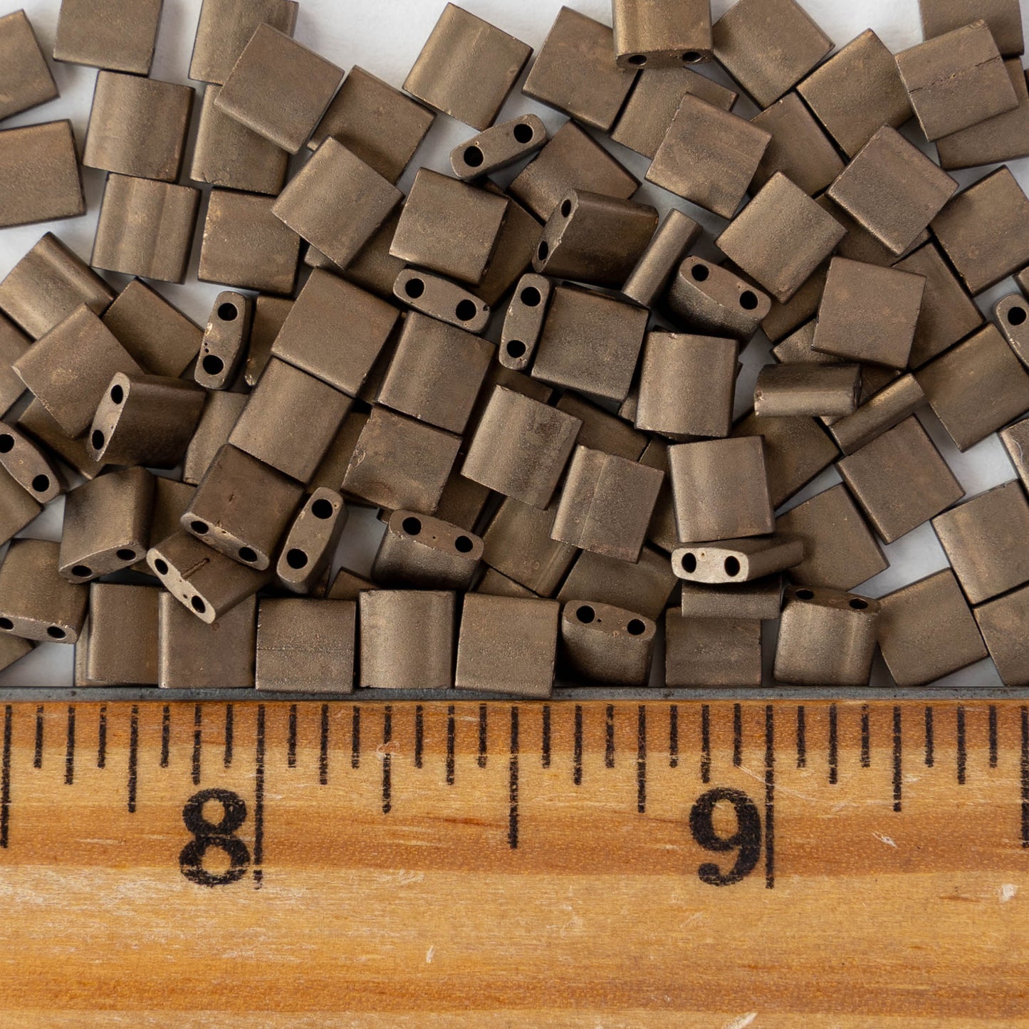 Two-hole square tile shaped beads from Japan.