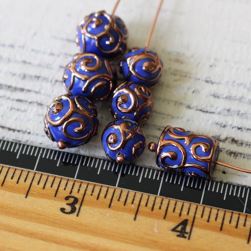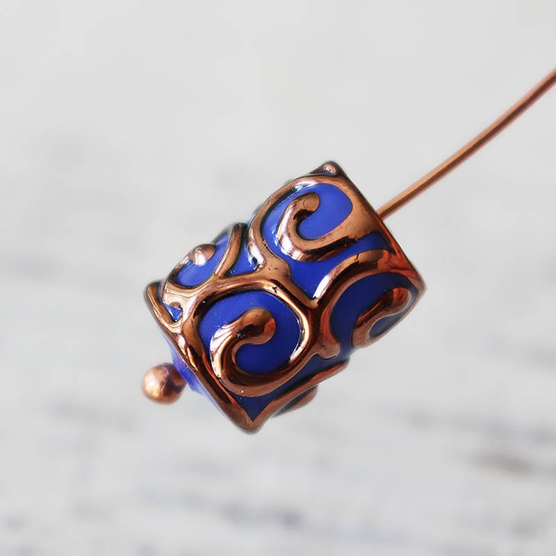 Opaque Blue with Copper Florentine Design