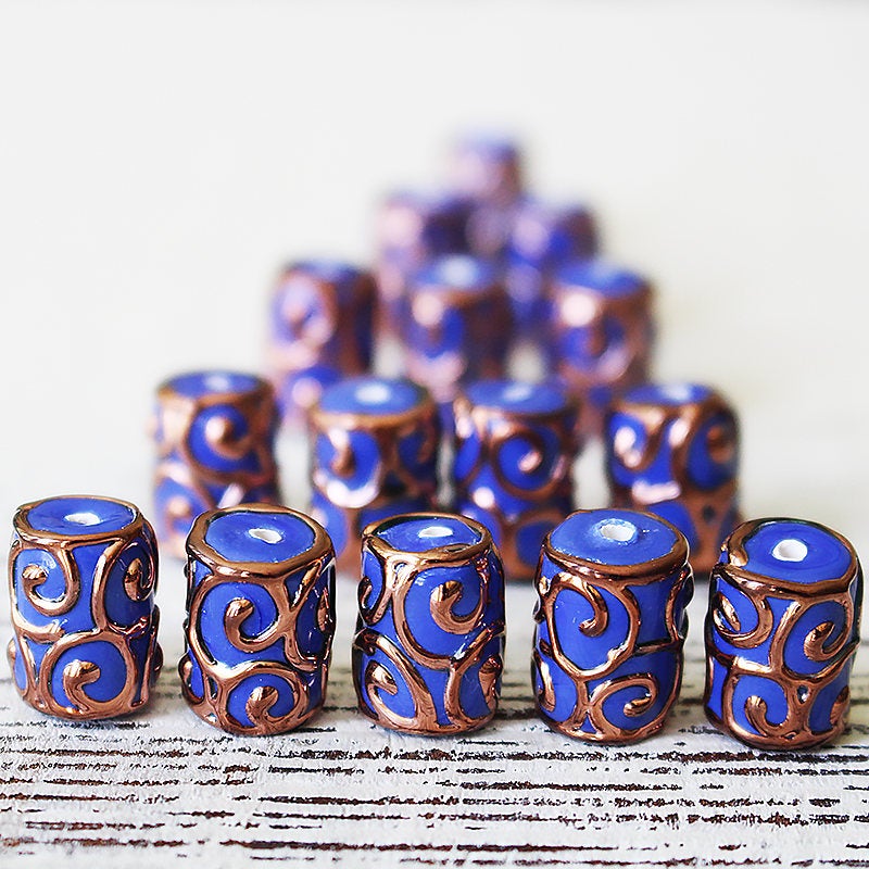 Lampwork Tube Beads - 10x14mm - Opaque Blue - 2, 4 or 8