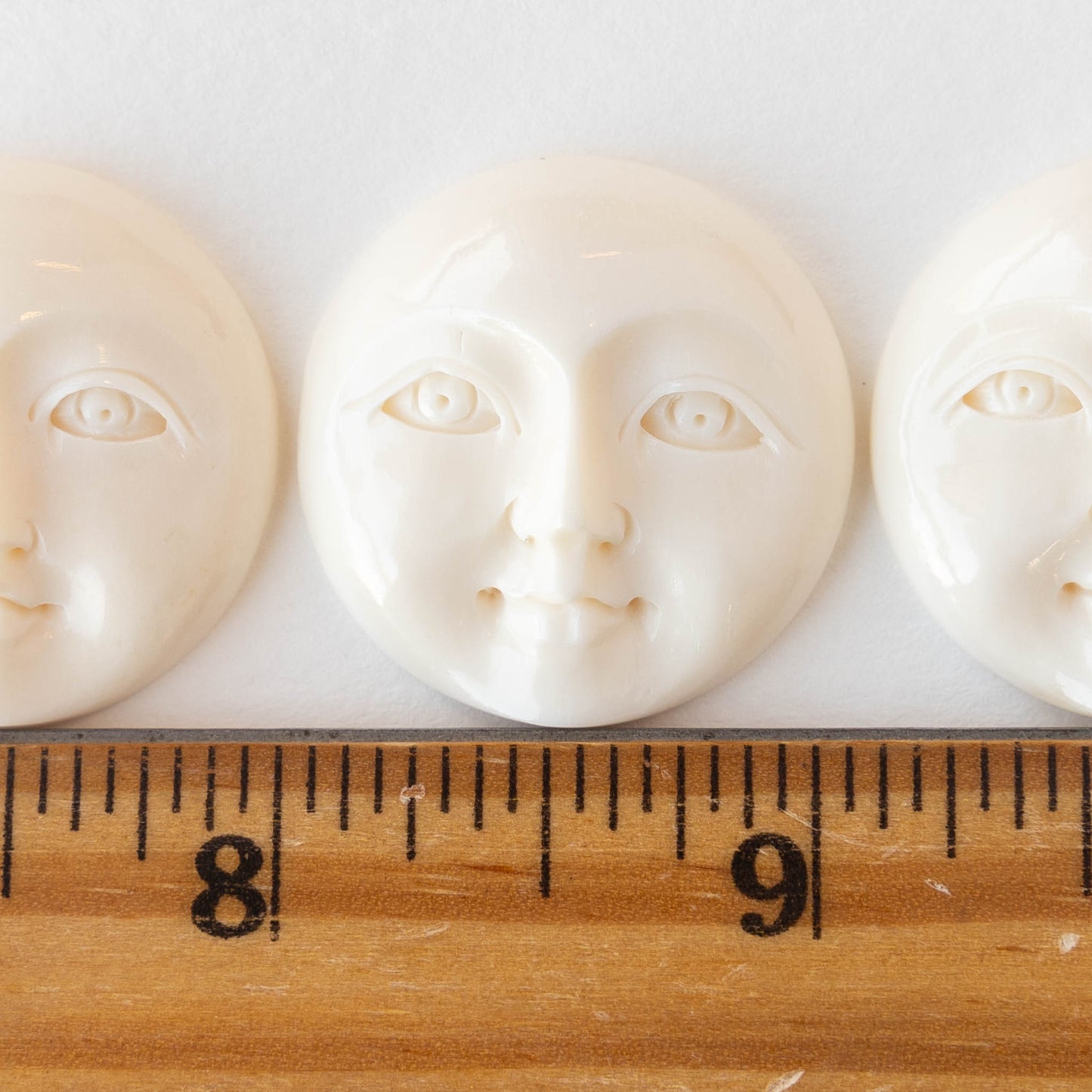 These moon face pendants are so sweet. The face is as peaceful as a buddha's smile. These are made from water buffalo bone. As you can see from the images the drill hole is hidden on the back of the moon face.