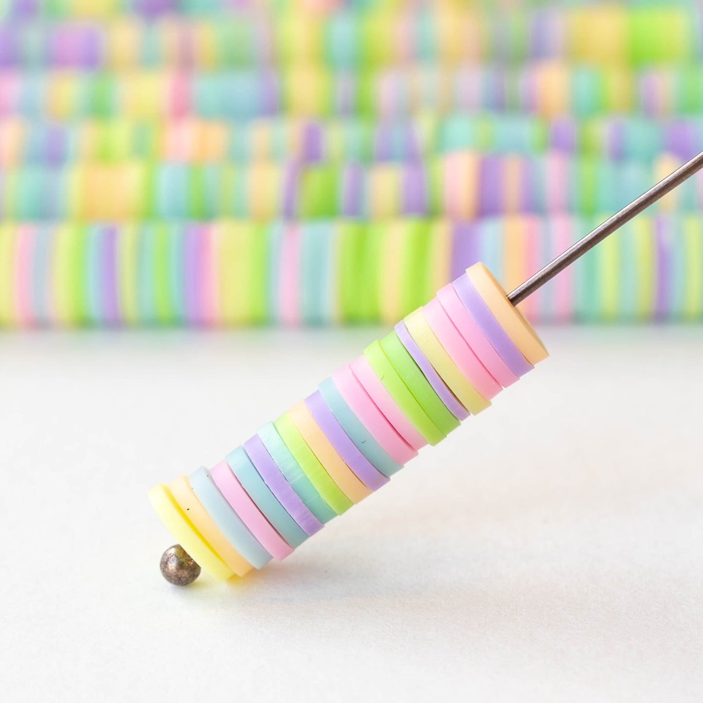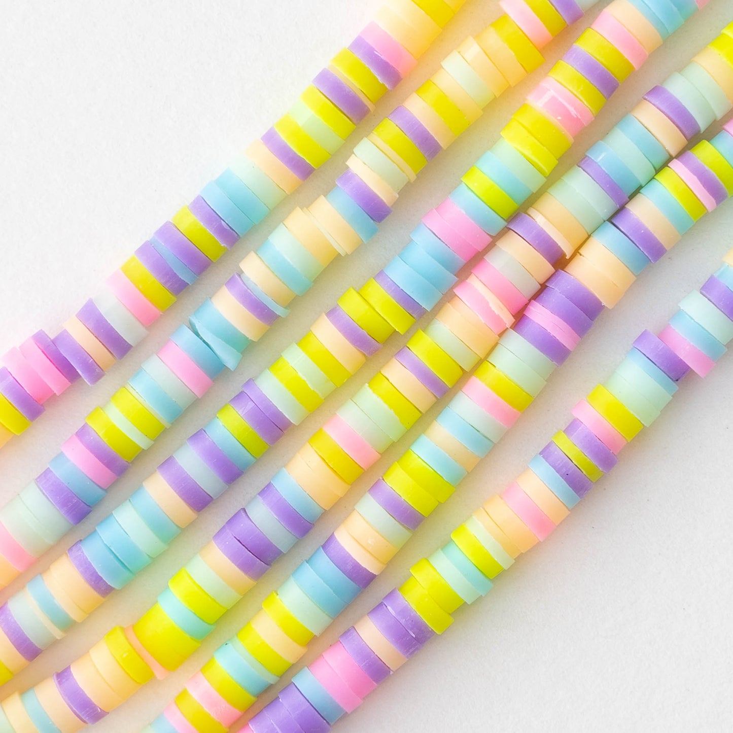 4mm or 8mm Polymer Clay Wheel Beads - Pastel Mix - 16 inches