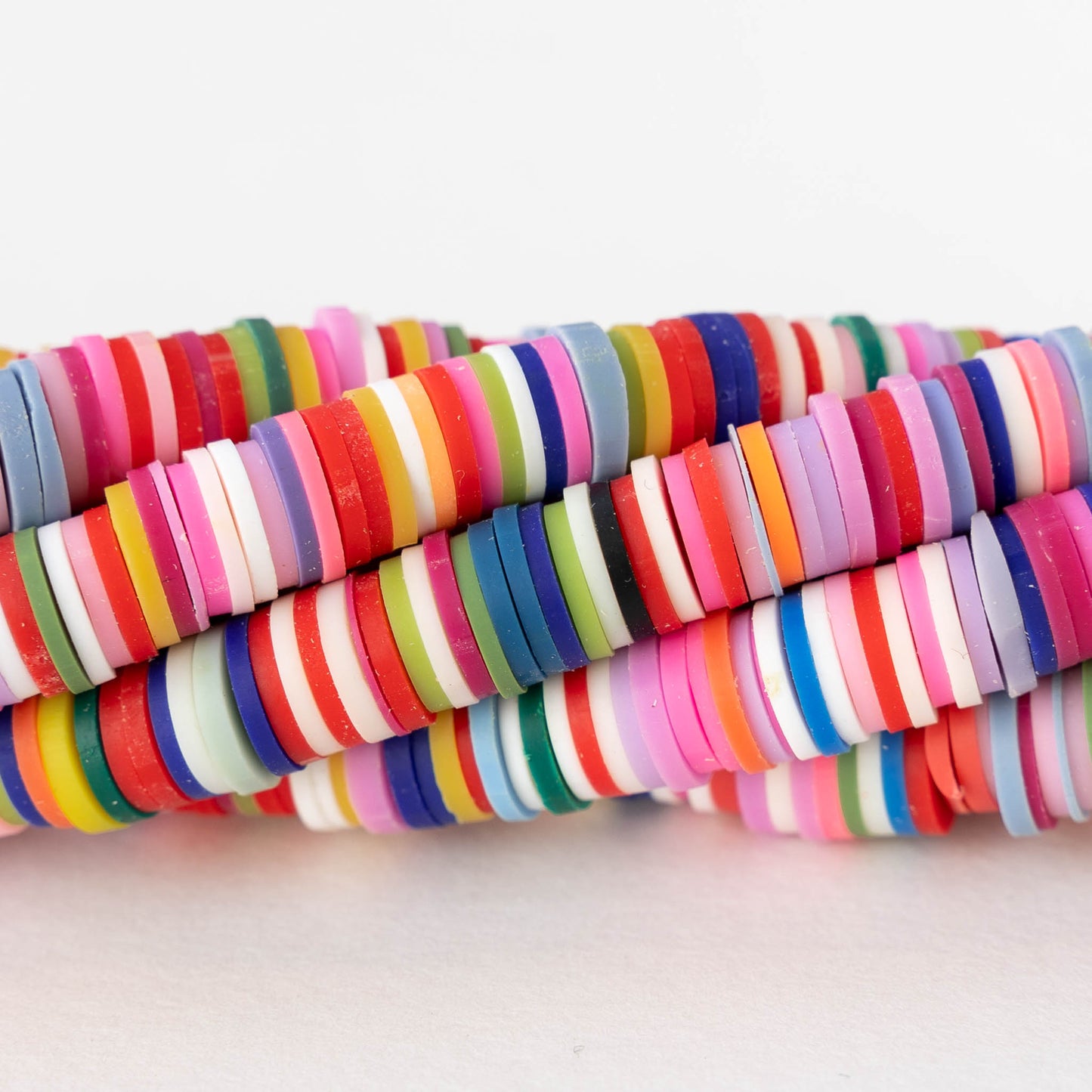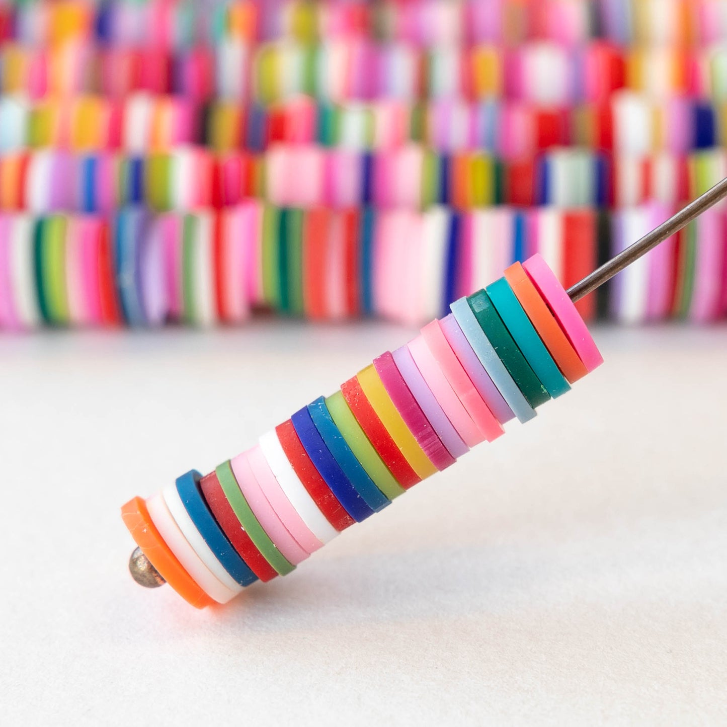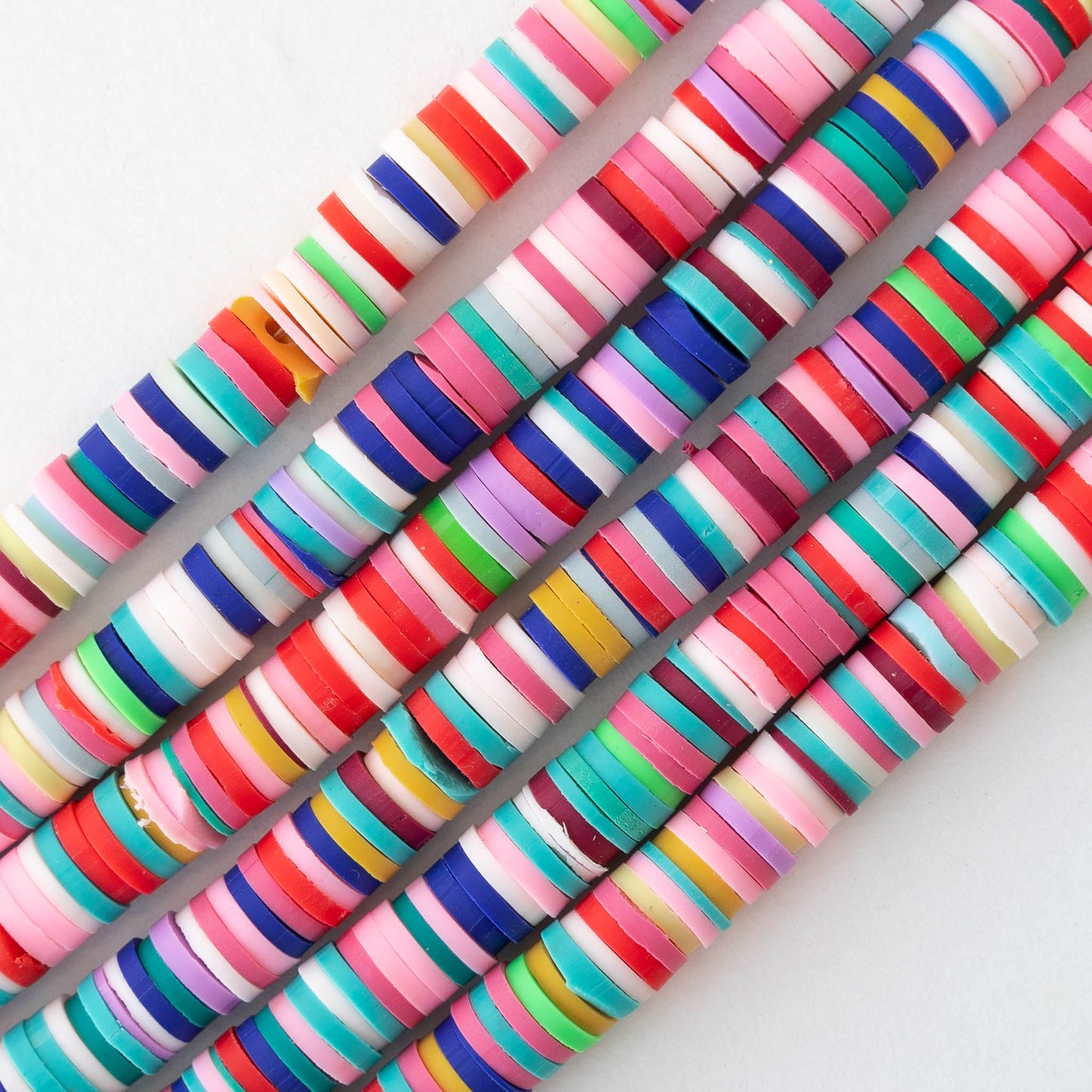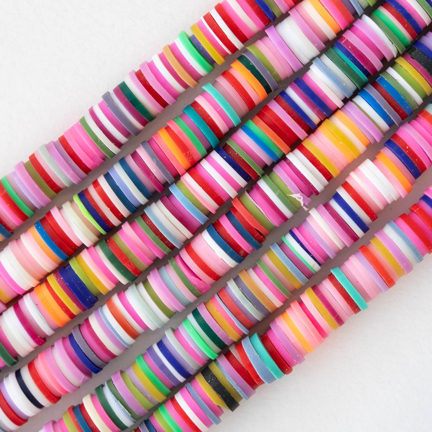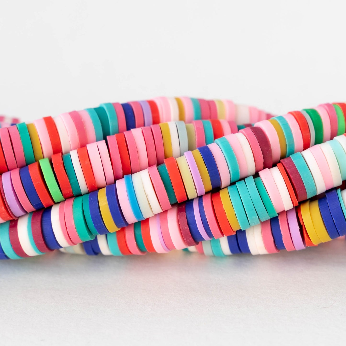 4mm, 6mm, or 8mm Polymer Clay Wheel Beads - Rainbow Pink - 16 inches