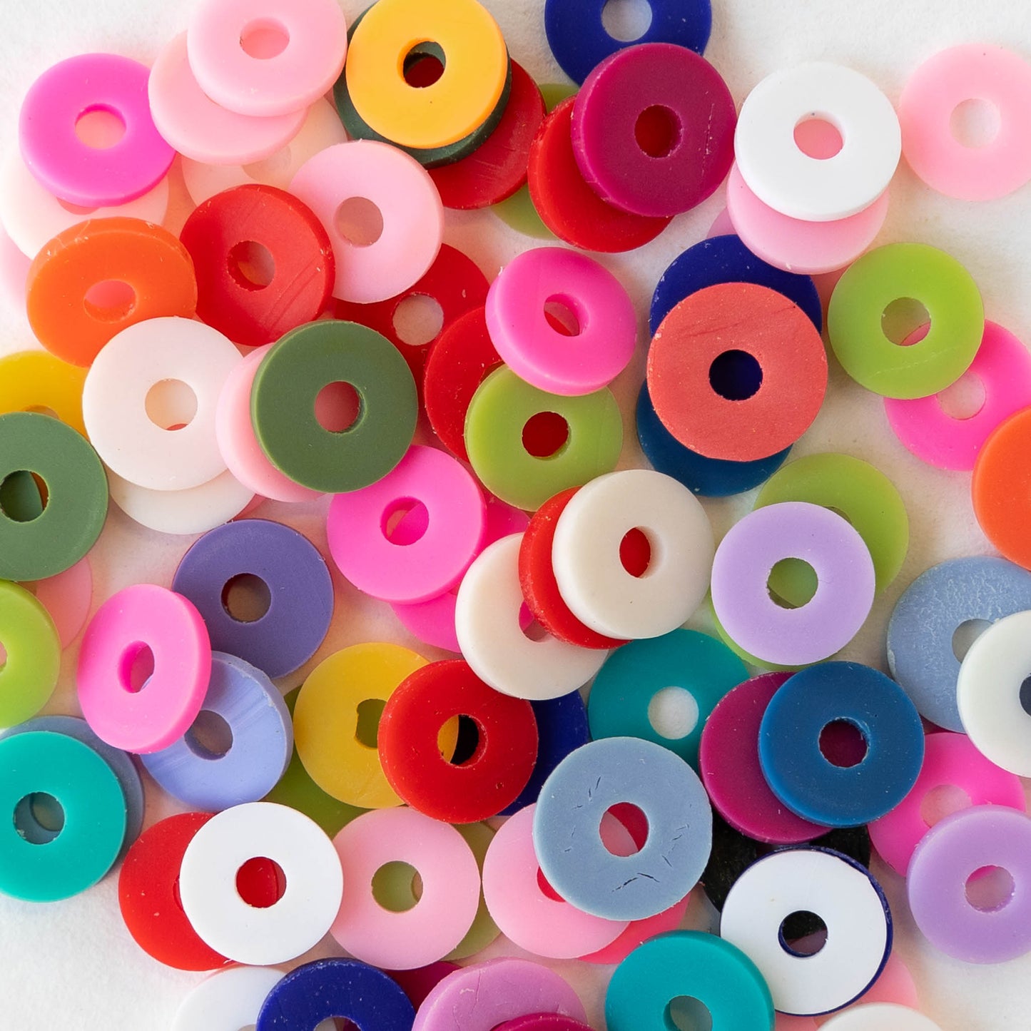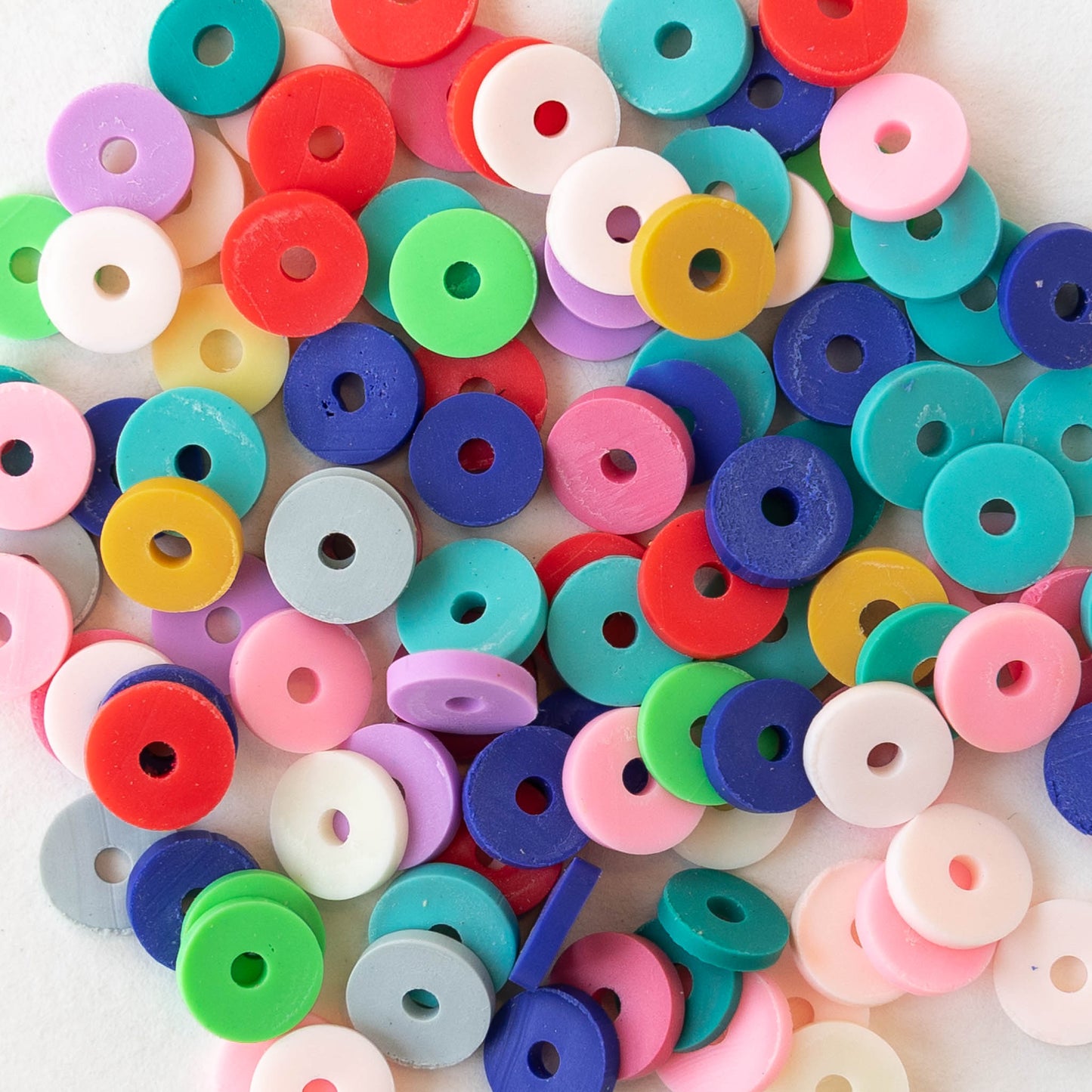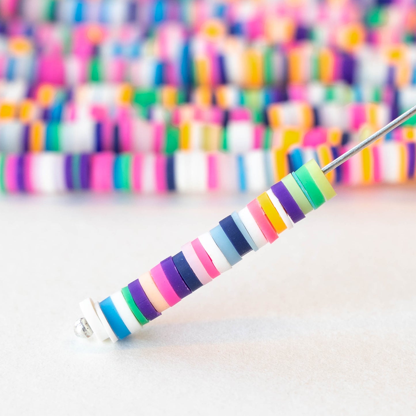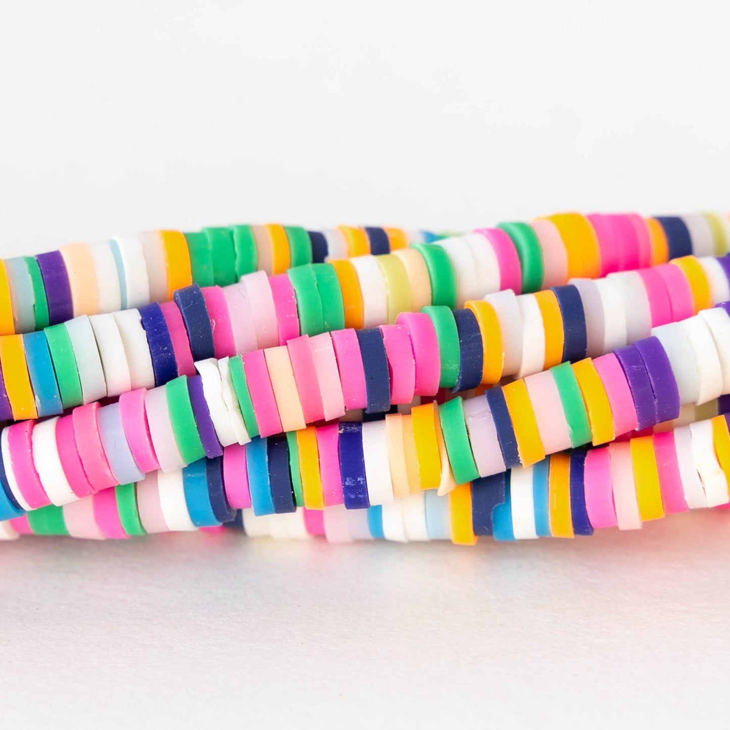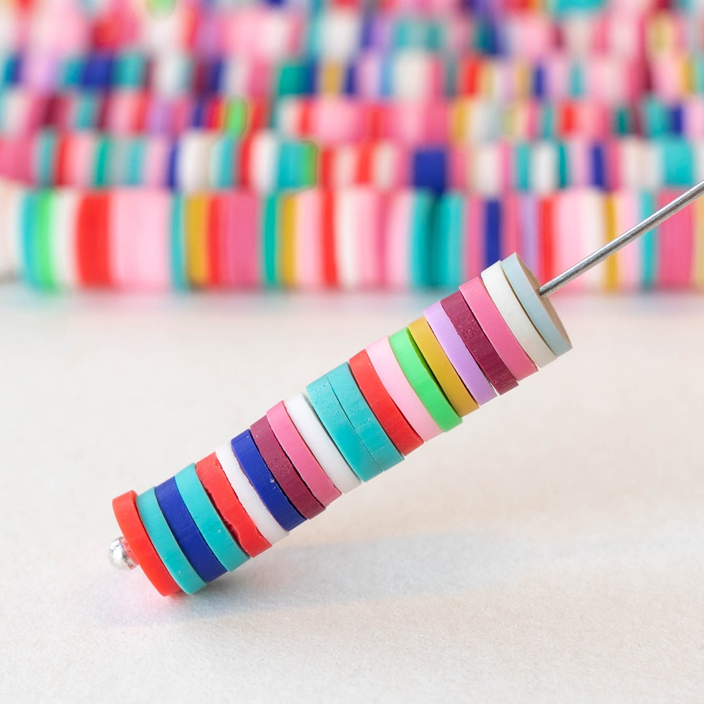 4mm, 6mm, or 8mm Polymer Clay Wheel Beads - Rainbow Pink - 16 inches