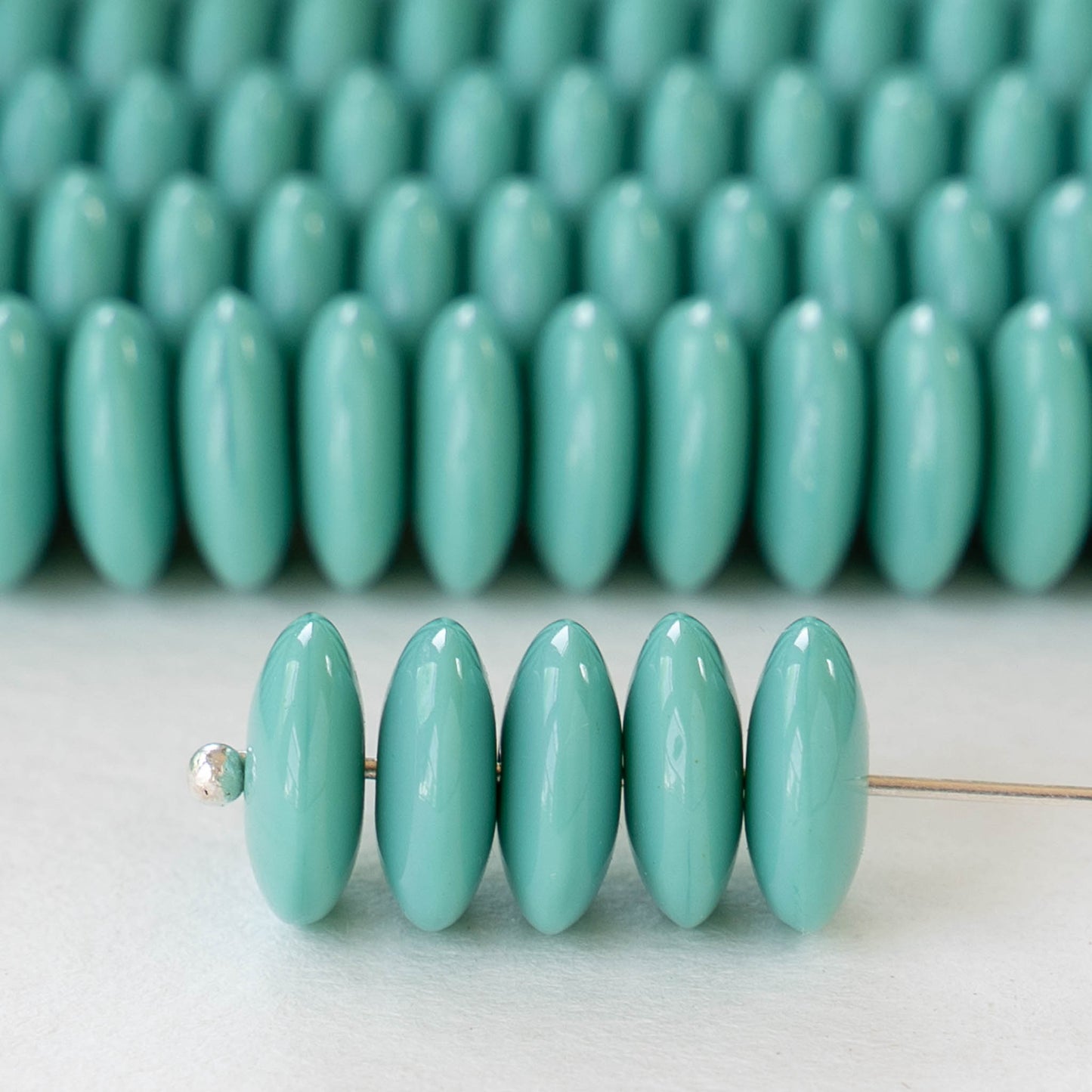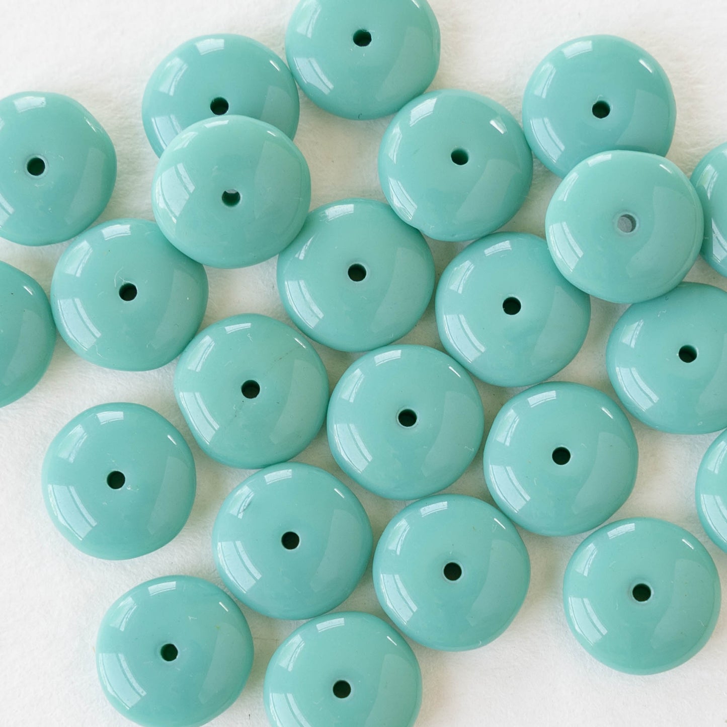 10mm Rondelle Beads - Opaque Turquoise - 30 Beads