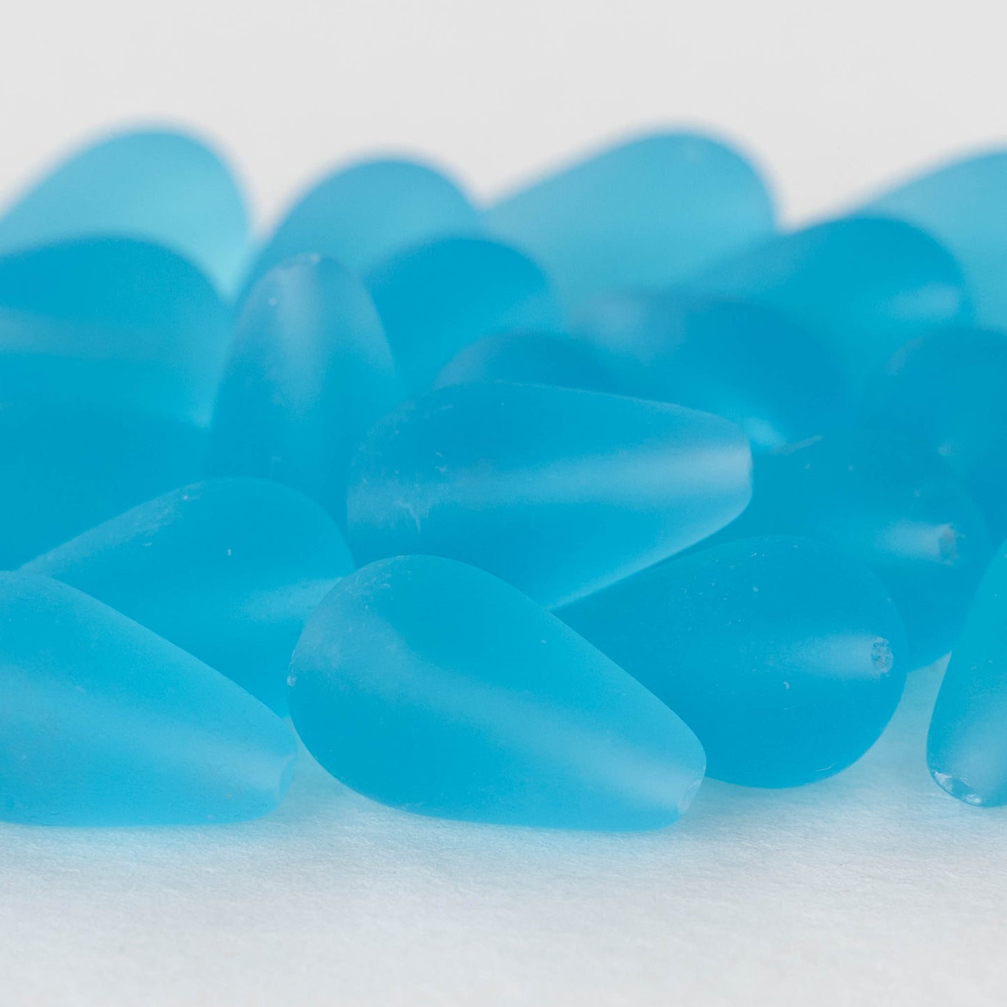11x18mm Long Drilled Drops - Frosted Aqua Blue - 20 Beads