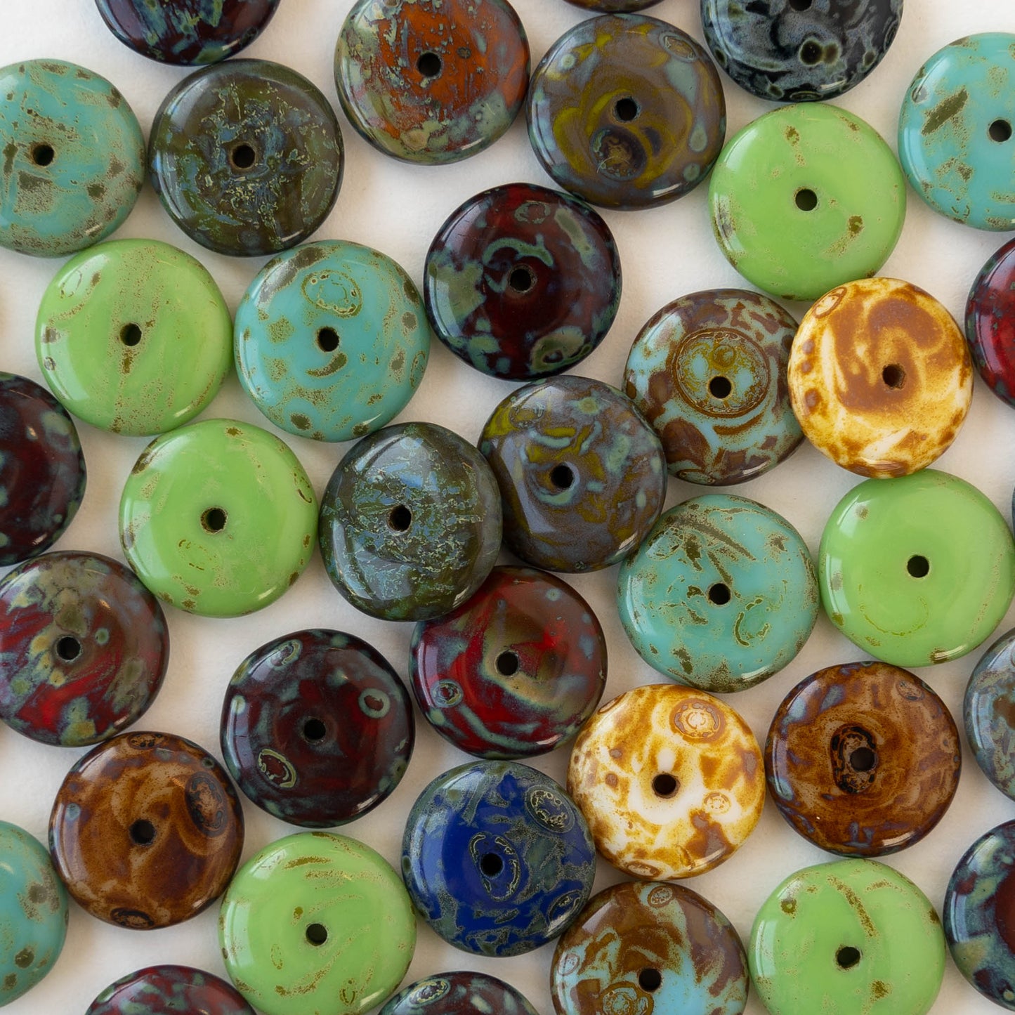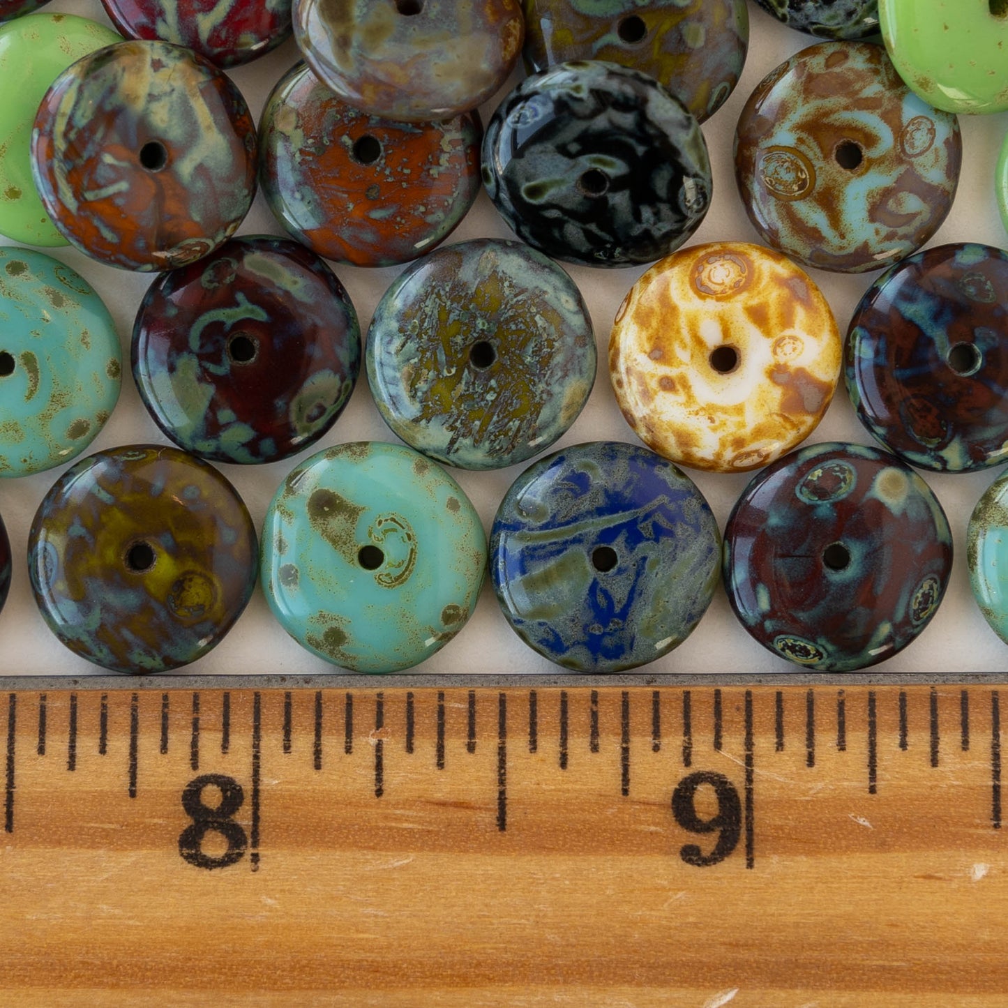 Awesome large rondelles. This size is a rare find and so is the color mix!
