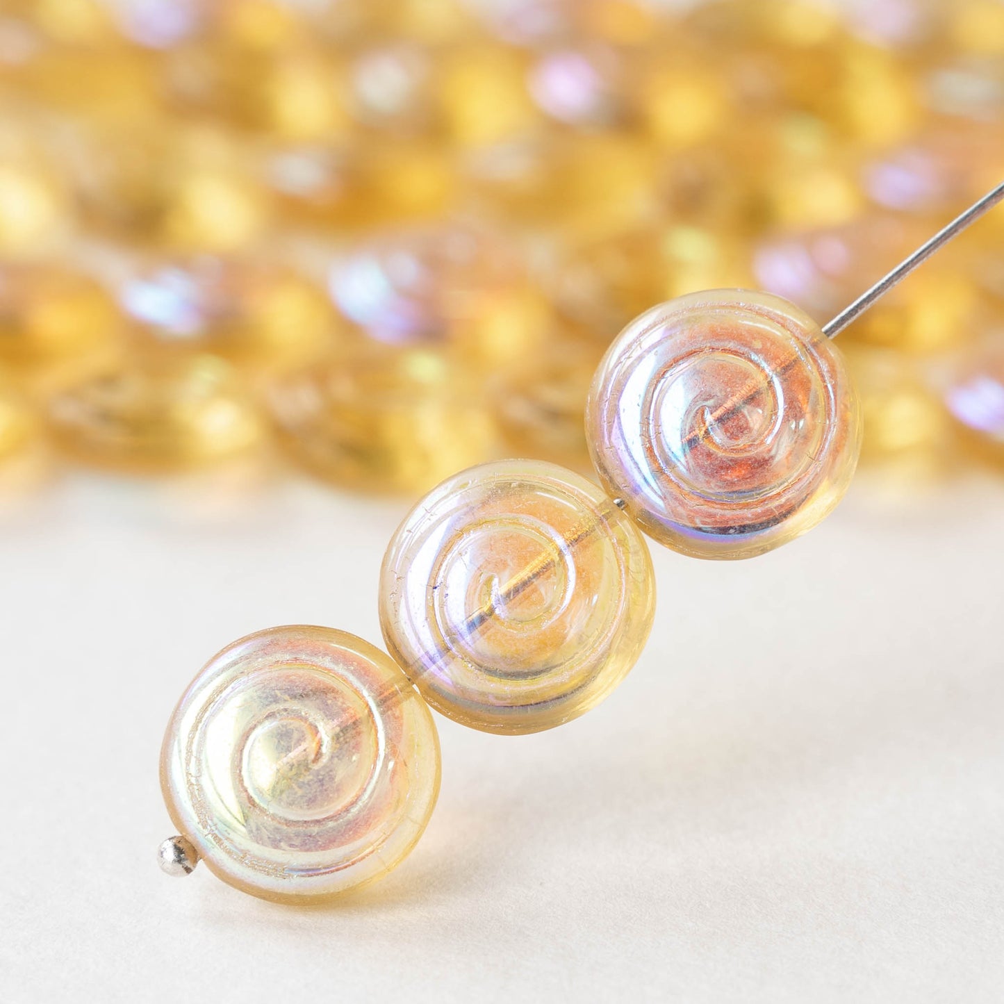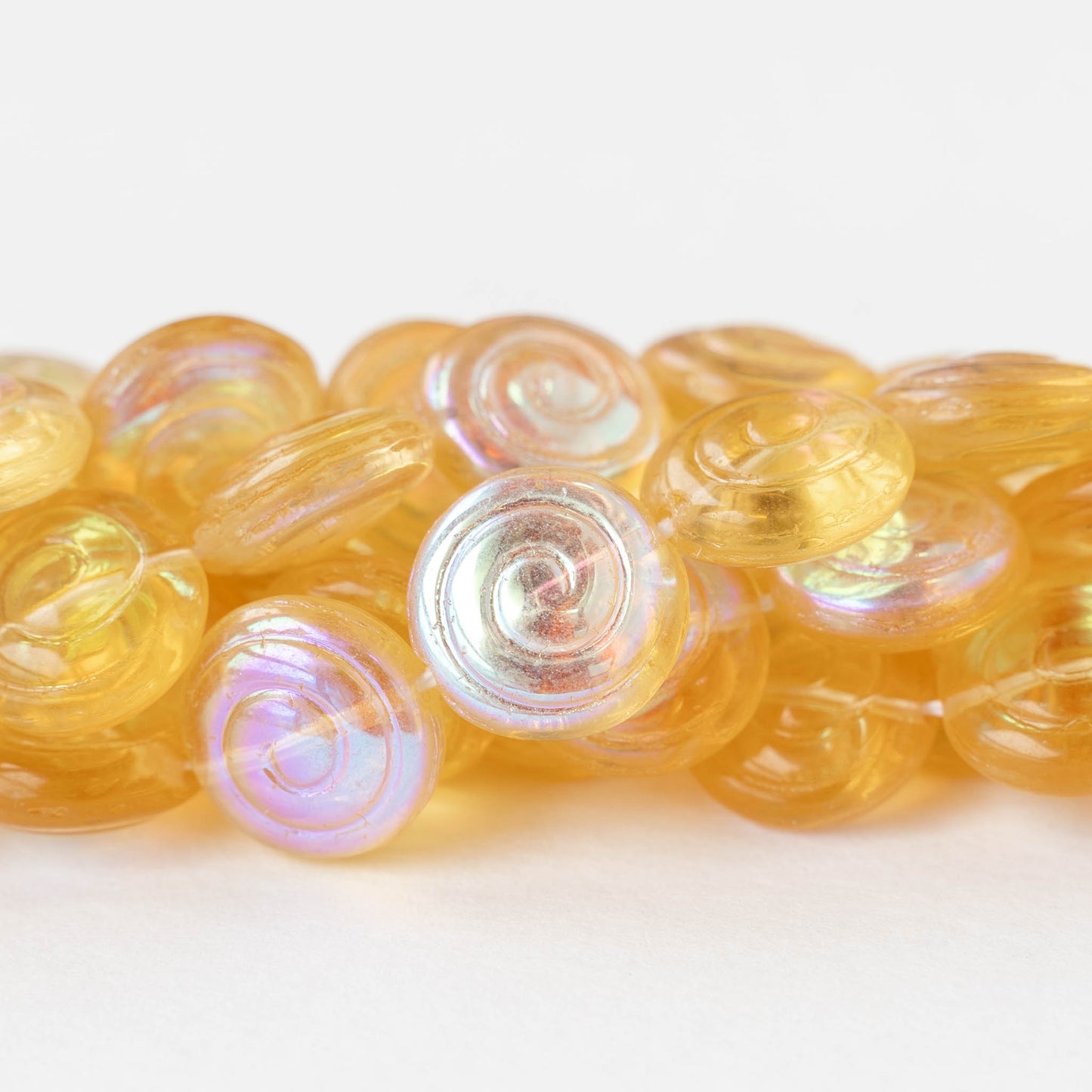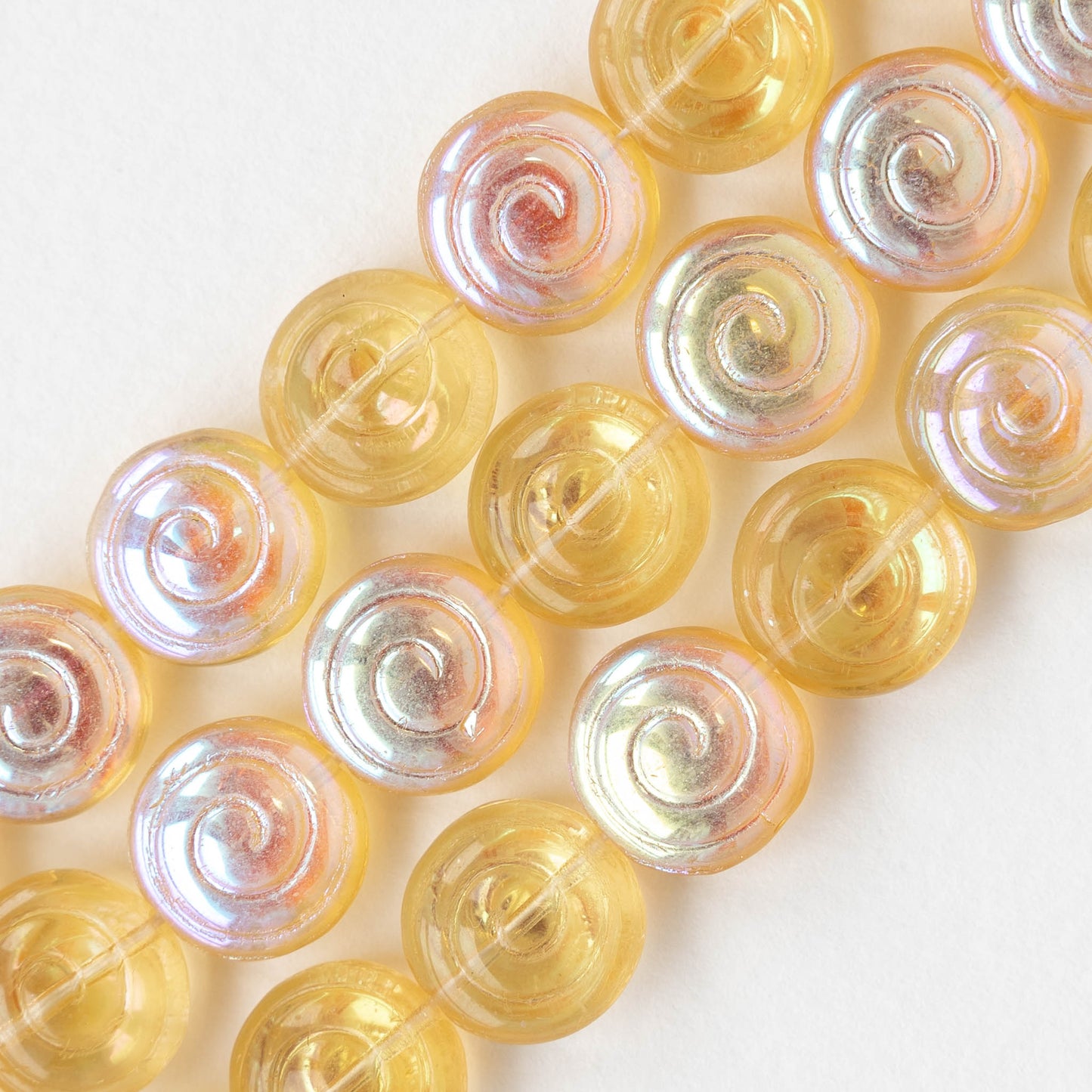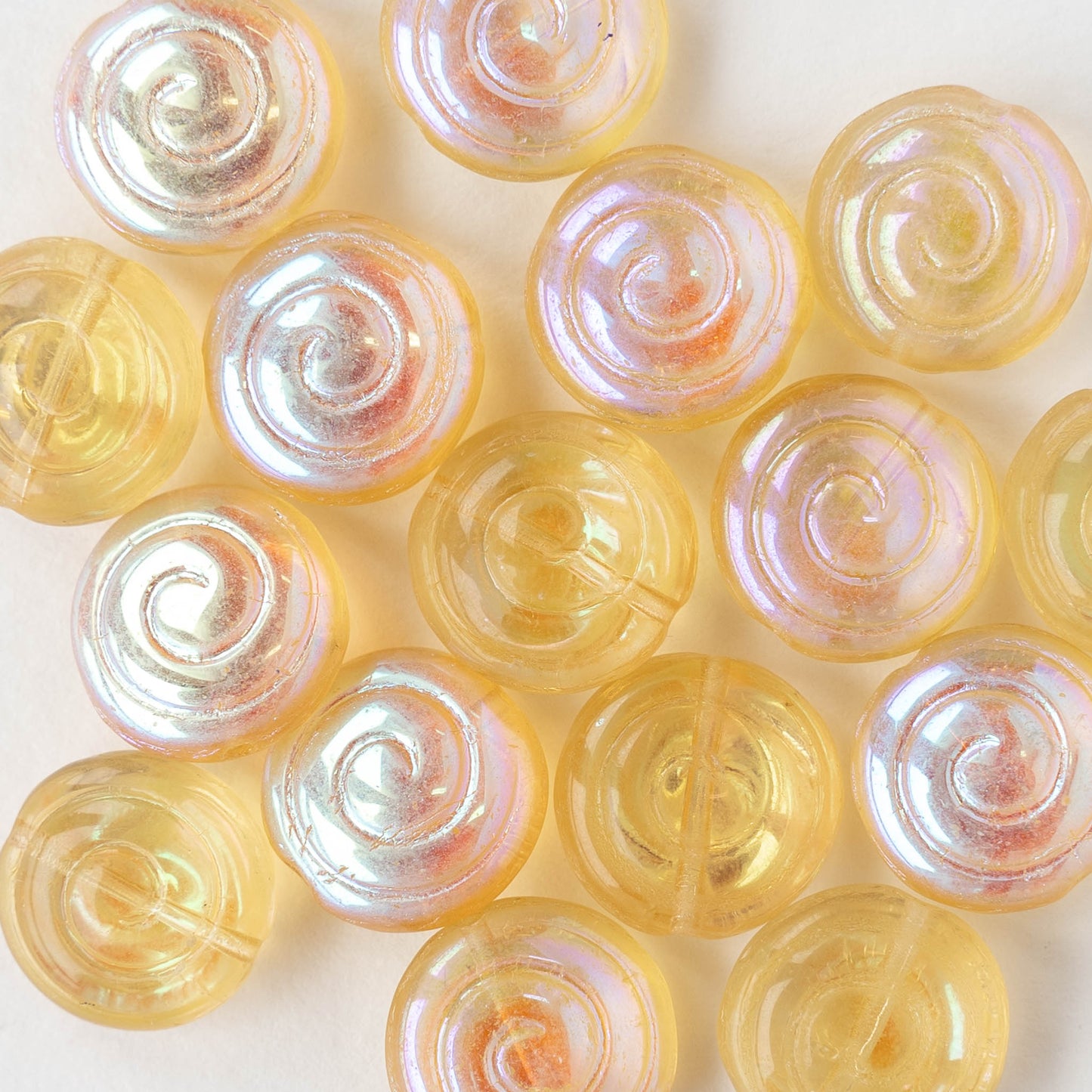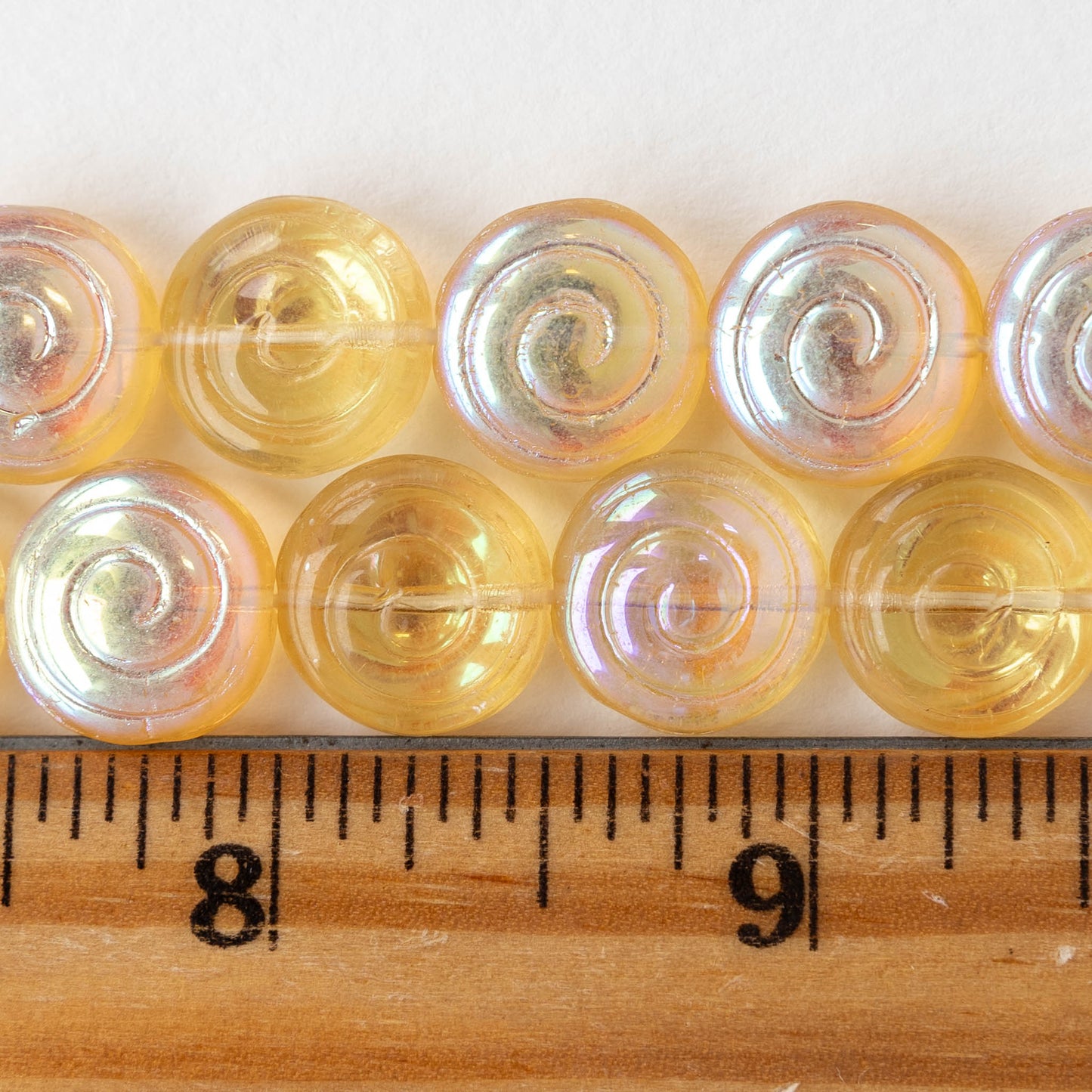 13mm Spiral Coin Beads - Transparent Yellow AB - 10 beads
