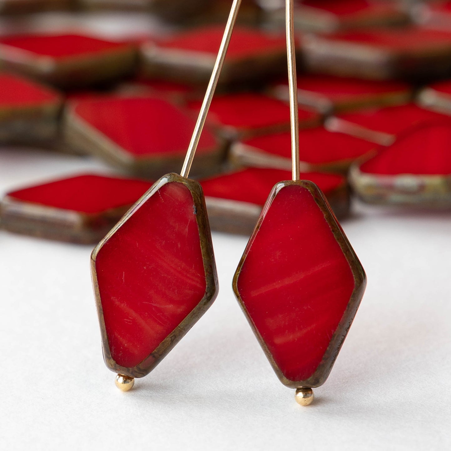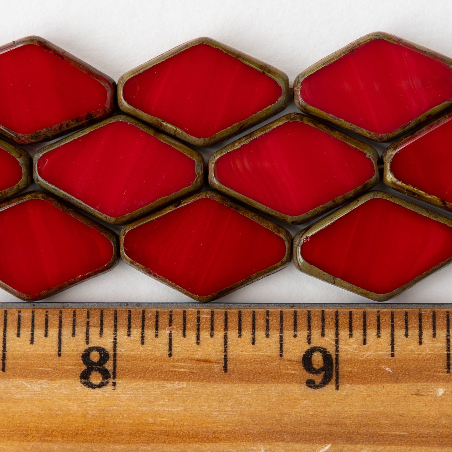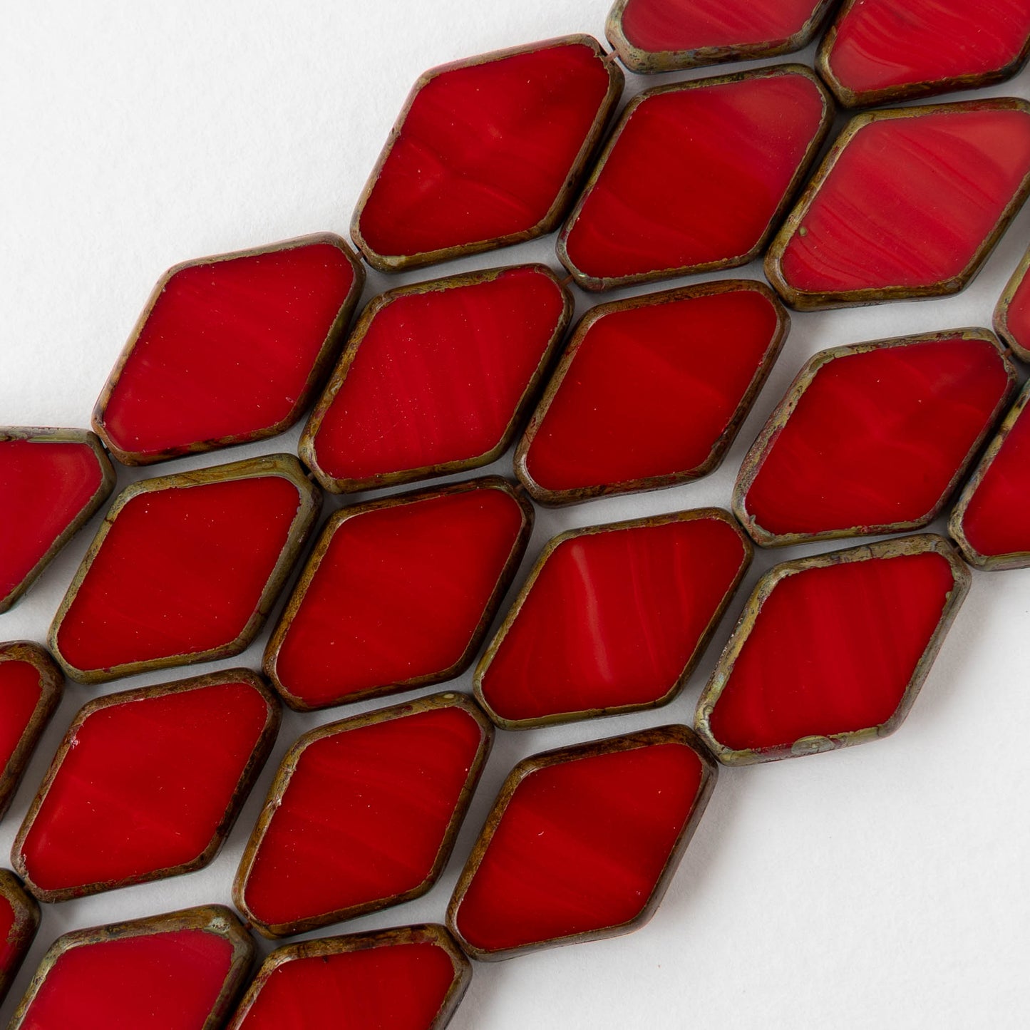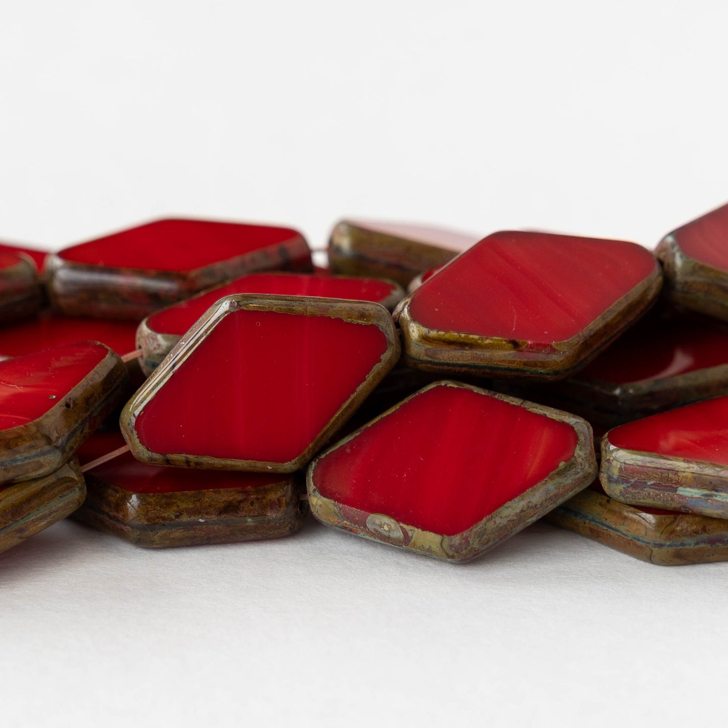 Flat diamond-shaped glass beads.