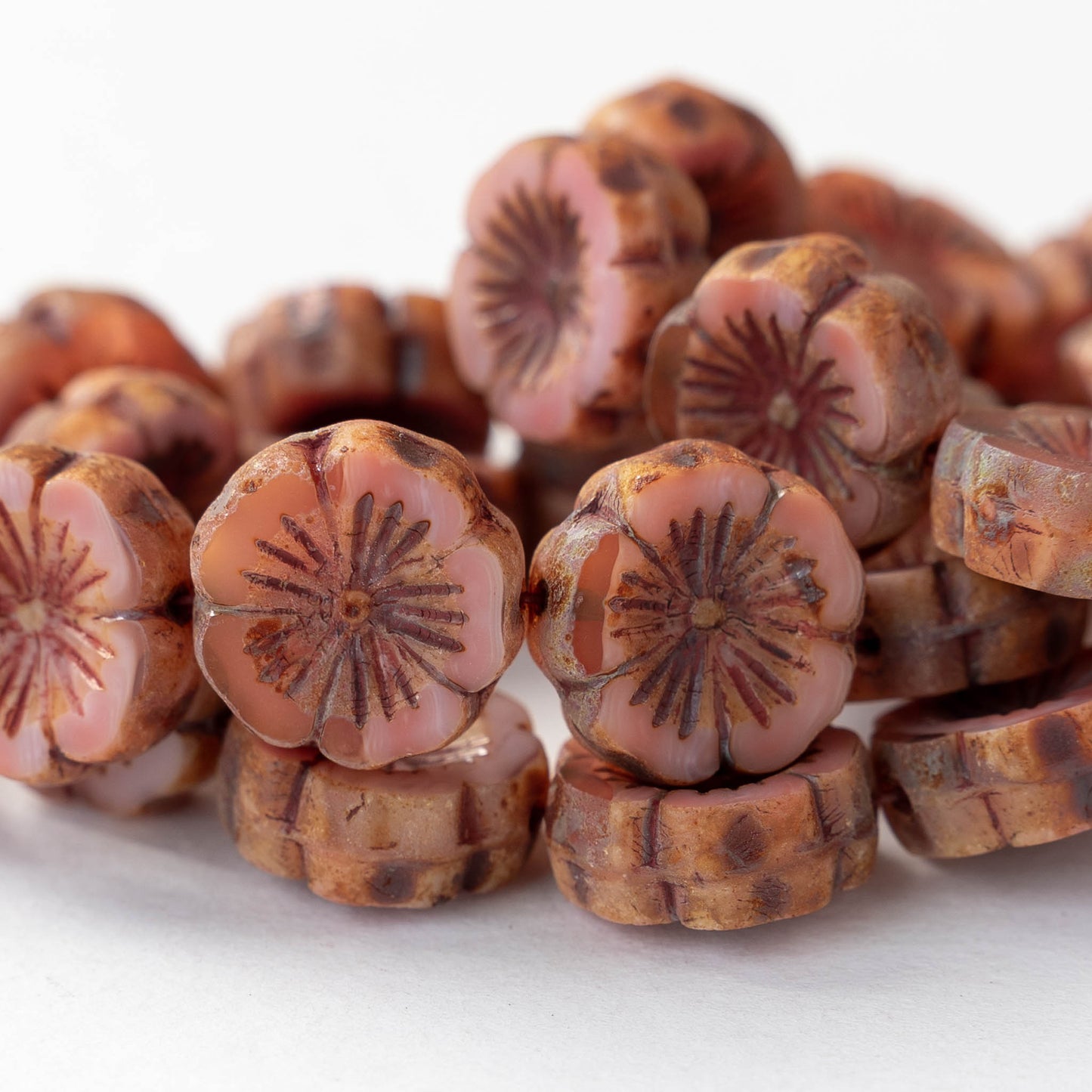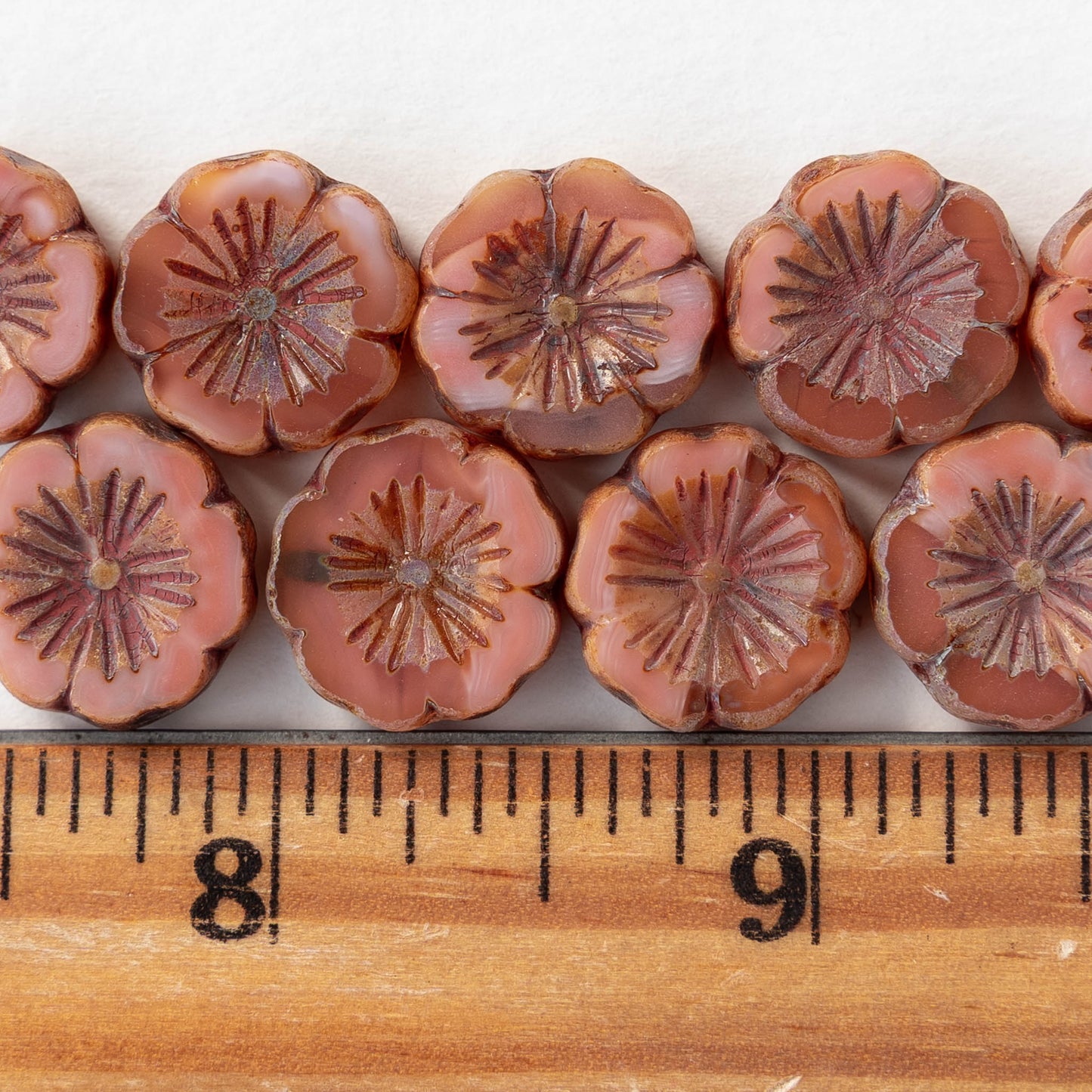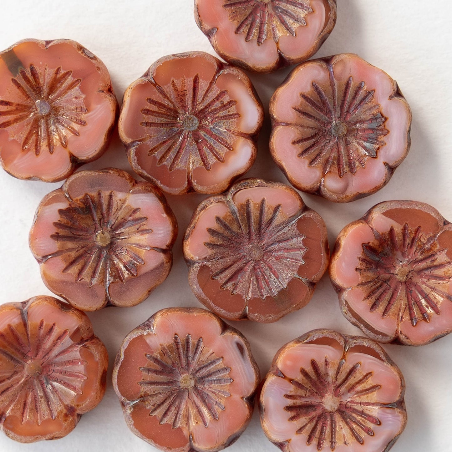 14mm Hibiscus Flower Bead - Opaque Pink Orange Mix - 10 Beads