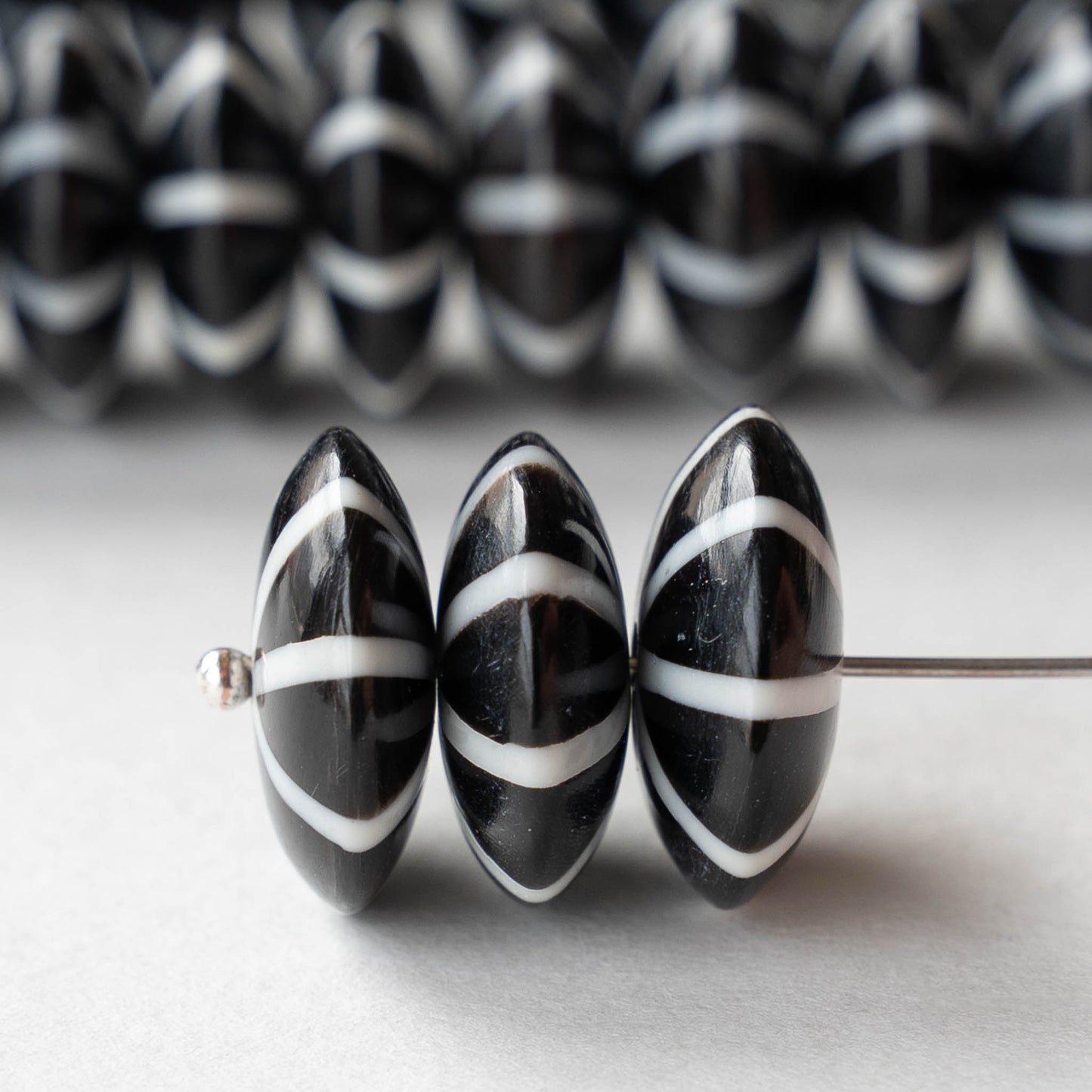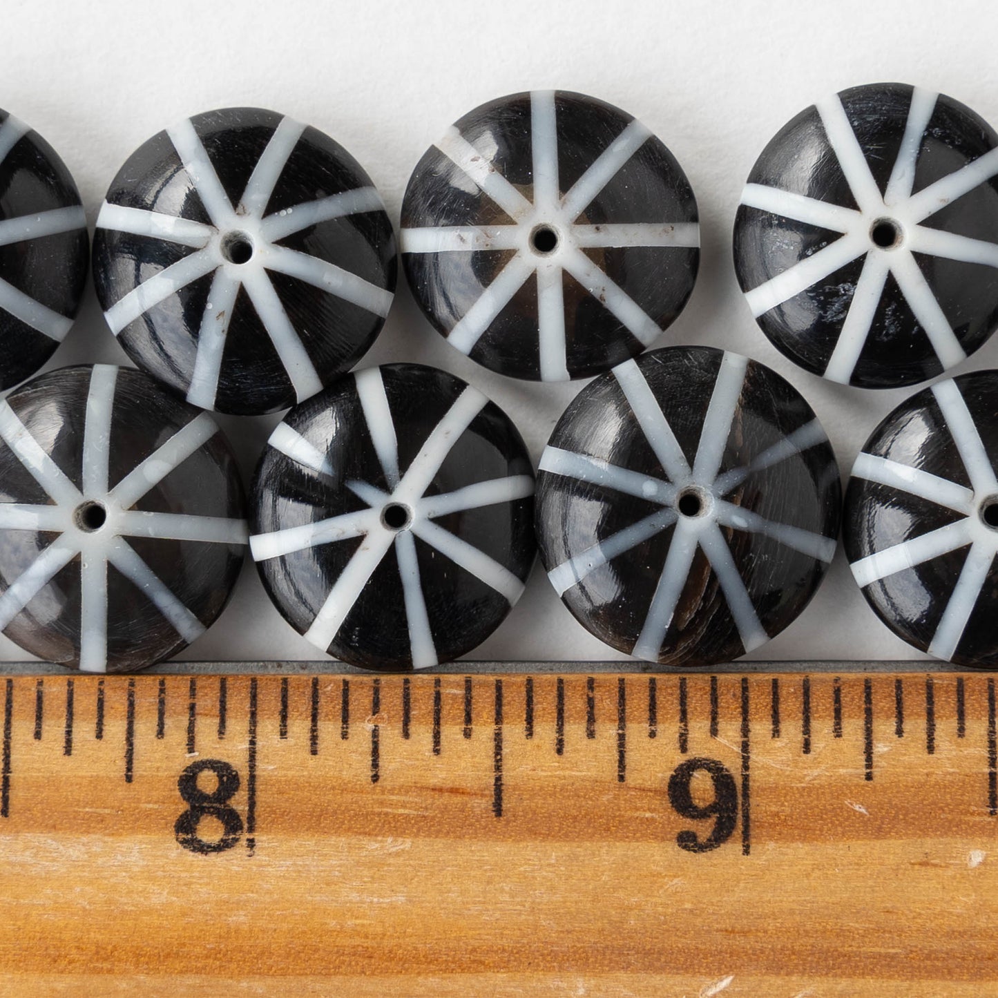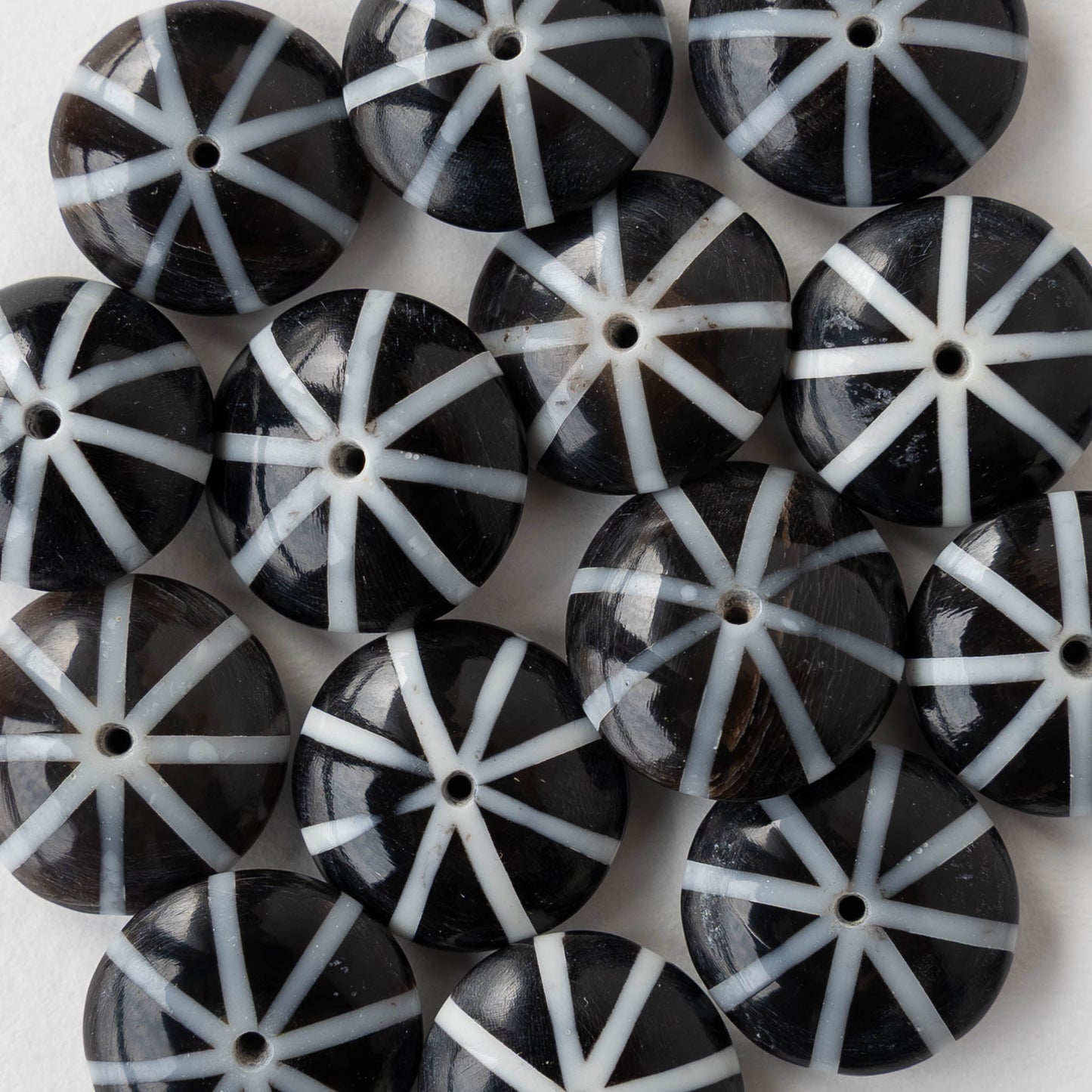 15mm Buffalo Horn Disk Beads - Black and White - 10 beads