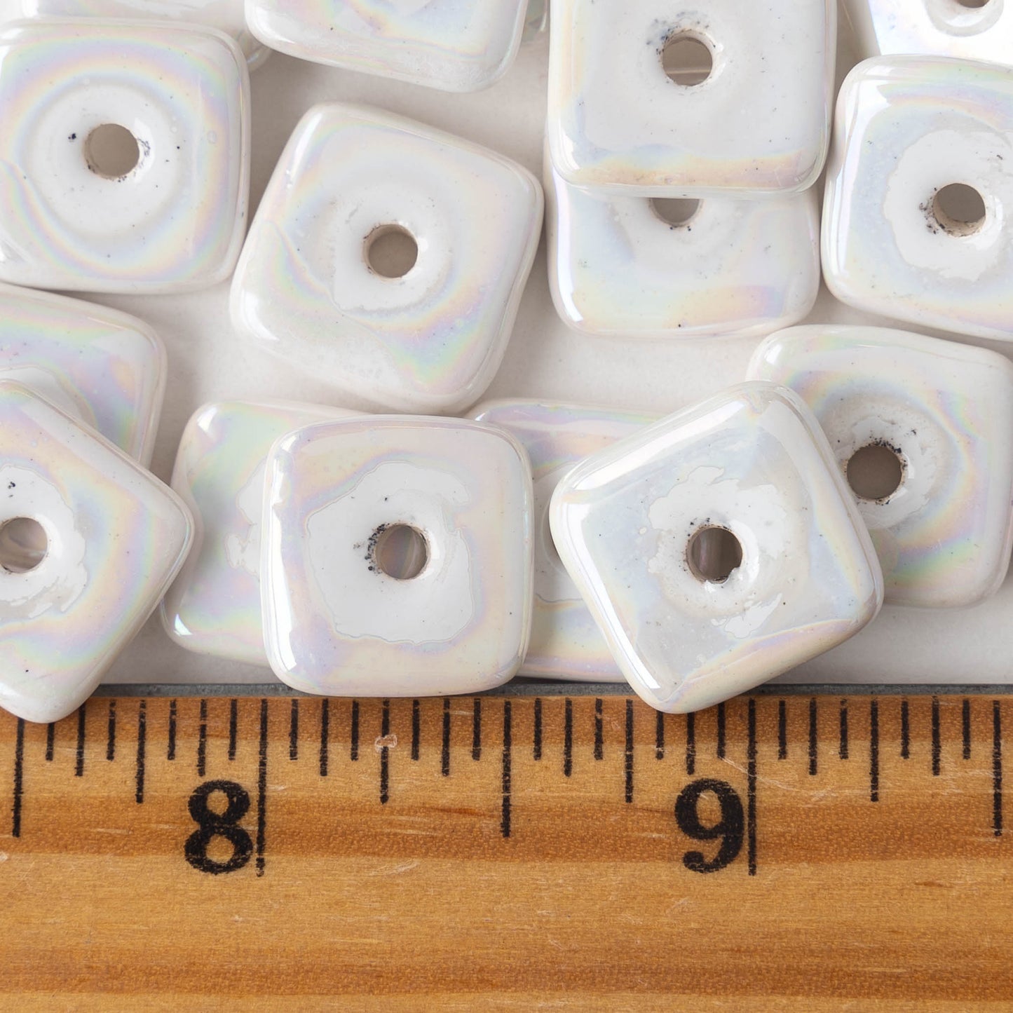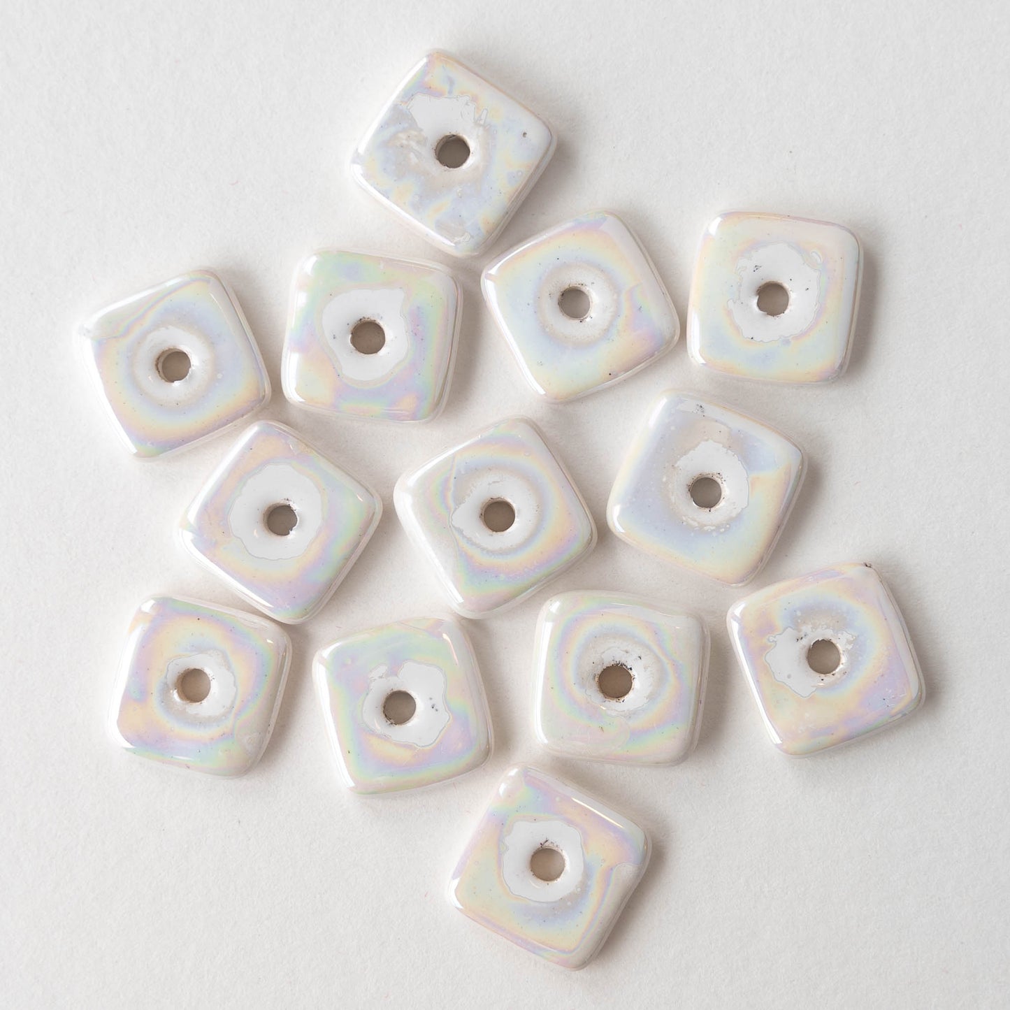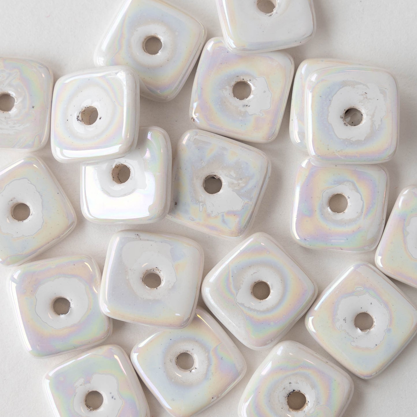 15mm Glazed Ceramic Square Tiles - Iridescent Ivory Opal - 10 or 30