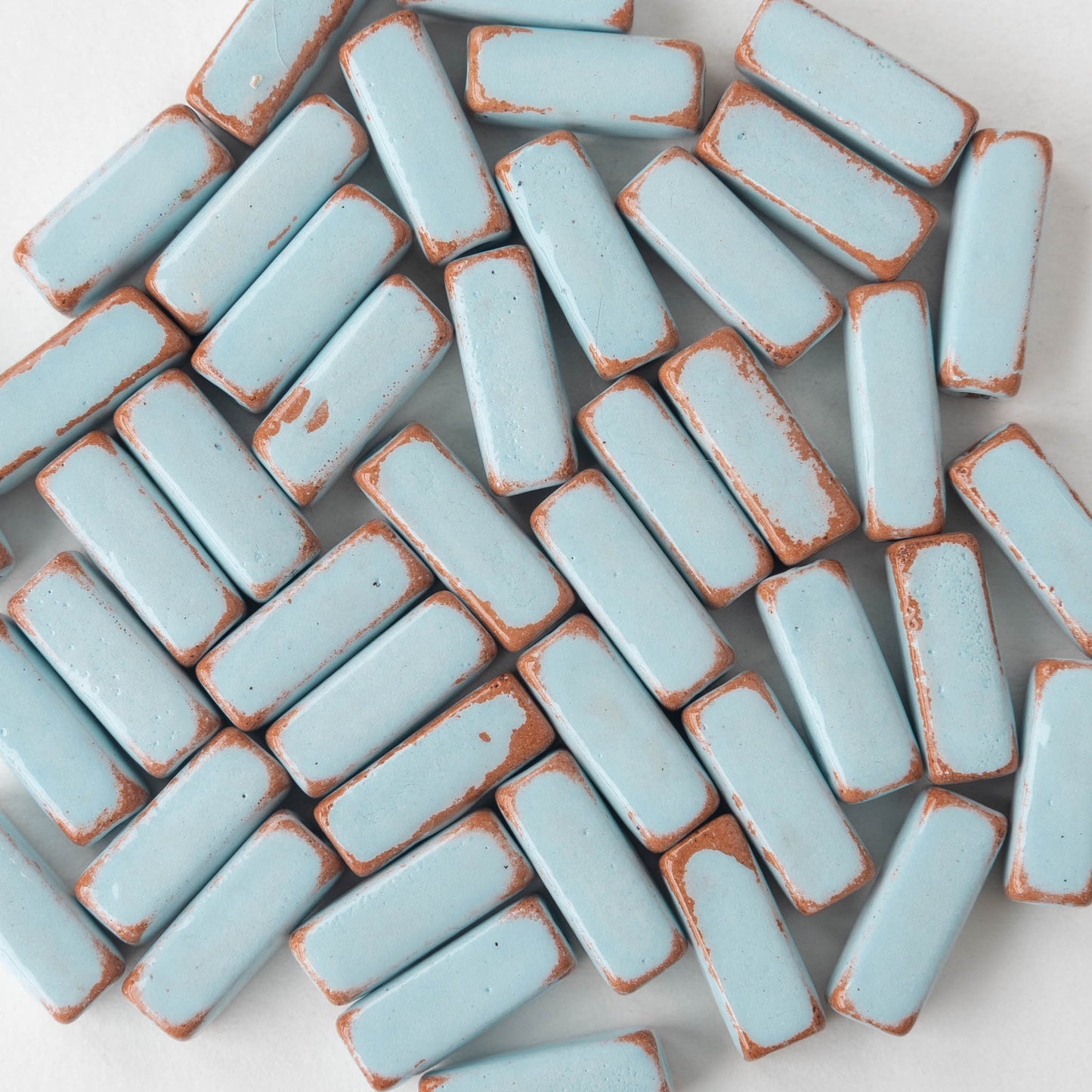 18mm Shiny Glazed Ceramic Rectangle Tube Beads - Pueblo Light Blue
