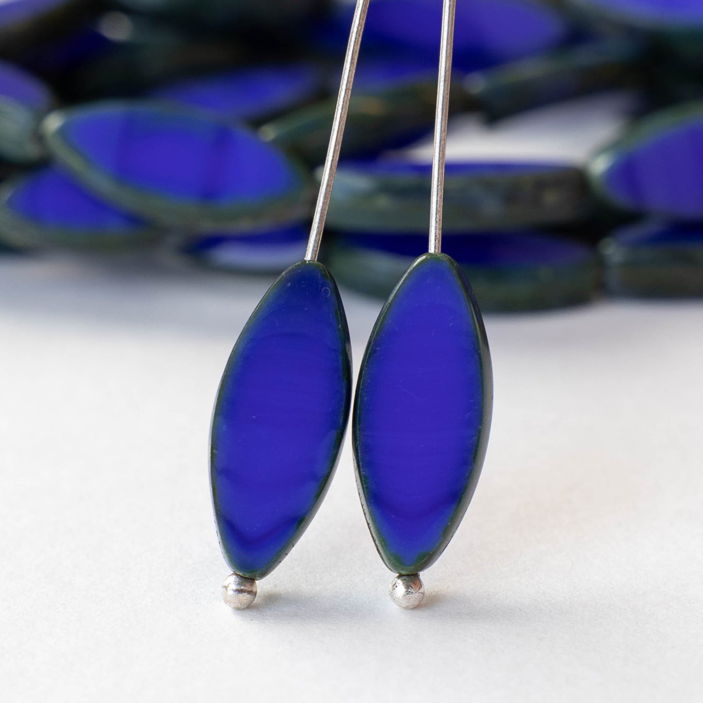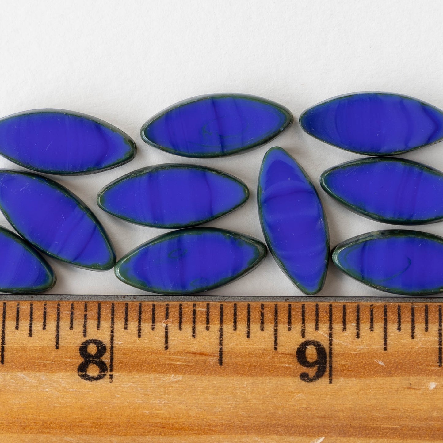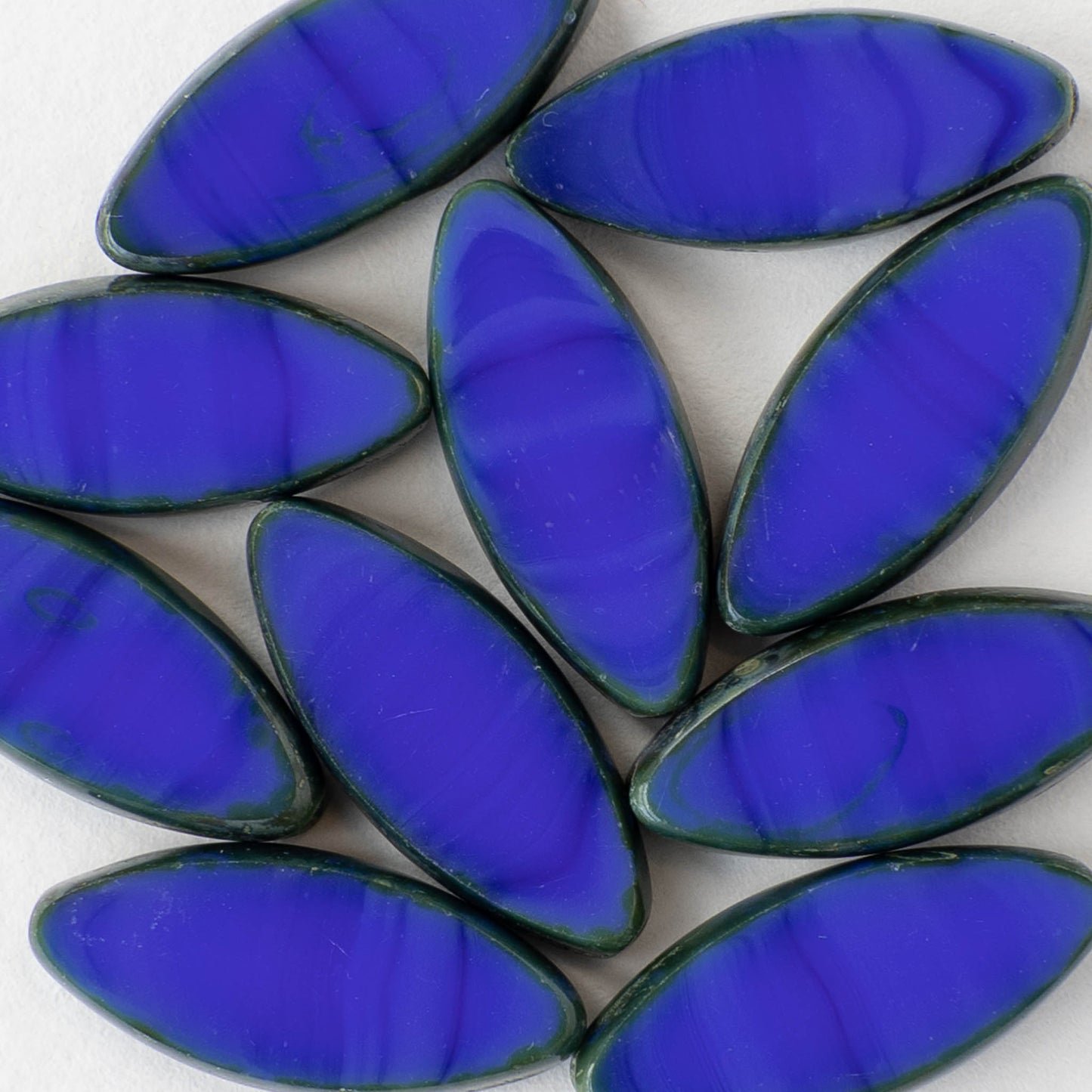 18mm Spindle Beads - Opaque Dark Periwinkle Blue Picaso - 10 beads
