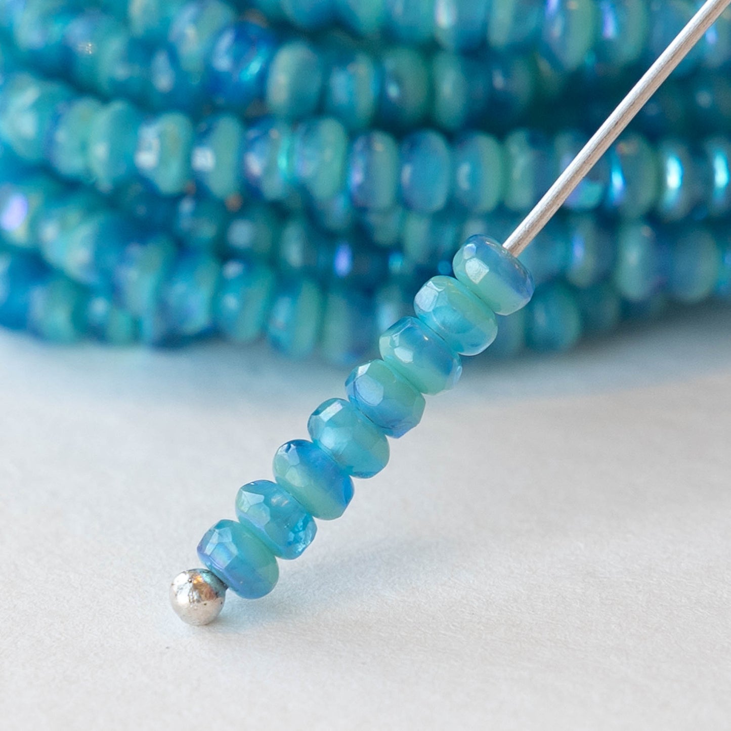 2x3mm Rondelle Beads - Turquoise Aqua AB Mix - 50 Beads