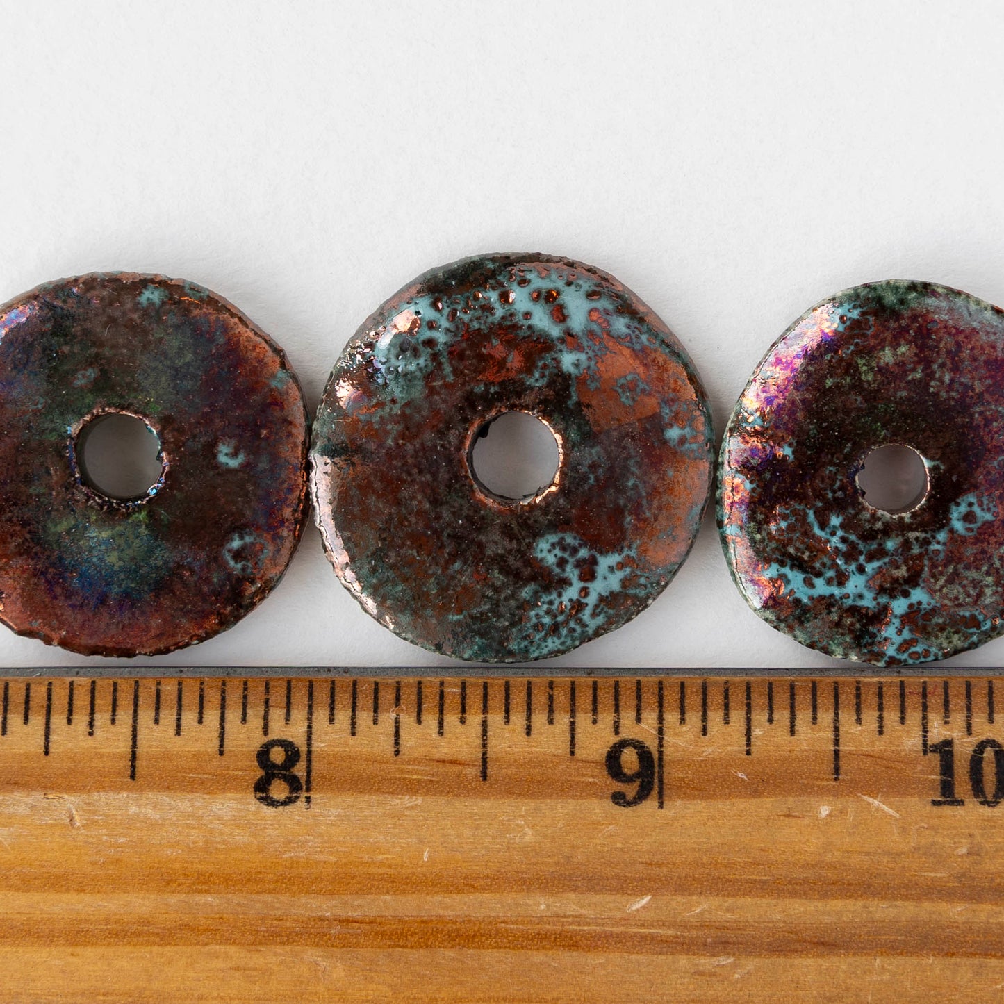 30mm Ceramic Raku Disk Beads - Iridescent Copper Patina - 1, 2, or 4 beads