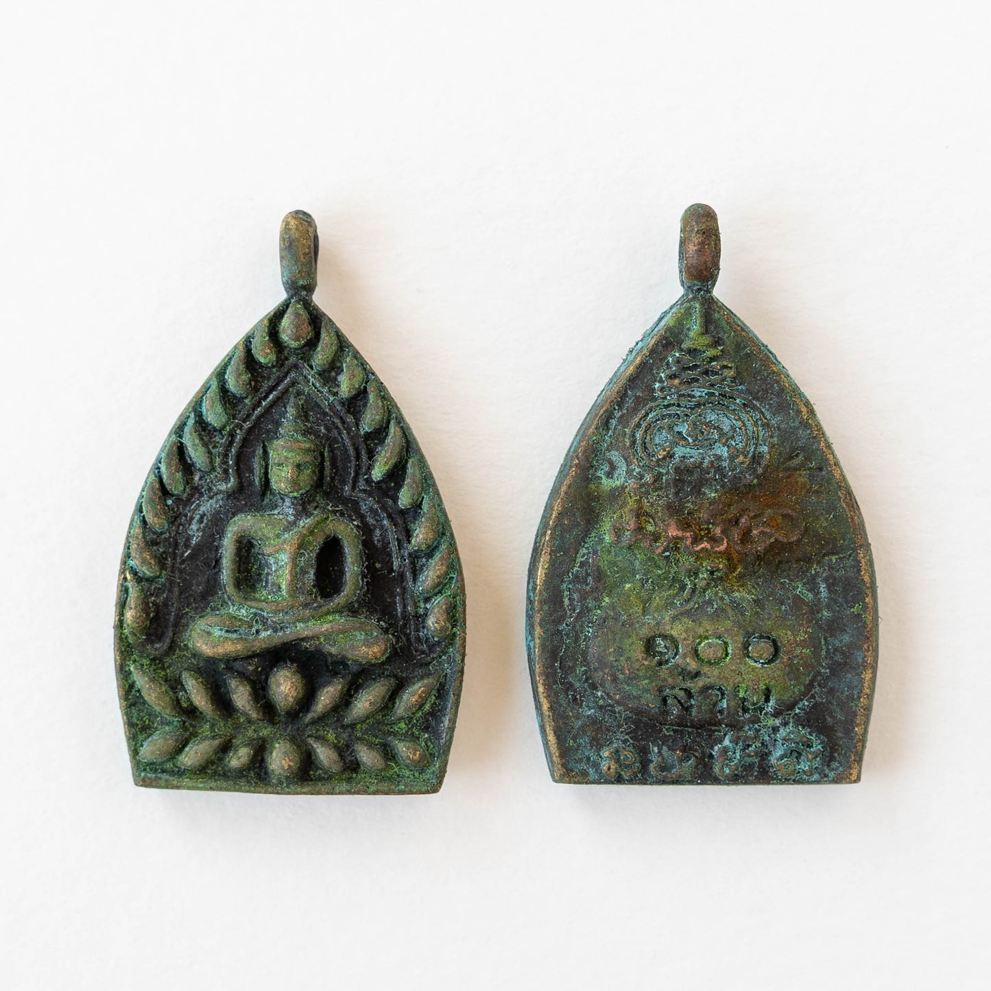39mm Sitting Buddha Pendant - Green Patina - 1 piece