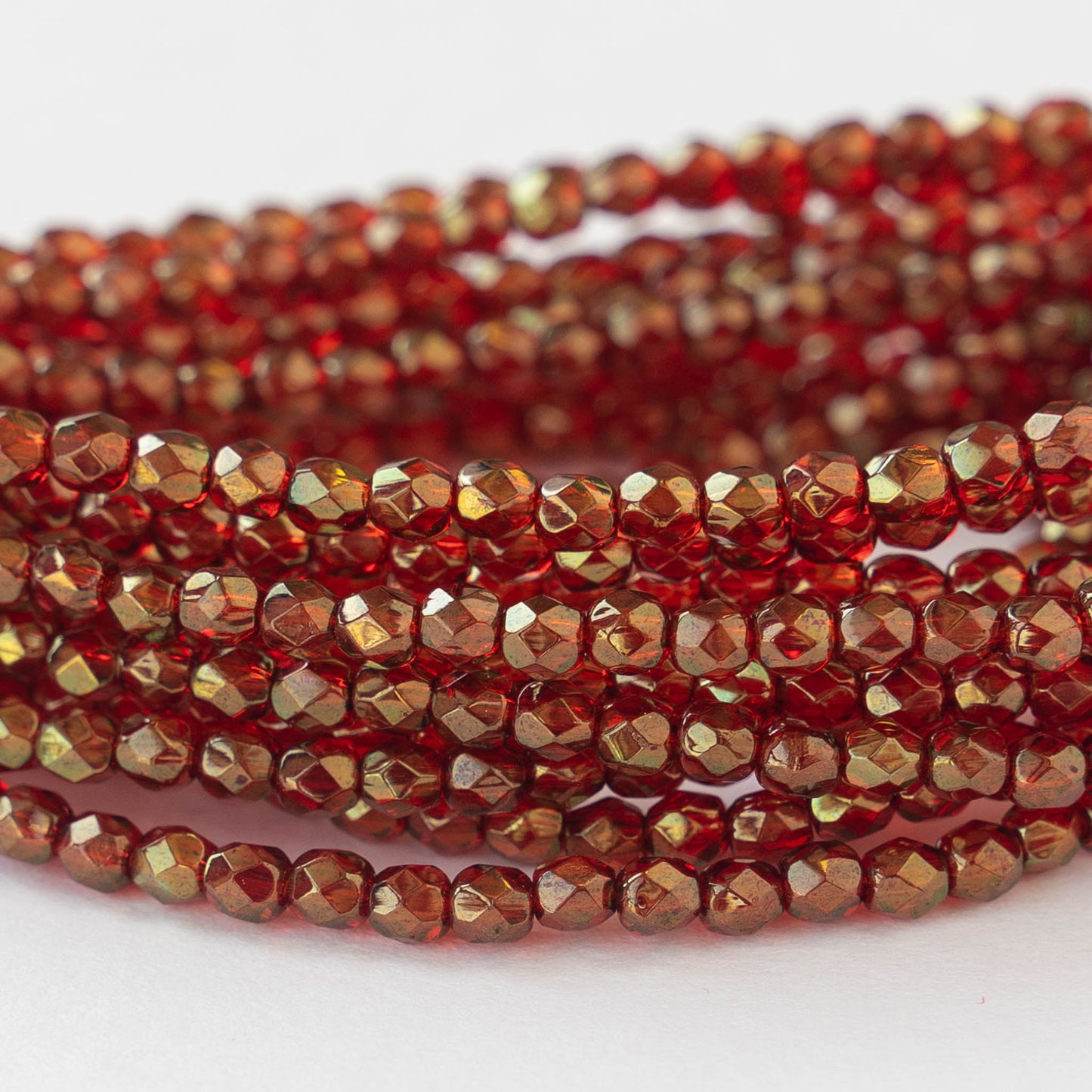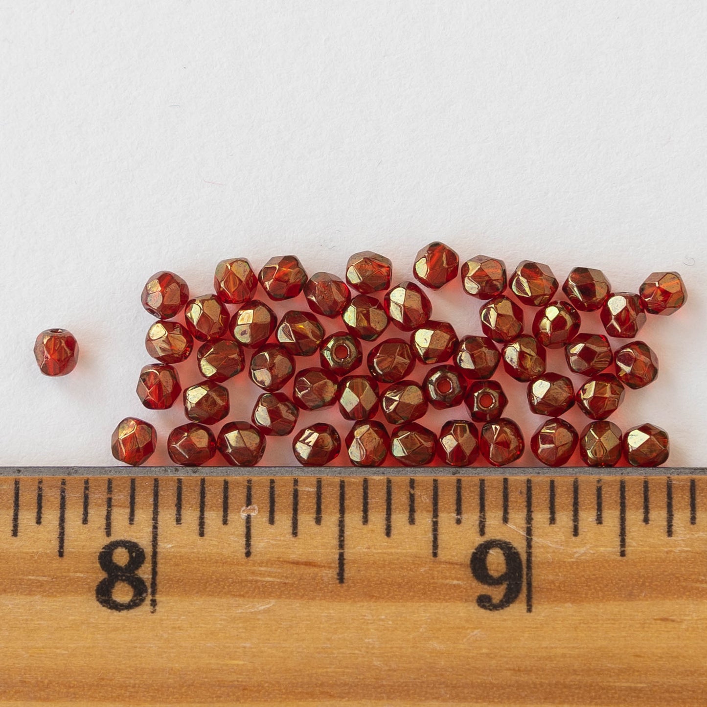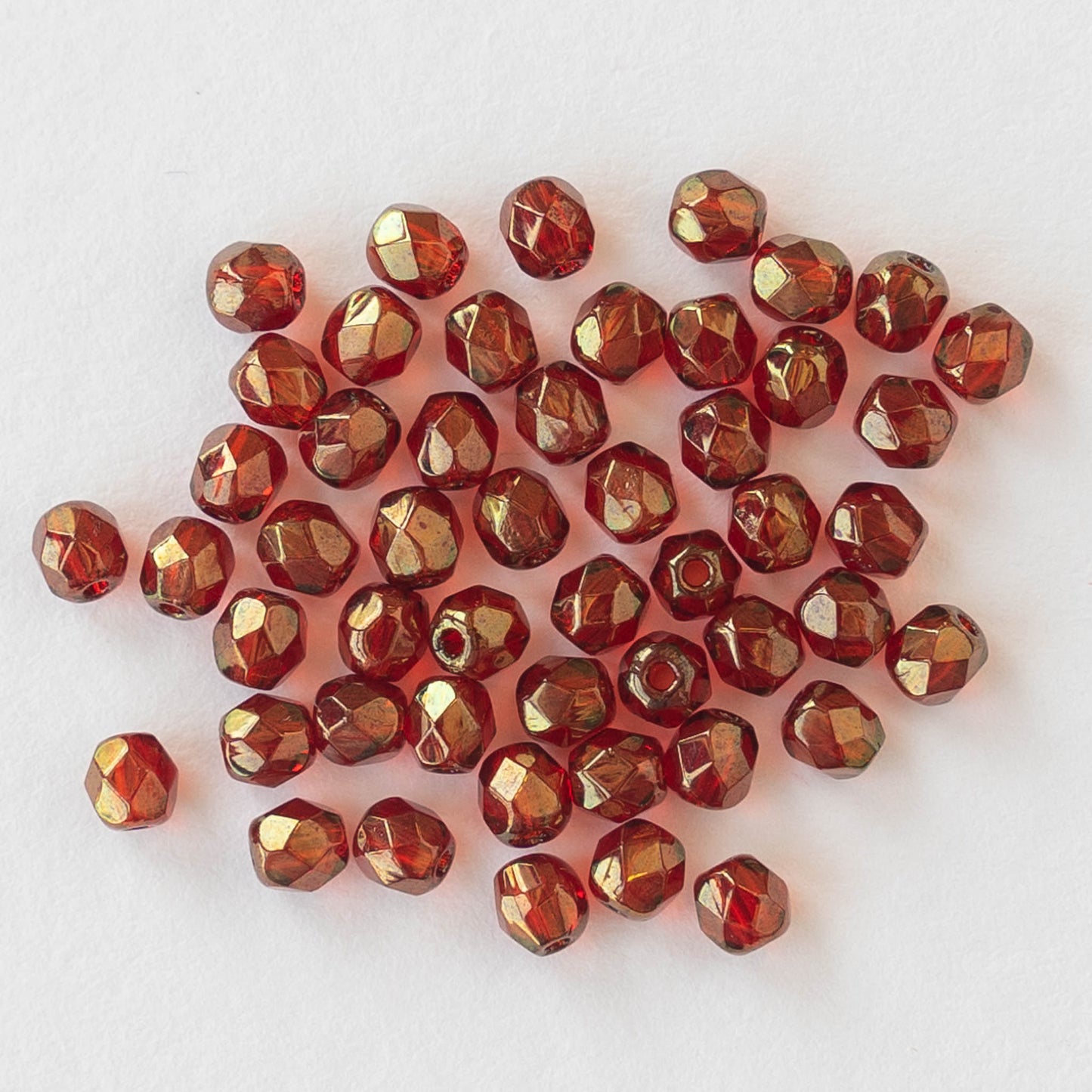 3mm Round Beads - Ruby Red with Gold Luster - 50 beads