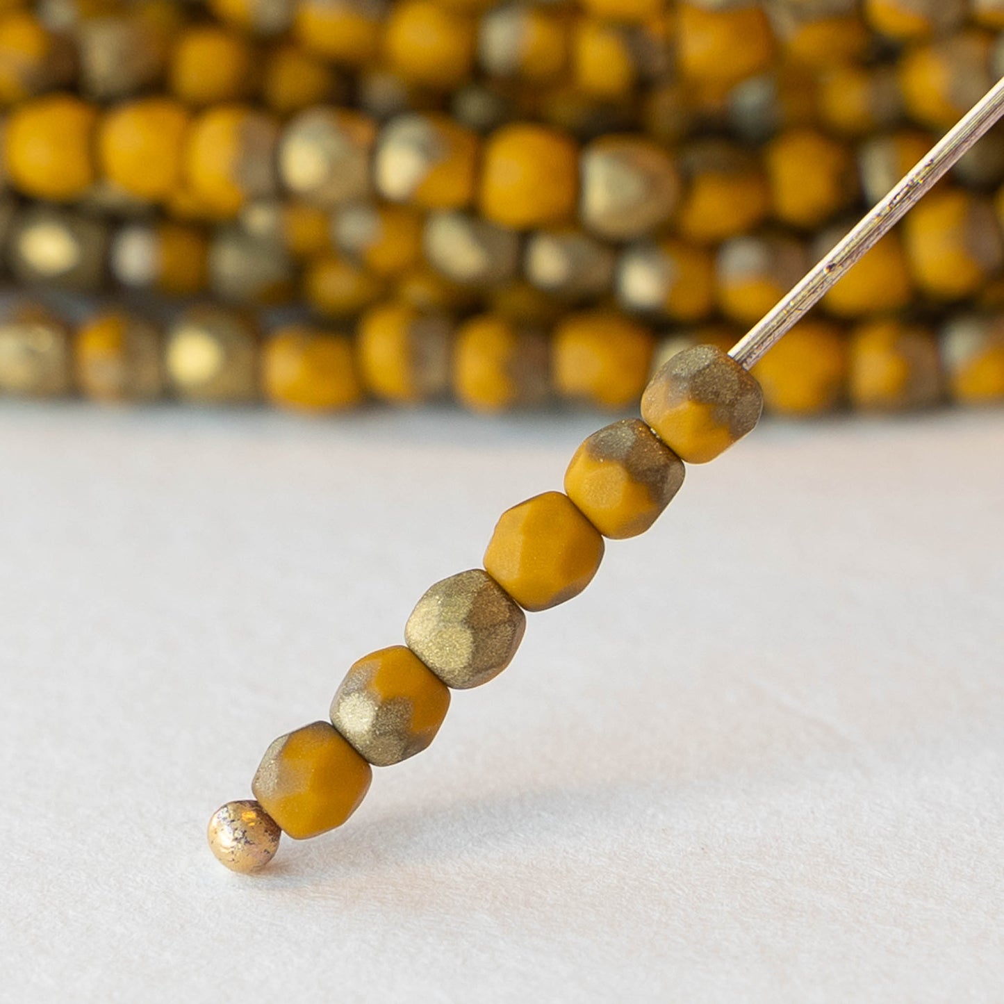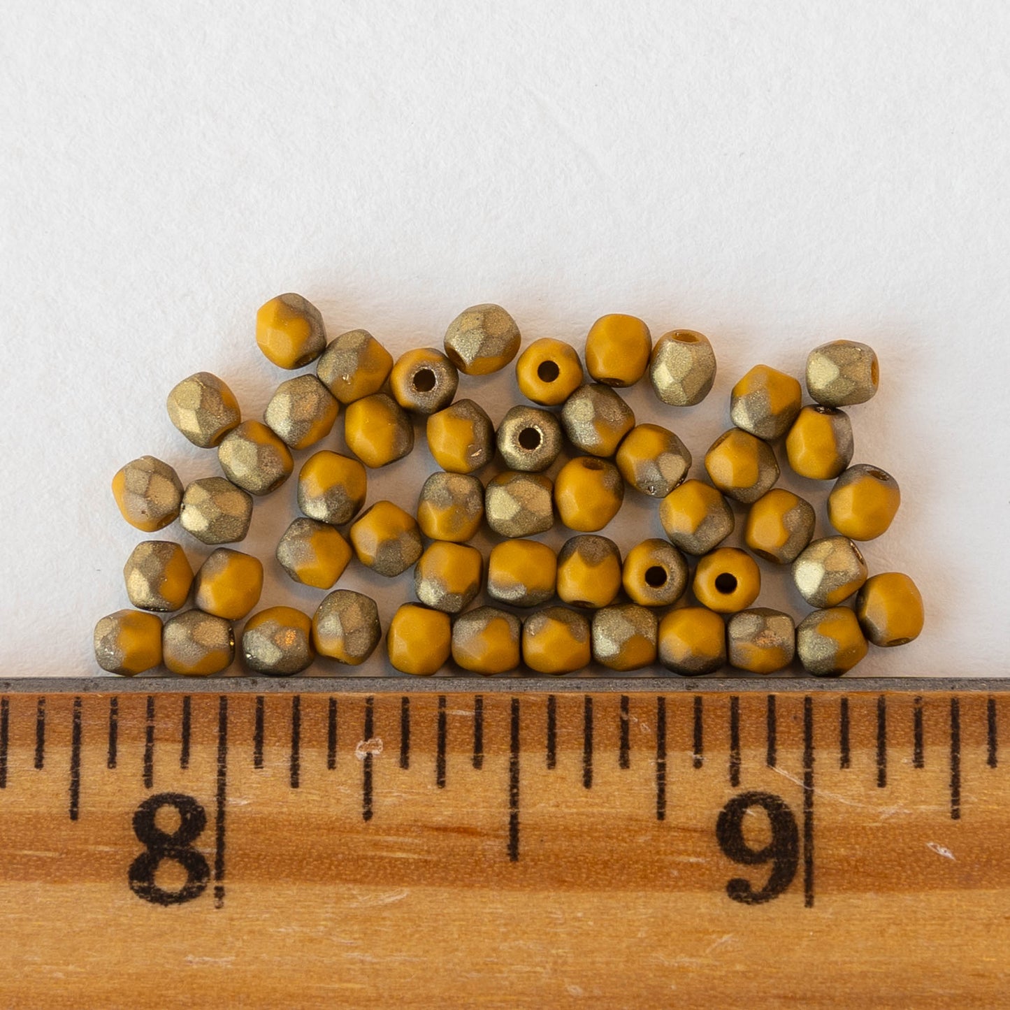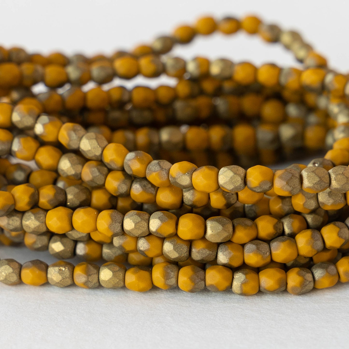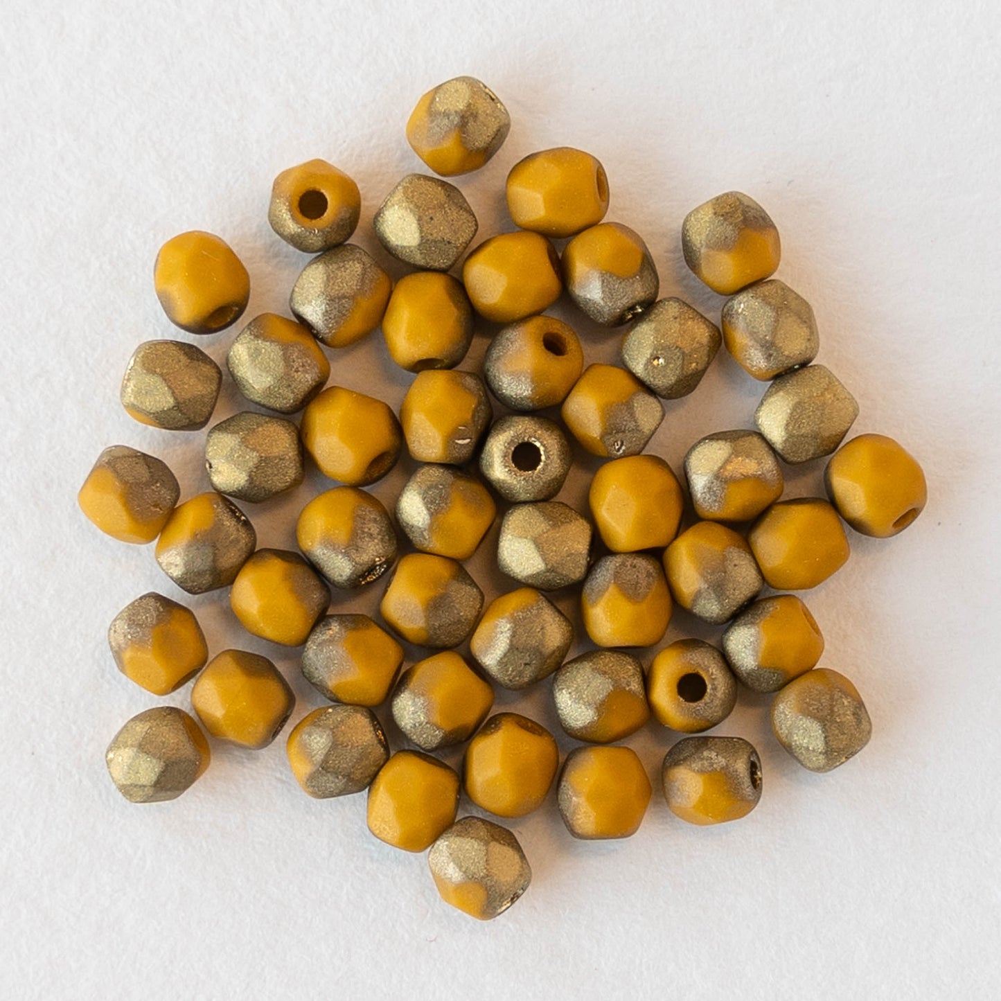 3mm Round Beads - Opaque Yellow Ochre with Gold - 50 Beads
