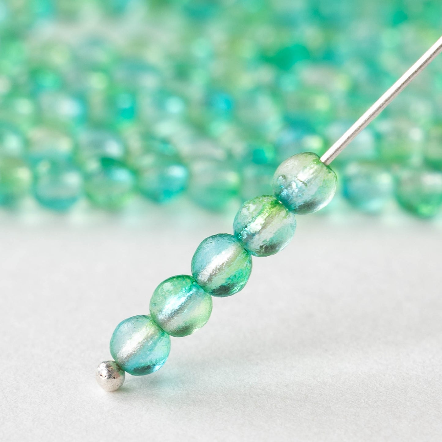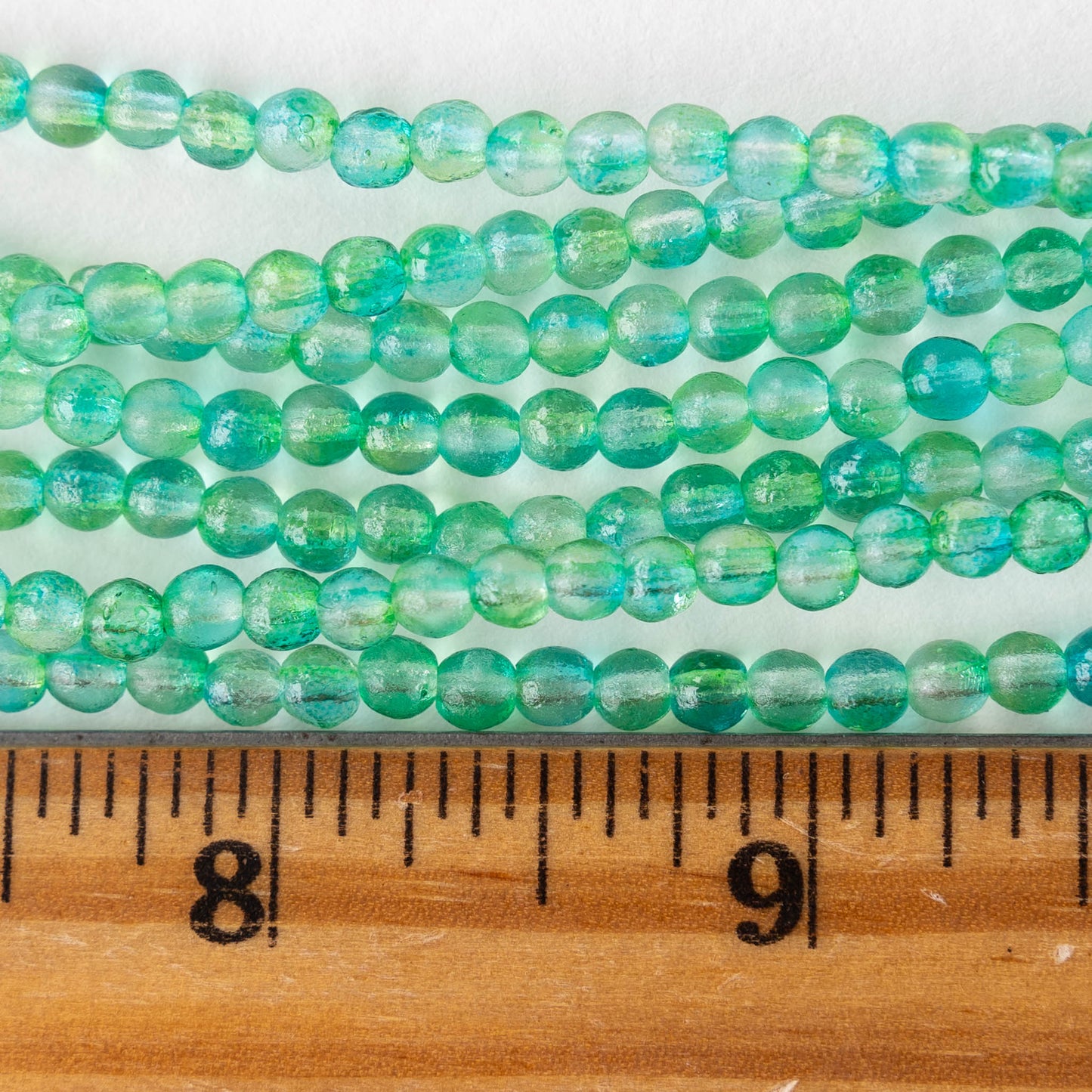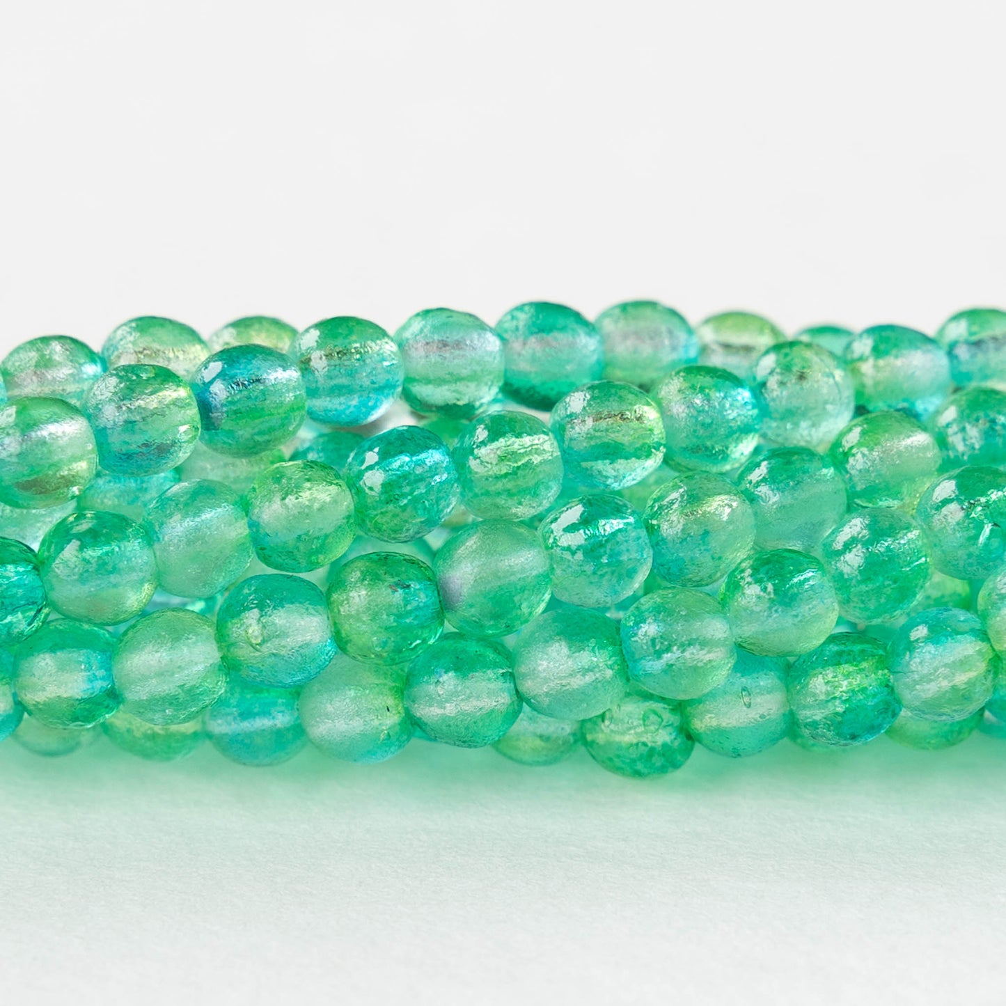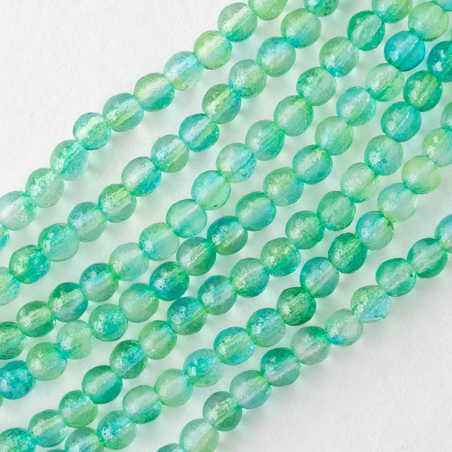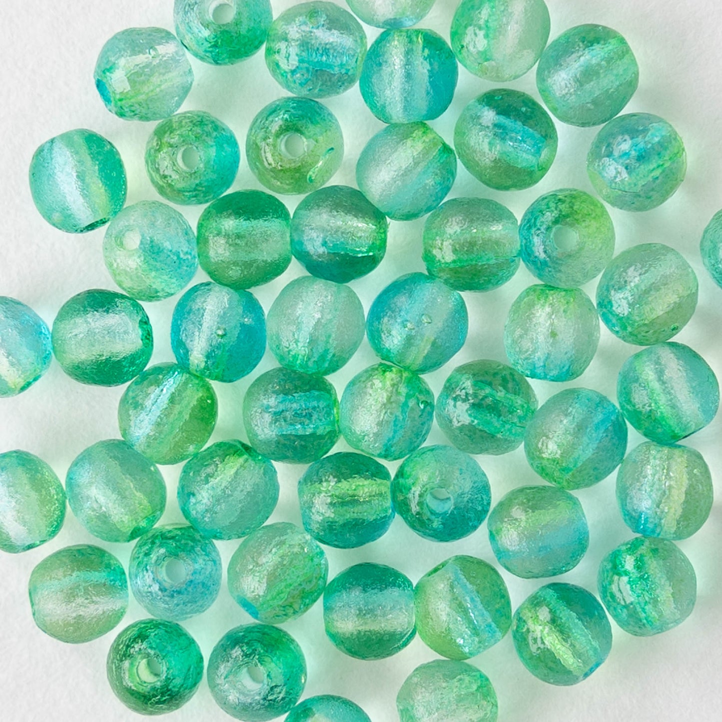 4mm Round Glass Beads - Etched Aqua Green Mix - 50 Beads