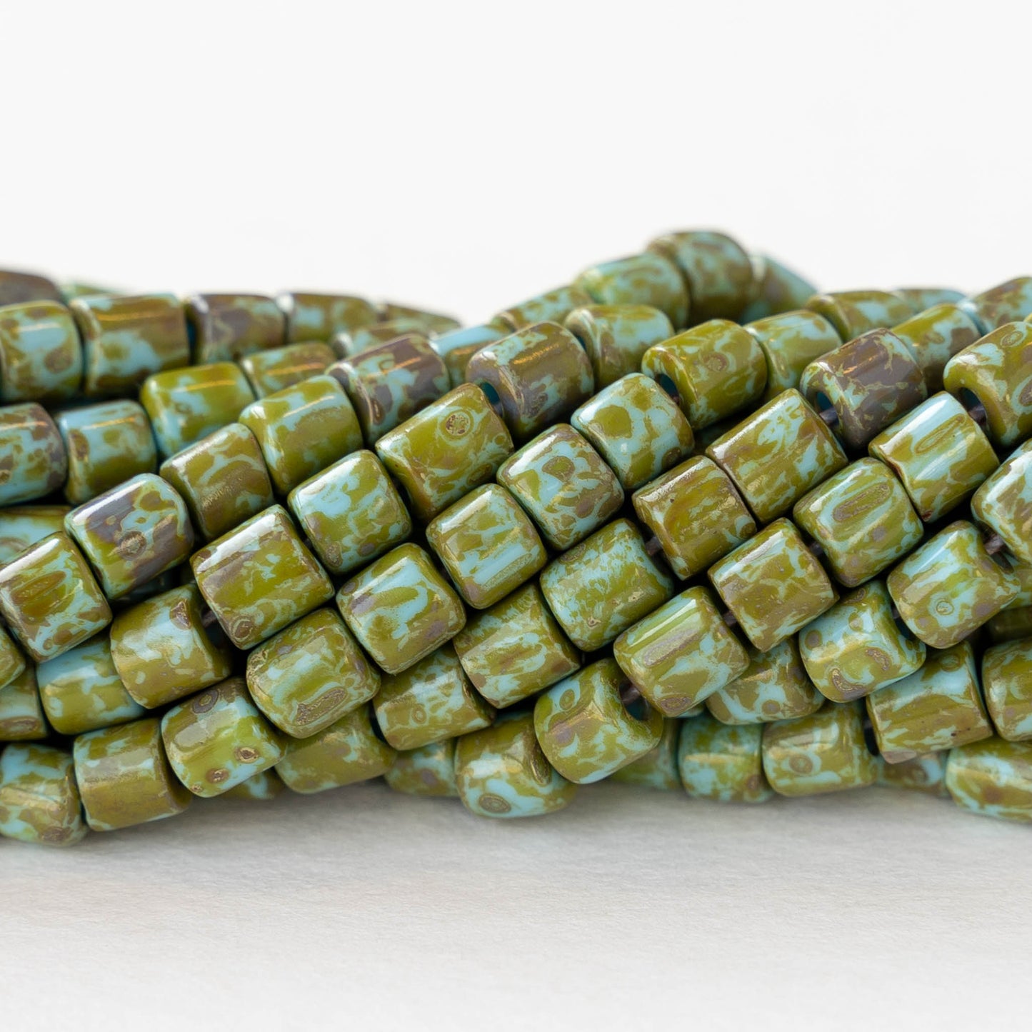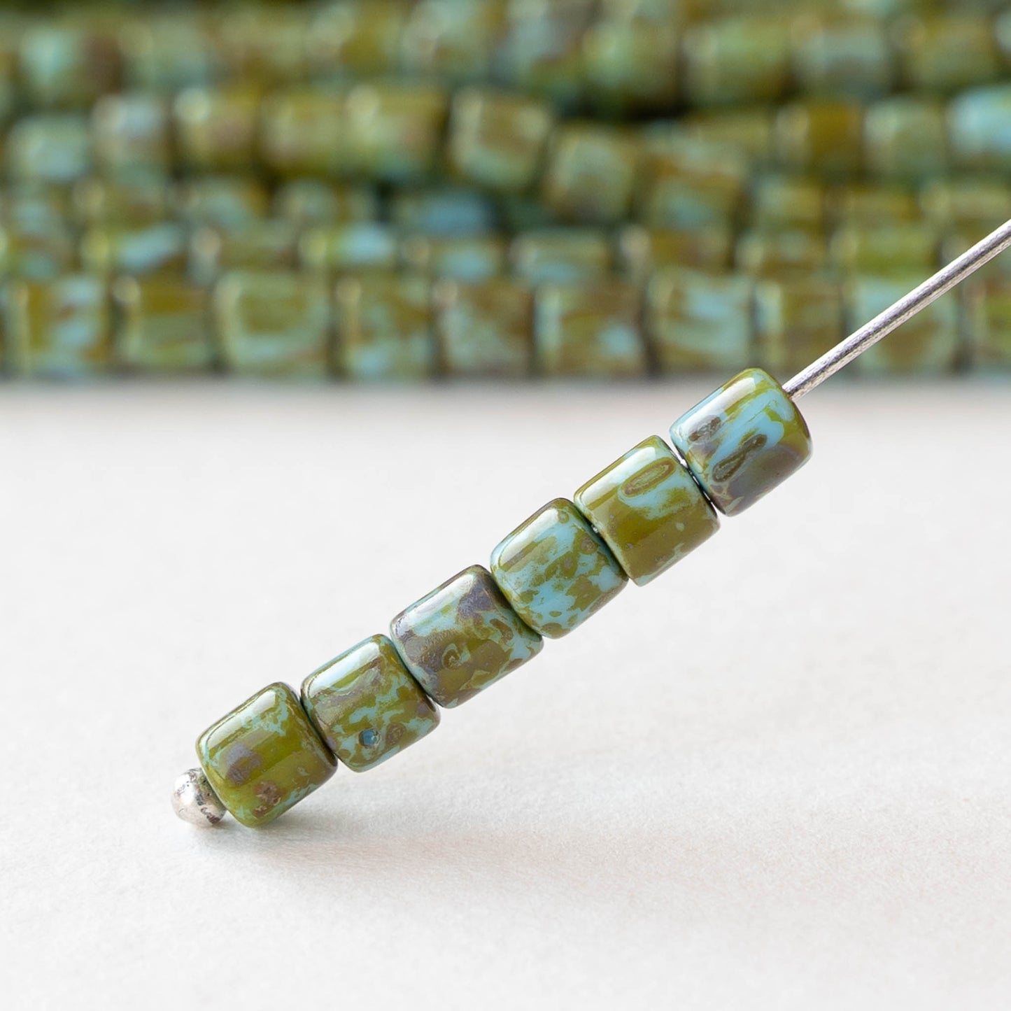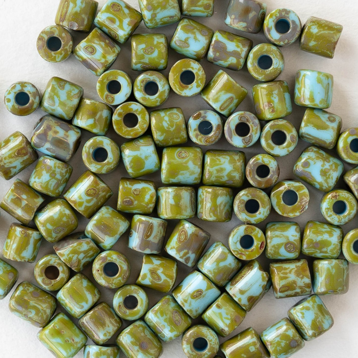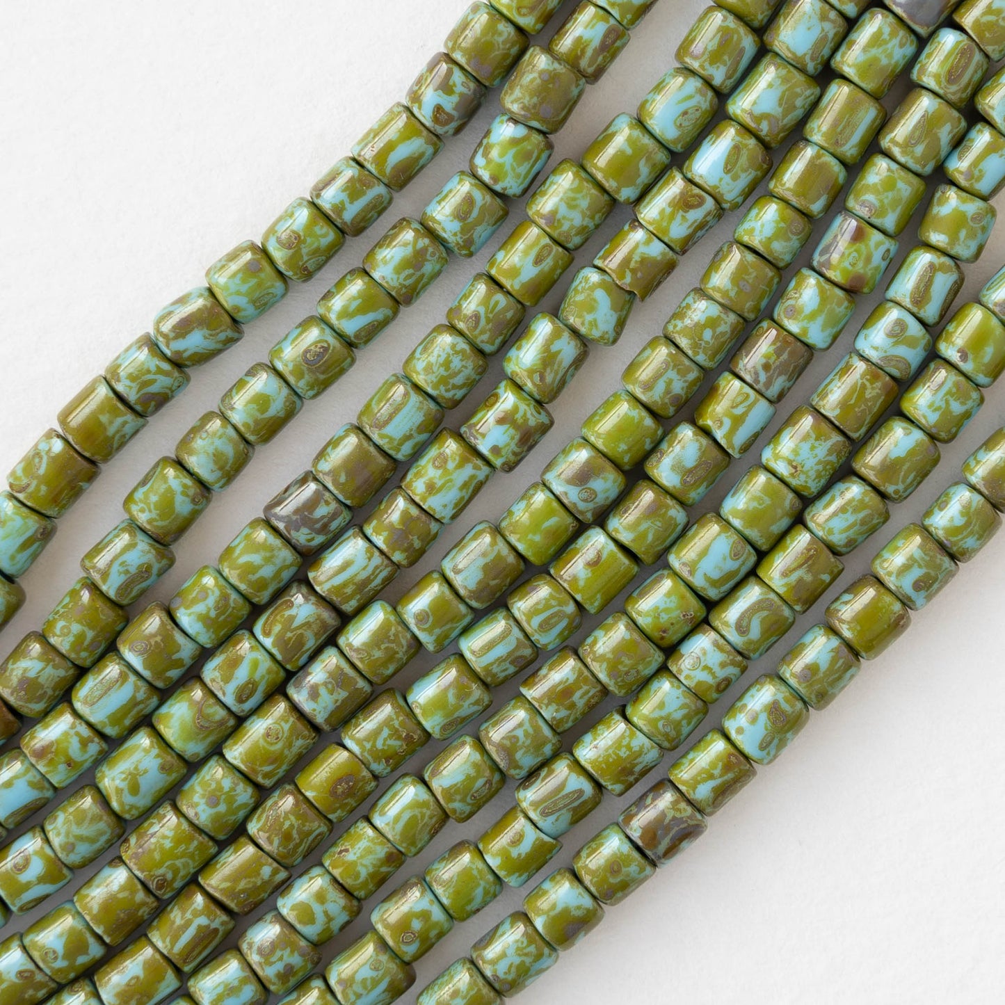 4mm Glass Mini Tubes - Opaque Turquoise Picasso - 20 inches
