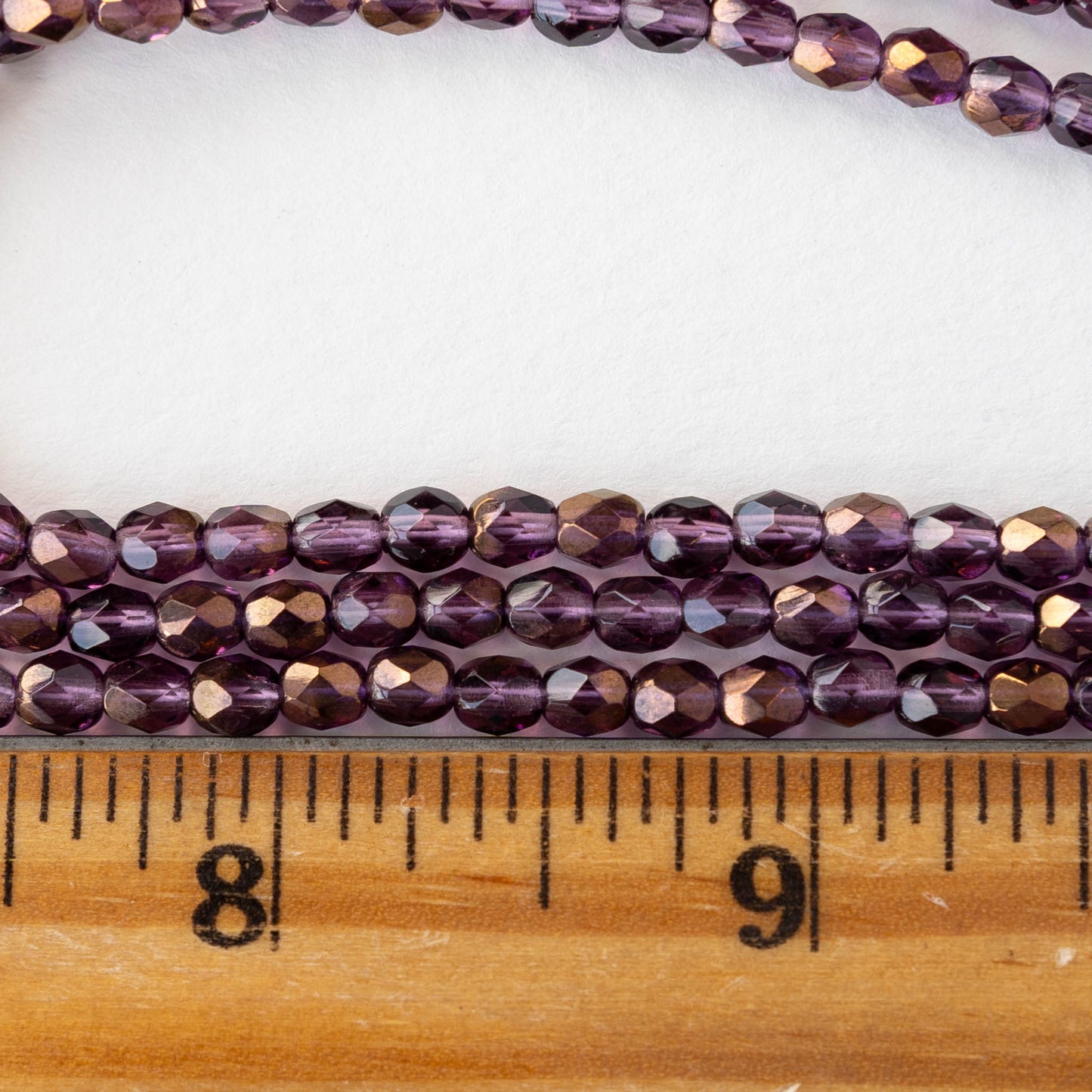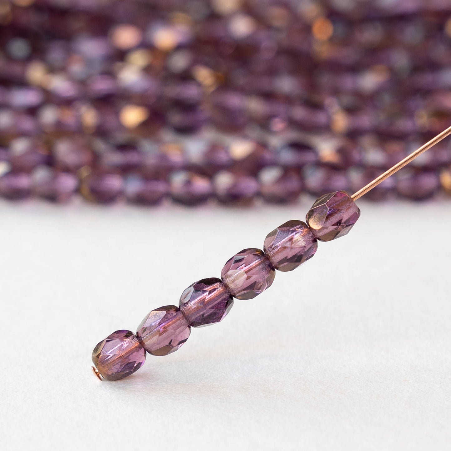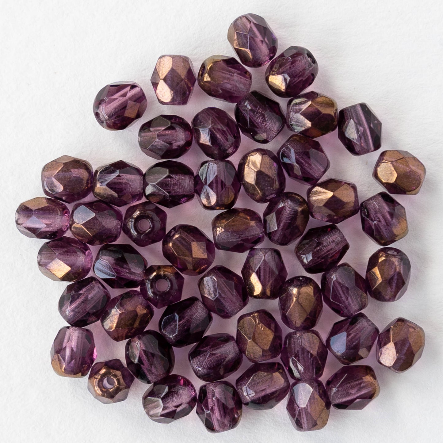 4mm Round Faceted Glass Beads - Amethyst Bronze Luster - 50 Beads