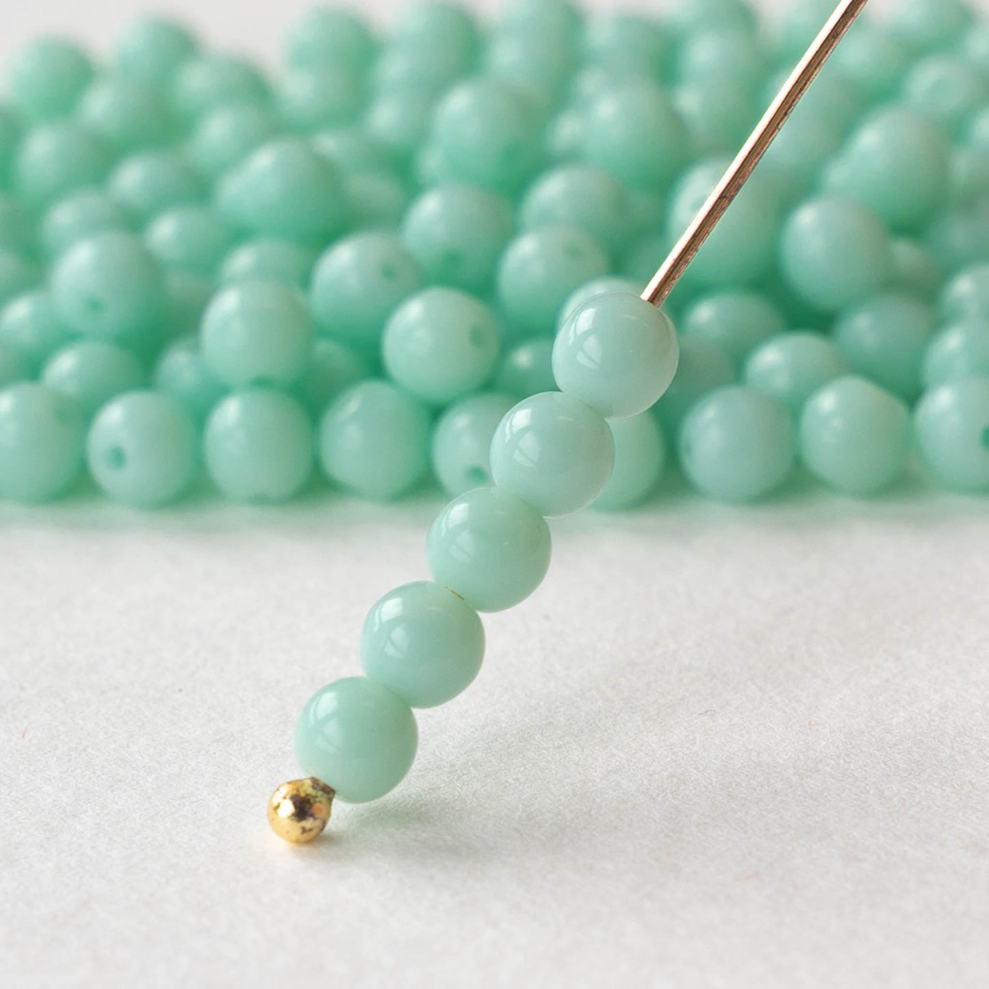 4mm Round Glass Beads - Opaque Mint Green- 120 Beads