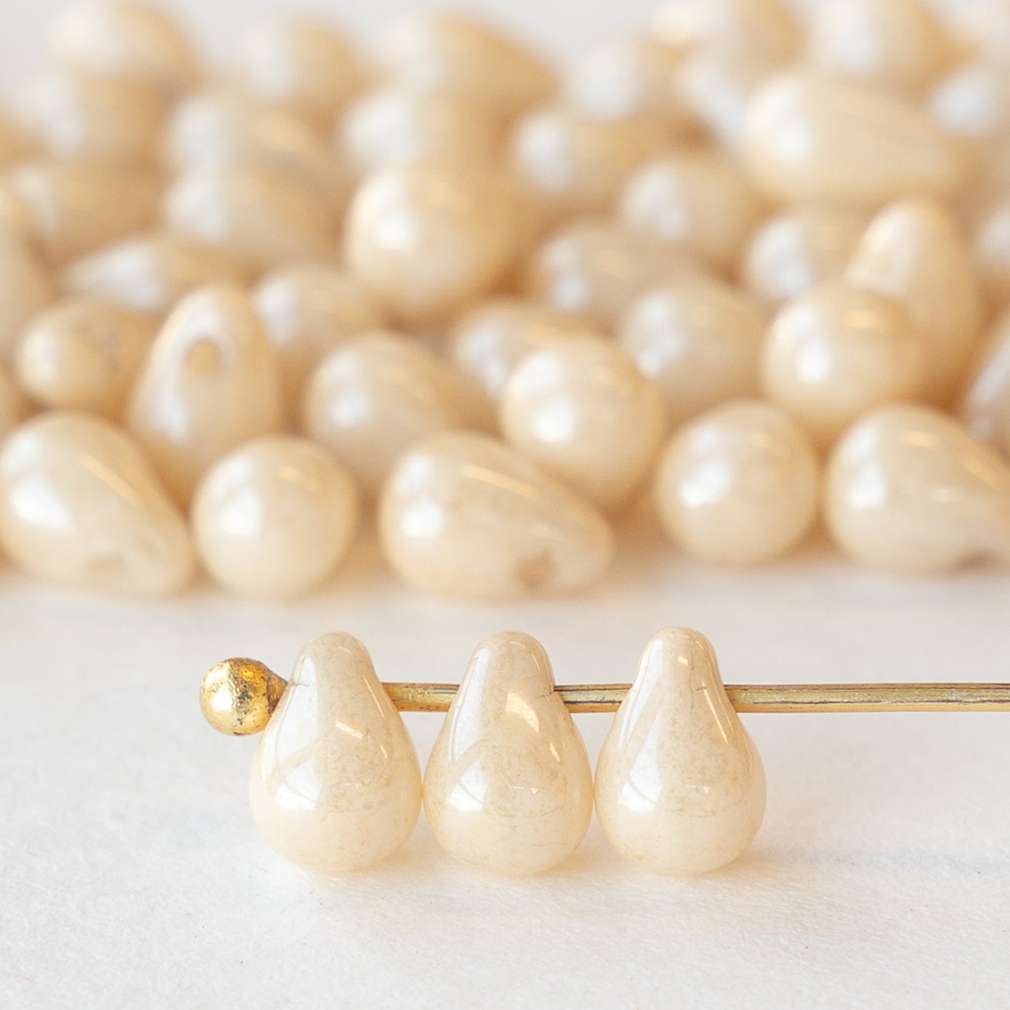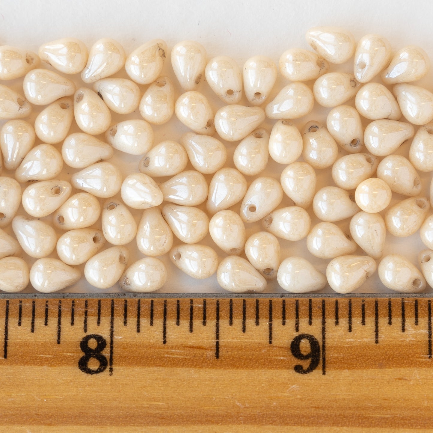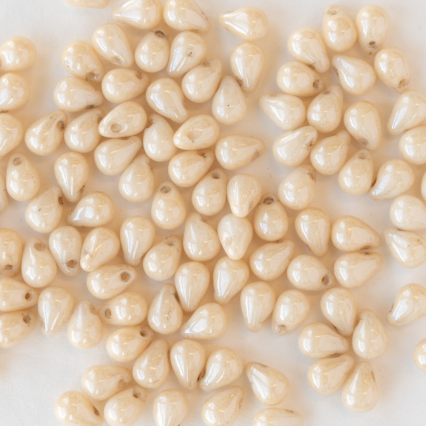 4x6mm Glass Teardrop Beads - Ivory Luster - 13 grams ~ 100 beads