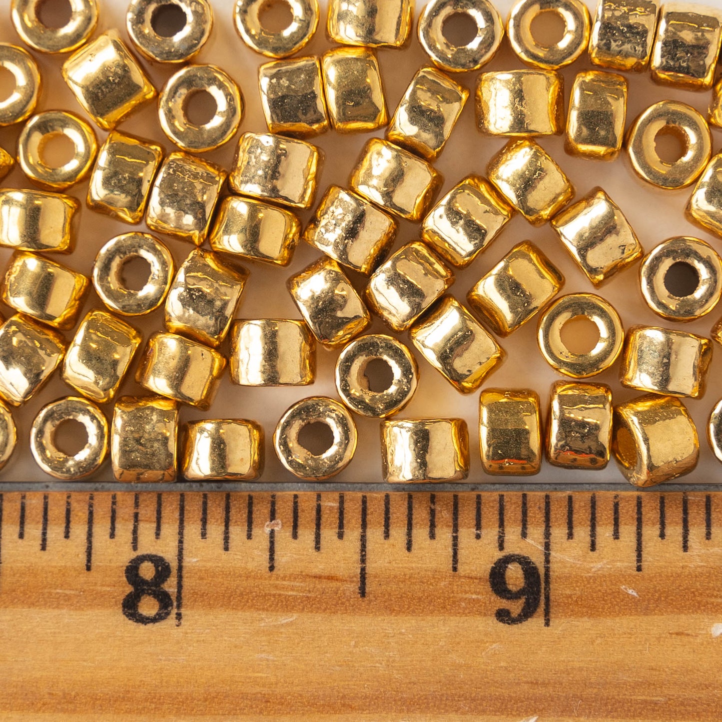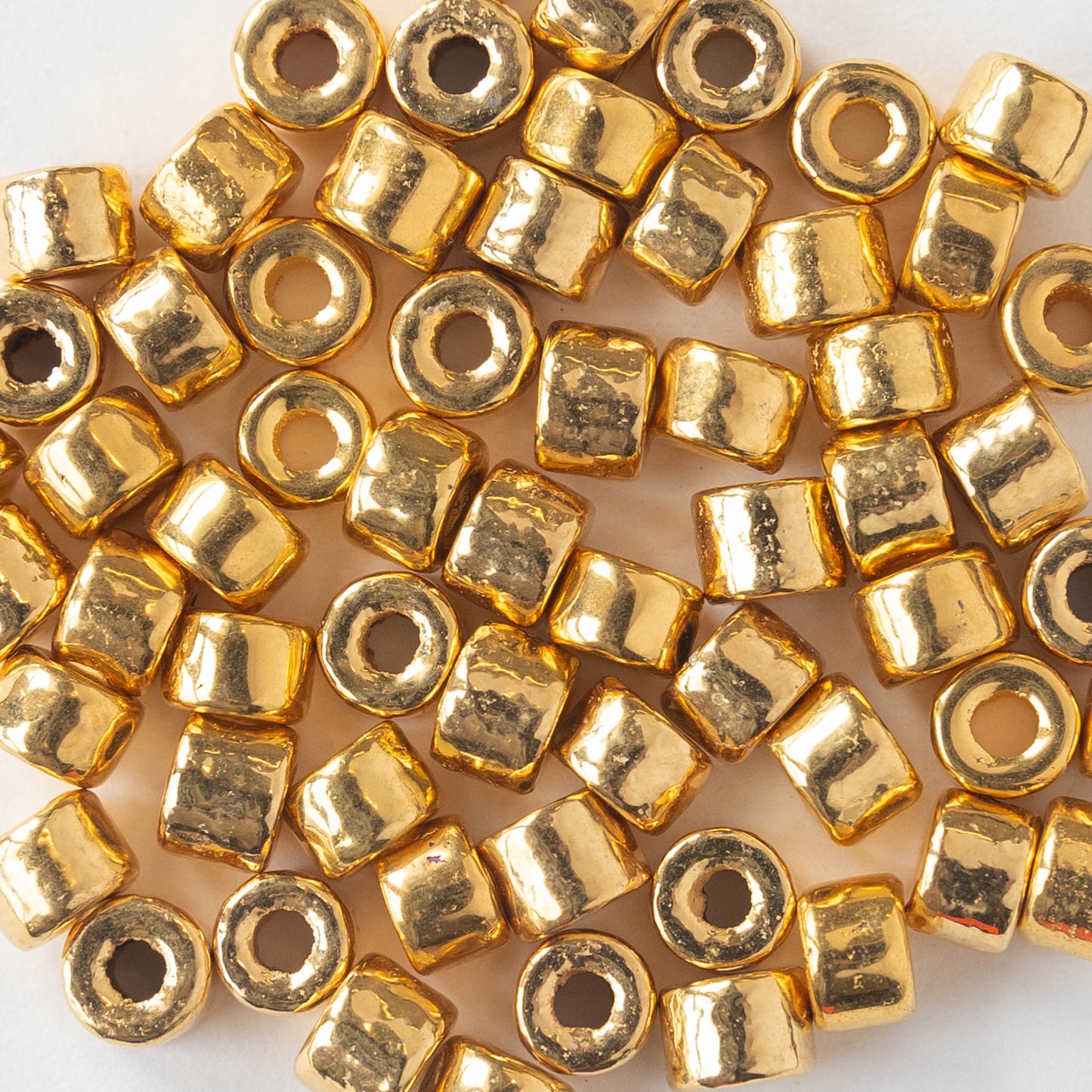 4x6mm Mini Tube - Metal Coated Ceramic Beads - Gold